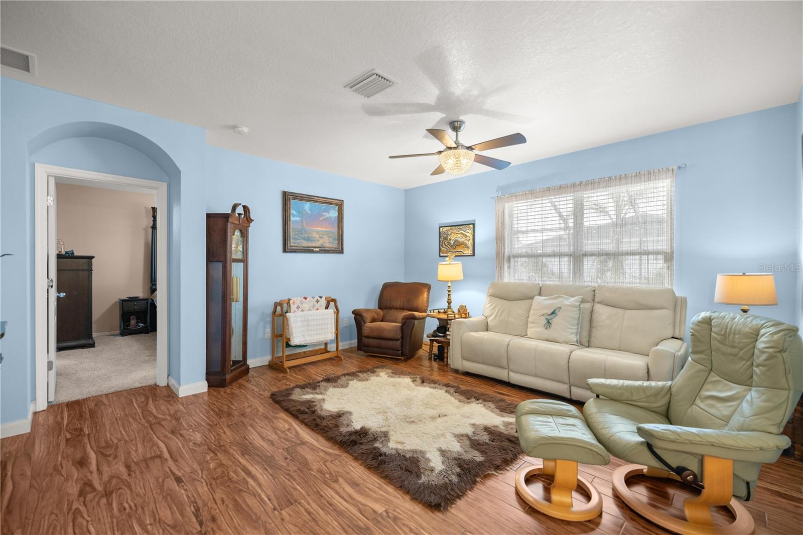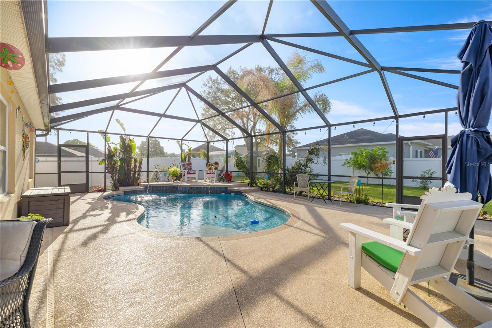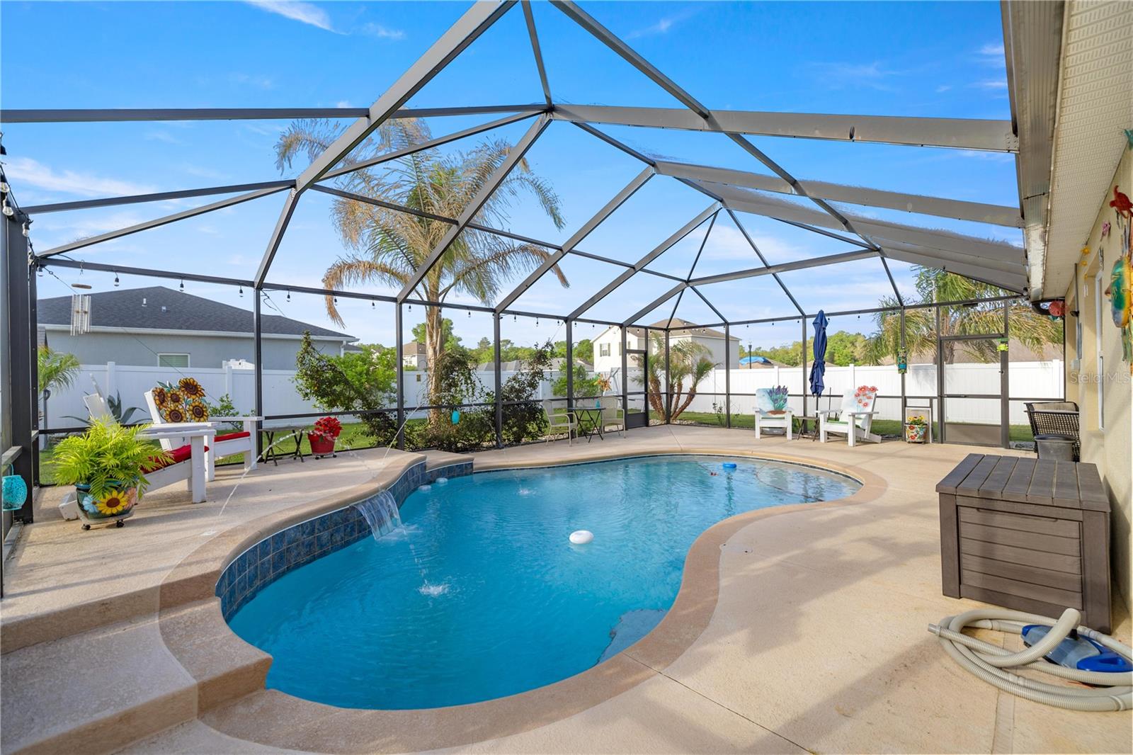 Under contract-accepting backup offers. $ NO AGE RESTRICTIONS $ Welcome to this beautifully maintained 4-bedroom, 2-bath home, situated on a large quarter-acre corner lot, perfect for family living and outdoor enjoyment. Built in 2016 by D.R. Horton, this Cali model boasts 1,817 sq. ft. of comfortable, move-in-ready space, featuring high ceilings and tile flooring throughout. The heart of this home is the spacious, open-concept kitchen with extra cabinetry, a walk-in pantry, and plenty of counter space—ideal for preparing meals or entertaining. The master suite offers a luxurious retreat, complete with his and her sinks and walk-in closets, ensuring ample storage and convenience. Step outside to your very own private oasis: a stunning 6-foot saltwater heated pool, fully enclosed with a high, screened-in birdcage that provides the perfect space for relaxing, grilling, and enjoying Florida’s sunshine. The yard is fully fenced with durable vinyl fencing, making it a safe haven for pets, and there's an 8x10 outdoor shed for extra storage needs. This home also includes a 7-zone sprinkler system for easy lawn maintenance, plus proximity to Silver Springs Boulevard, Silver Springs State Park, local shopping, dining, doctors, and schools. Daytona Beach is just an hour away for those weekend getaways. Don’t miss the chance to own this move-in-ready gem—schedule your showing today!