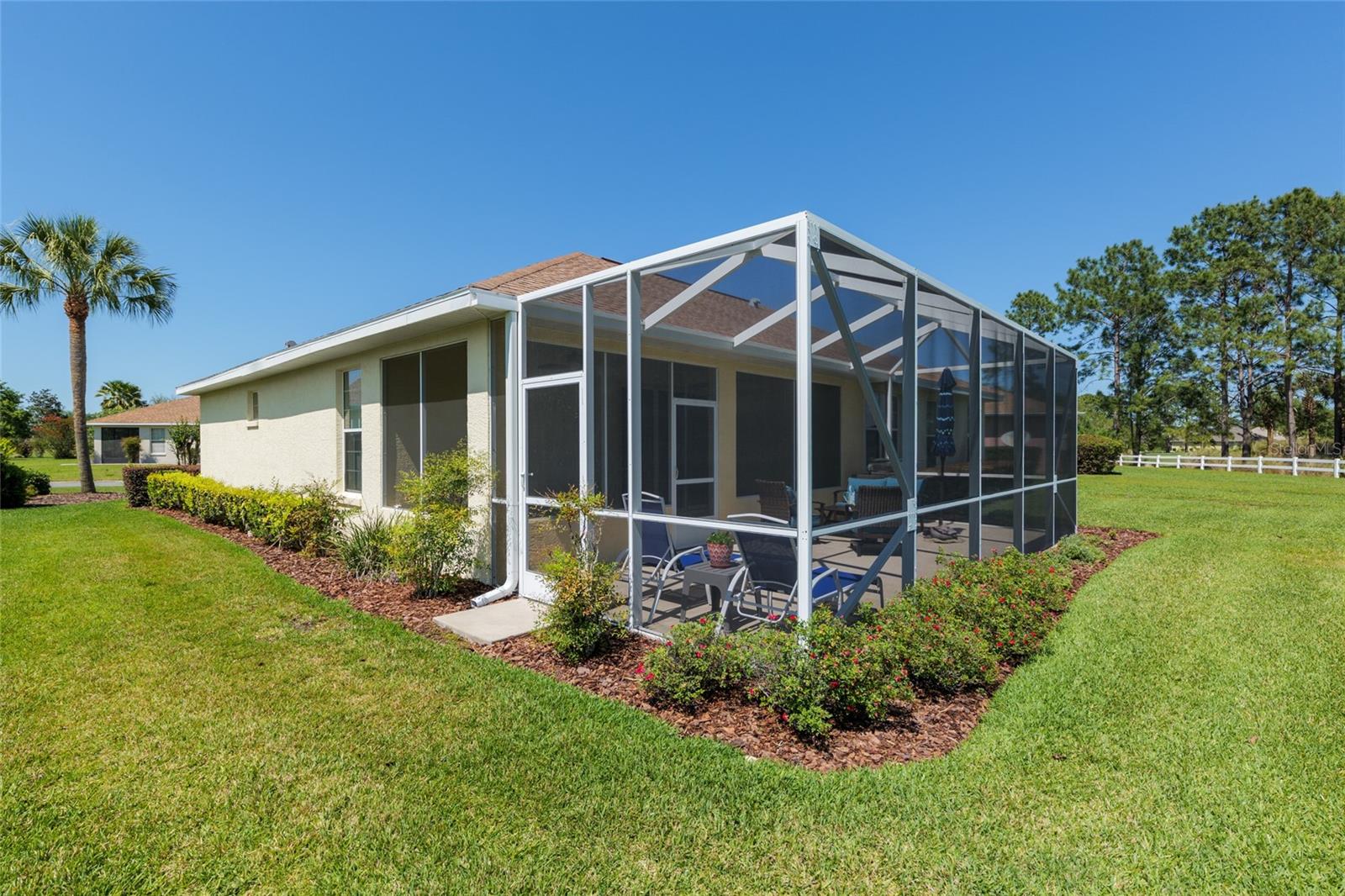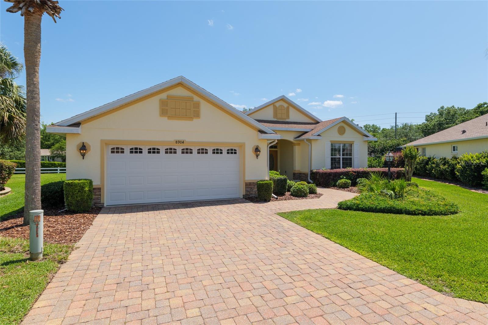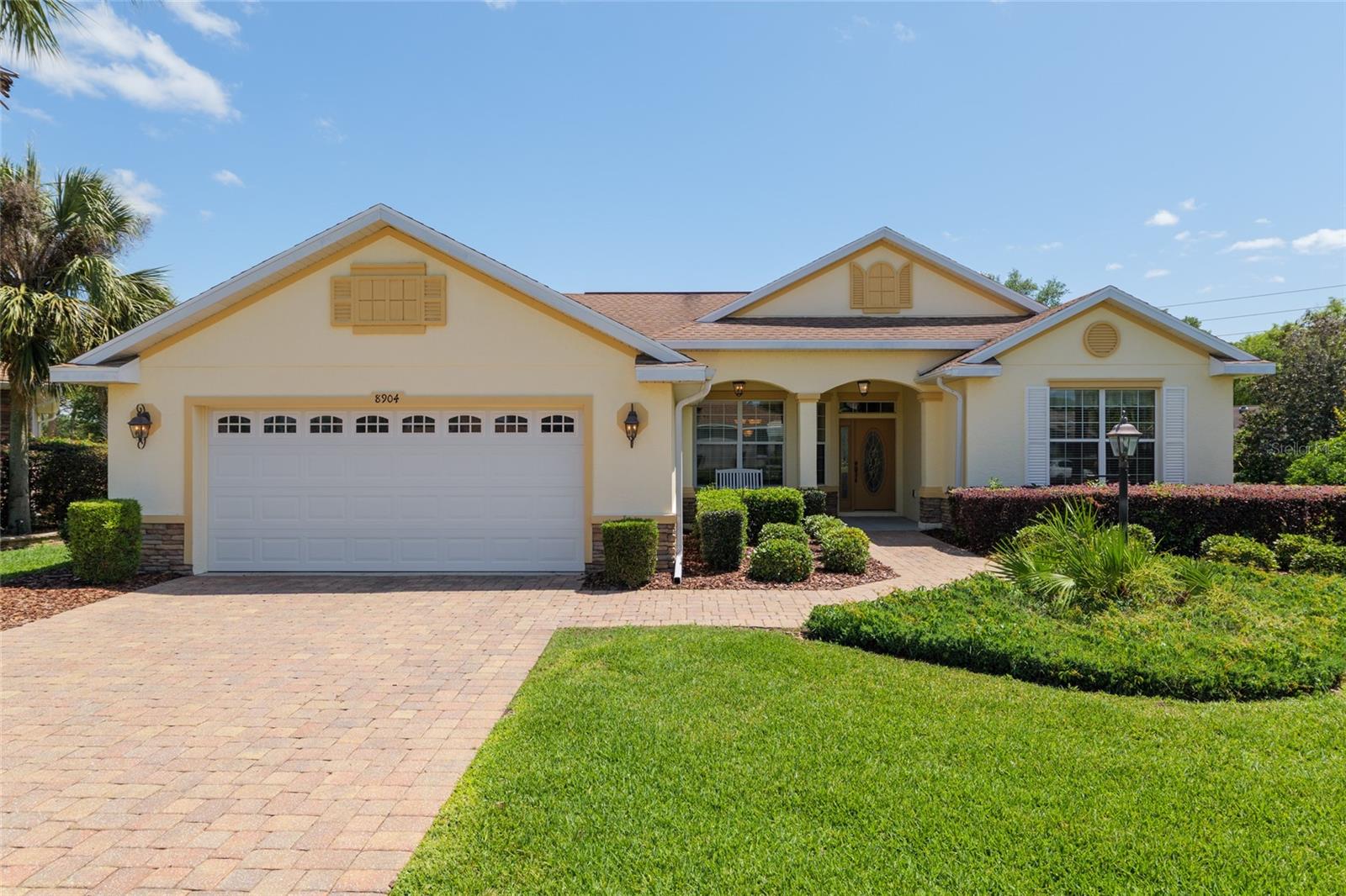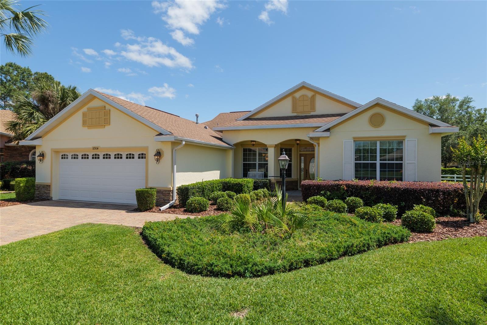 This beautiful, well taken care of Ayreshire model home located in the prestigious Candler Hills area of On Top of the World, has been the perfect winter retreat for the current owners and it is now looking for new owners to enjoy it. This is a spacious 3-bedroom, 2-bathroom, 2-car garage with a paved driveway and great curve appeal at the beginning of a cul-de-sac. Spacious kitchen featuring lots of cabinets and a large pantry. Tiled throughout the wet areas and resilient linoleum flooring in the living areas. This floor plan has one of the largest master bedrooms including large walk-in his/her closets. Other features include inside laundry room and a spacious lanai where you could enjoy a barbecue or gatherings with family and friends. New EXTERIOR TANKLESS WATER HEATER installed in 11/2023. Located in Ocala’s premier, gated, active 55+ community, loaded with amenities, including golf cart access to two shopping centers. Golfcart and furniture available separately.