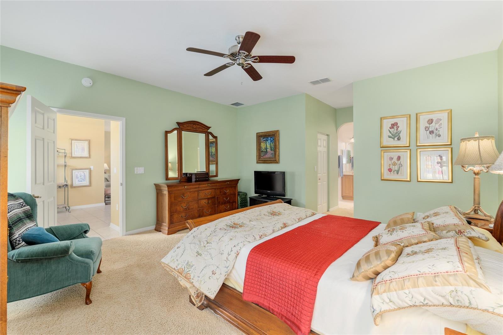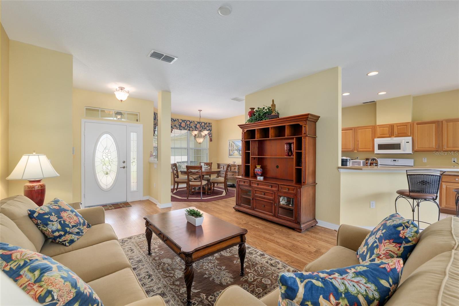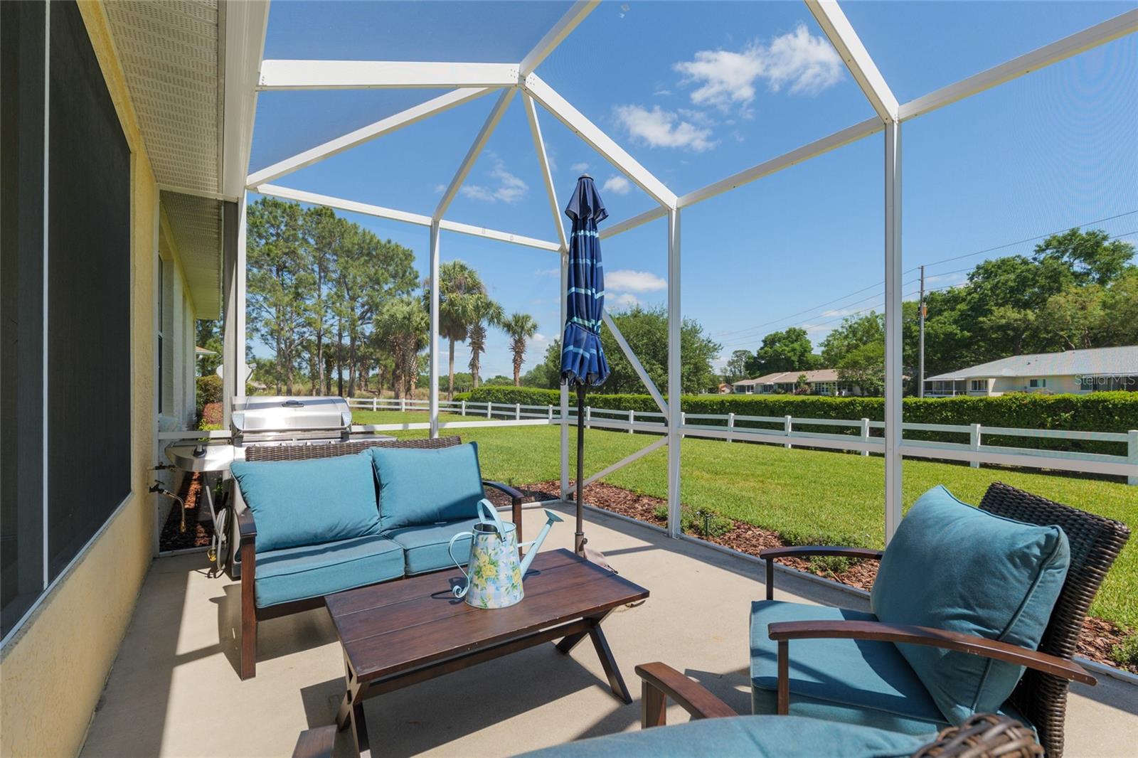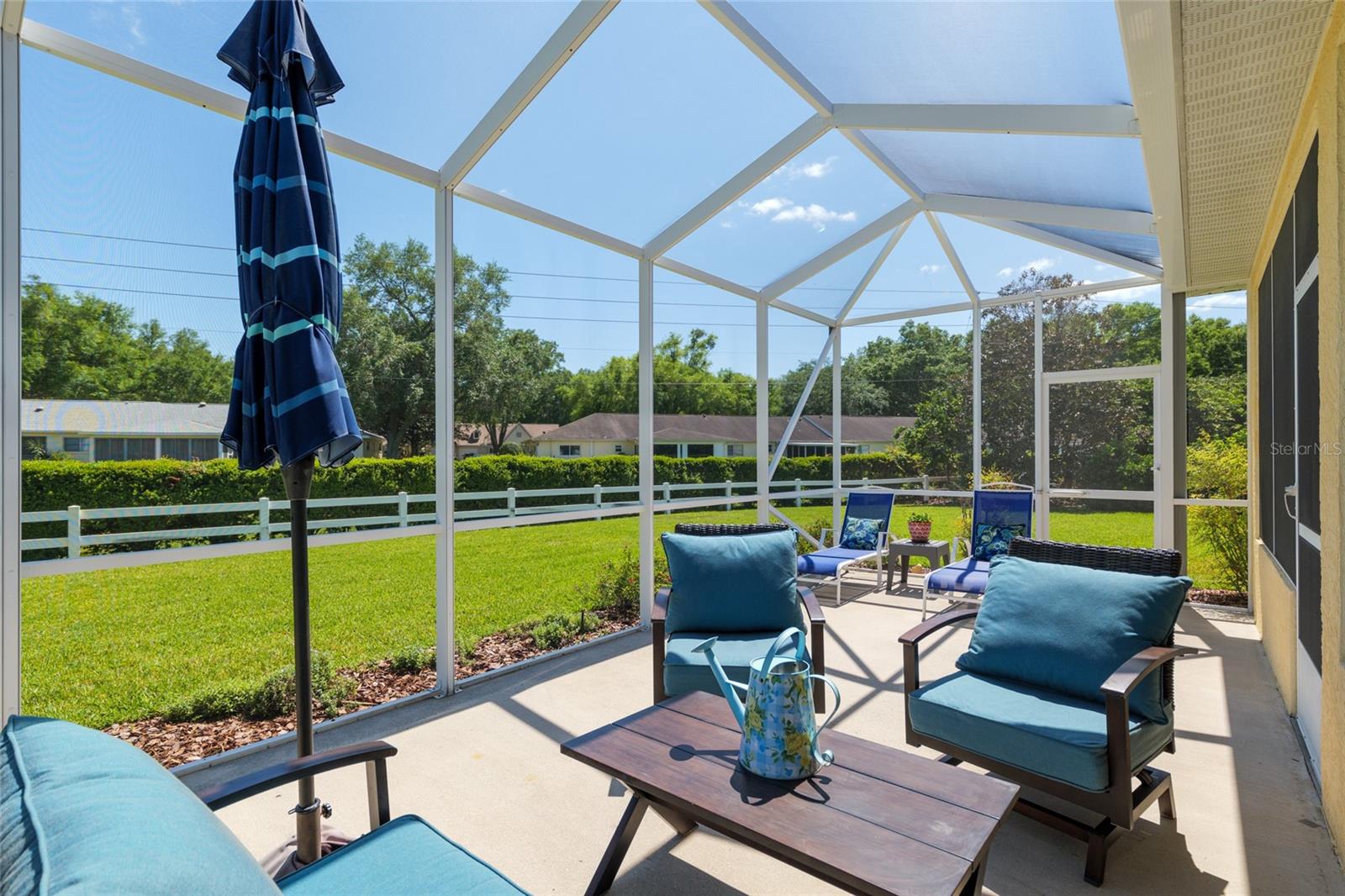 This beautiful, well taken care of Ayreshire model home located in the prestigious Candler Hills area of On Top of the World, has been the perfect winter retreat for the current owners and it is now looking for new owners to enjoy it. This is a spacious 3-bedroom, 2-bathroom, 2-car garage with a paved driveway and great curve appeal at the beginning of a cul-de-sac. Spacious kitchen featuring lots of cabinets and a large pantry. Tiled throughout the wet areas and resilient linoleum flooring in the living areas. This floor plan has one of the largest master bedrooms including large walk-in his/her closets. Other features include inside laundry room and a spacious lanai where you could enjoy a barbecue or gatherings with family and friends. New EXTERIOR TANKLESS WATER HEATER installed in 11/2023. Located in Ocala’s premier, gated, active 55+ community, loaded with amenities, including golf cart access to two shopping centers. Golfcart and furniture available separately.