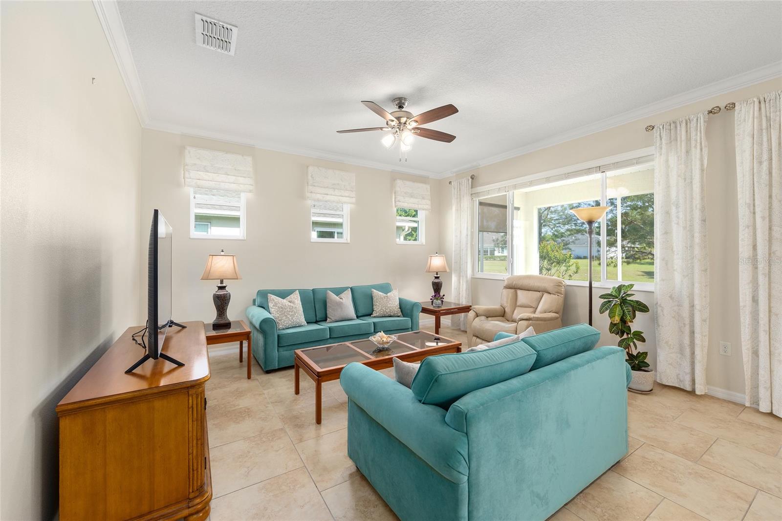 Custom Alban Home with Golf Cart Parking & Hobby Space! This beautifully maintained single-owner Custom Alban located in On Top of the World's Windsor West community is a must see. Nestled on a dry retention lot, the home features 3 bedrooms and 2 bathrooms, with tile flooring in the main living areas and plush carpet in the bedrooms for added comfort. The spacious kitchen boasts granite countertops, stainless steel appliances, and a gas cooktop—ideal for those who love to cook. The spacious 2-car garage includes additional golf cart parking and a dedicated hobby space, perfect for projects or extra storage as well as a garage screen. The primary bedroom provides the ideal space to recover from a busy day and includes a custom closet system for organization and storage. The driveway has been extended on both sides for parking convenience, and hardscaping around the front flower beds enhances the home's curb appeal. Enjoy the outdoors from the comfort of the screened lanai and rest easy year-round with a whole house generator already installed. Conveniently located to the Arbors, Veteran's Park and the Recreation Center, this property is ready to welcome you home. Located in Ocala's Premier, active adult community, loaded with amenities, including golf cart access to two shopping centers.