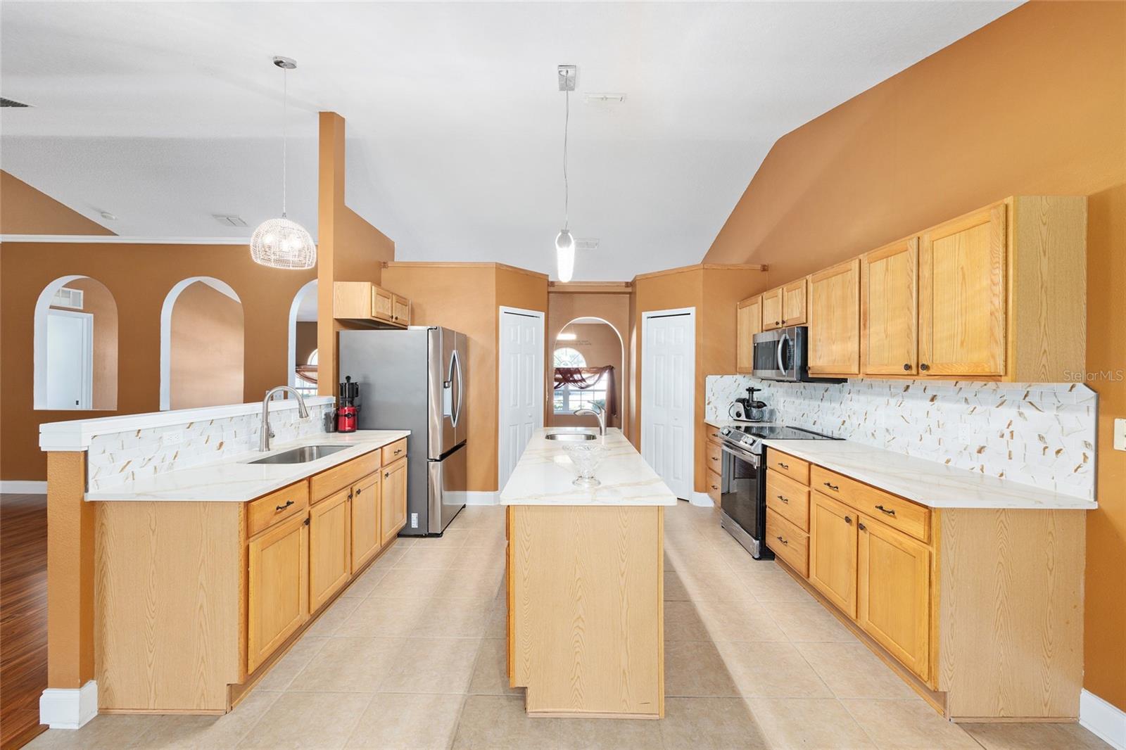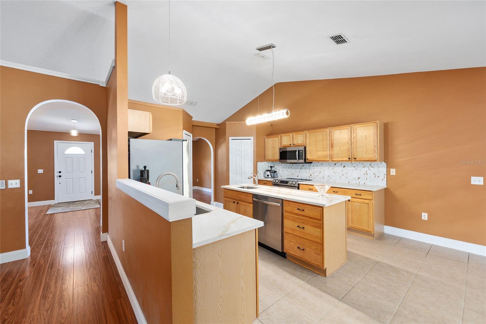 WELCOME TO MAGNOLIA POINT, A HIGHLY DESIRABLE GATED COMMUNITY IN SOUTHEAST OCALA, FLORIDA. STEP INTO THIS 2,256 SQ FT , 4 BEDROOM 2 BATH HOME SITUATED ON A GENEROUS .35 ACRE LANDSCAPED LOT AND ENJOY THE ELEGANCE OF FORMAL LIVING AND DINING ROOMS, ALONG WITH A SPACIOUS FAMILY ROOM FEATURING VAULTED CEILINGS' AND NEW LUXURY EASY CARE LAMINATE FLOORING. THE LARGE MASTER SUITE FEATURES HIS AND HER CLOSETS, ALONG WITH AN EXQUISITELY RENOVATED MASTER BATH SHOWCASING HIGH-END FIXTURES. STATE OF THE ART FREESTANDING TUB, DOUBLE SINKS, SEPARATE GLASS-ENCLOSED SHOWER AND PRIVATE WATER CLOSET IS YOUR OWN PRIVATE SPA. IN THE KITCHEN YOU WILL FIND A QUAINT EAT-IN AREA, UPDATED QUARTZ COUNTERS, CONVENIENT ISLAND, NEW STAINLESS APPLIANCES, CERAMIC TILE BACKSPLASH AND GORGEOUS MODERN LIGHTING, THIS IS A TURN-KEY KITCHEN JUST WAITING FOR A CHEF! ADDITIONALLY, THIS MOVE-IN READY HOME INCLUDES AN INDOOR LAUNDRY ROOM, LARGE SCREEENED IN LANAI AND A PRIVATE BACKYARD . NEW ROOF IN 2022 INSURES PEACE OF MIND AND INSURABILITY!! READY AND WAITING FOR NEW OWNERS!! SELLER WILL PAY UP TO $5000.00 IN CONCESSIONS FOR BUYER!!
