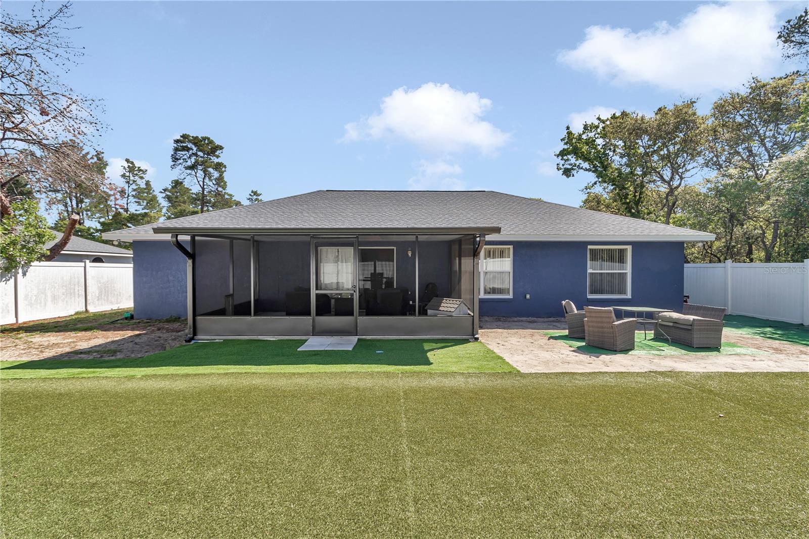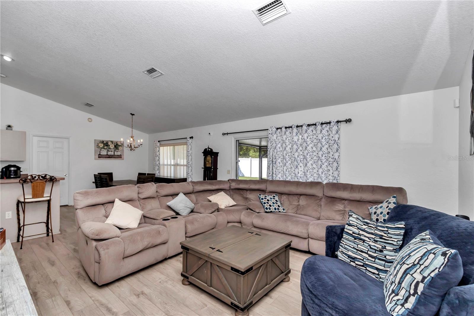 This concrete block house located in the sought after community of Marion Oaks completely stands out from the rest. The features are endless--Cathedral ceilings, split floor plan, huge master suite with walk-in closet & twin vanities, formal dining room,stylish transom windows, kitchen bar, huge pantry room, breakfast nook, large living area, 4 bedrooms and a lanai completely fenced in and backs up to the Greenbelt so no neighbors behind you. Perfect for a family and also a solid investment that will gain equity for you year after year. NO HOA!!! NO FLOOD ZONE!!! NO other home on the market has this many upgrades! ------50 K in recent UPRADES INCLUDING: ROOF : 2024 ------ 12X20 SCREENED LANAI WITH CONCRETE SLAB: 2023------EXTERIOR PAINT:2023-------ALL APPLIANCES: 2021------LUXURY VINYL FLOORING: 2021------WATER HEATER:2021 ----AIR CONDITIONER/ HEAT PUMP: 2021----ROLL UP GARAGE DOOR SCREEN: 2021----SEPTIC CLEAN OUT :2021--------VINYL PRIVACY FENCE :2019-----Reasonably priced to sell and ready to close ASAP! Minutes from I-75- Just over an hour to Orlando Airport/Disney - 20 minutes to World Equestrian Center. VETERANS WELCOME! FHA WELCOME!