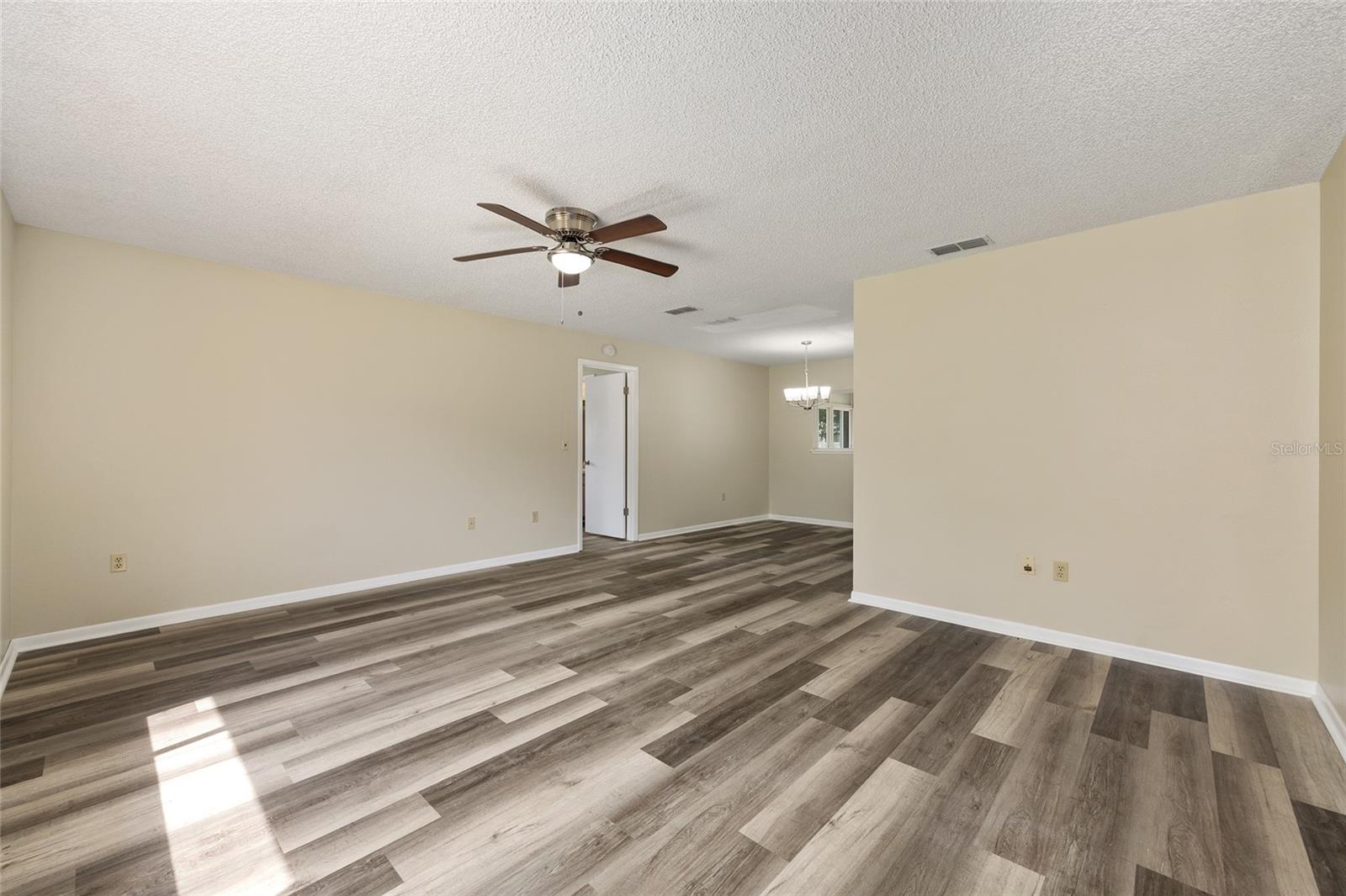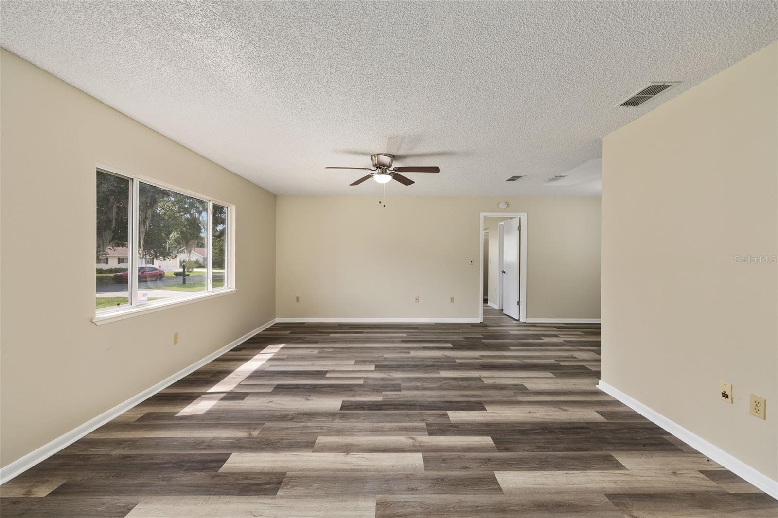 POTENTIAL FOR EQUITY GROWTH! Split floor plan Windmill model home READY FOR YOUR CUSTOMIZATIONS with 3 bedrooms, 2 bathrooms and 2 car garage is located in the desirable 24-hour gated community of Palm Cay. New landscape, new paint and flooring. New roof in 2023. Spacious living areas include dining and living room. The kitchen overlooks the large family room and is the perfect opportunity to add your personal touch and style. Sliding glass doors take you to the enclosed patio and a PRIVATE, SHADY BACKYARD. A storage room with shelves is connected to the home. The home features a separate laundry room with cabinets and lots of windows for natural light. Clubhouse, community pool, fitness center and activities. Located in Southwest Ocala close to shopping, restaurants, the World Equestrian Center and medical and hospital facilities. Golf carts are permitted and RV/boat storage may be available for a monthly fee. Minutes from I-75, one hour from Gainesville, and one and half hours from Orlando.