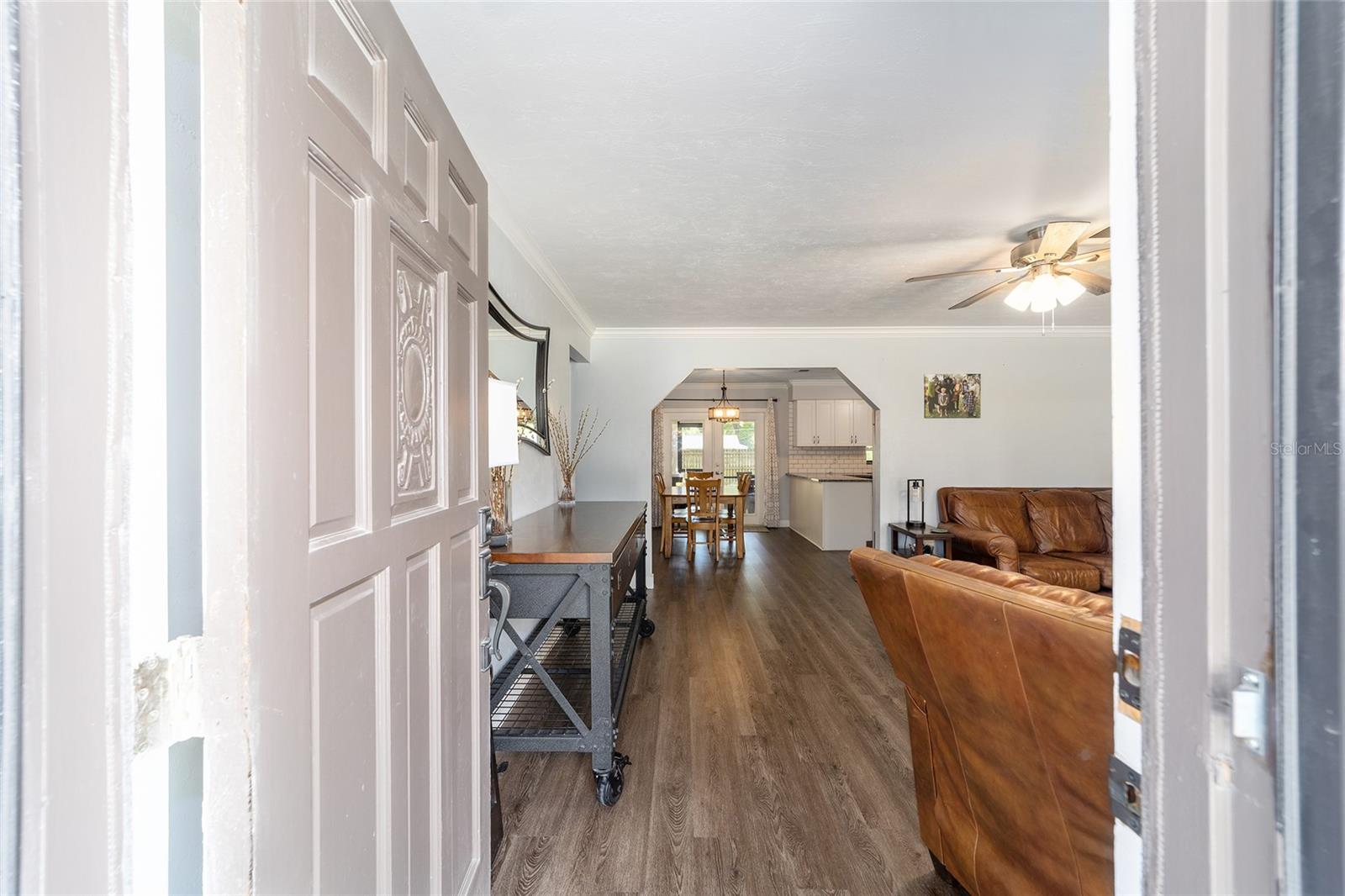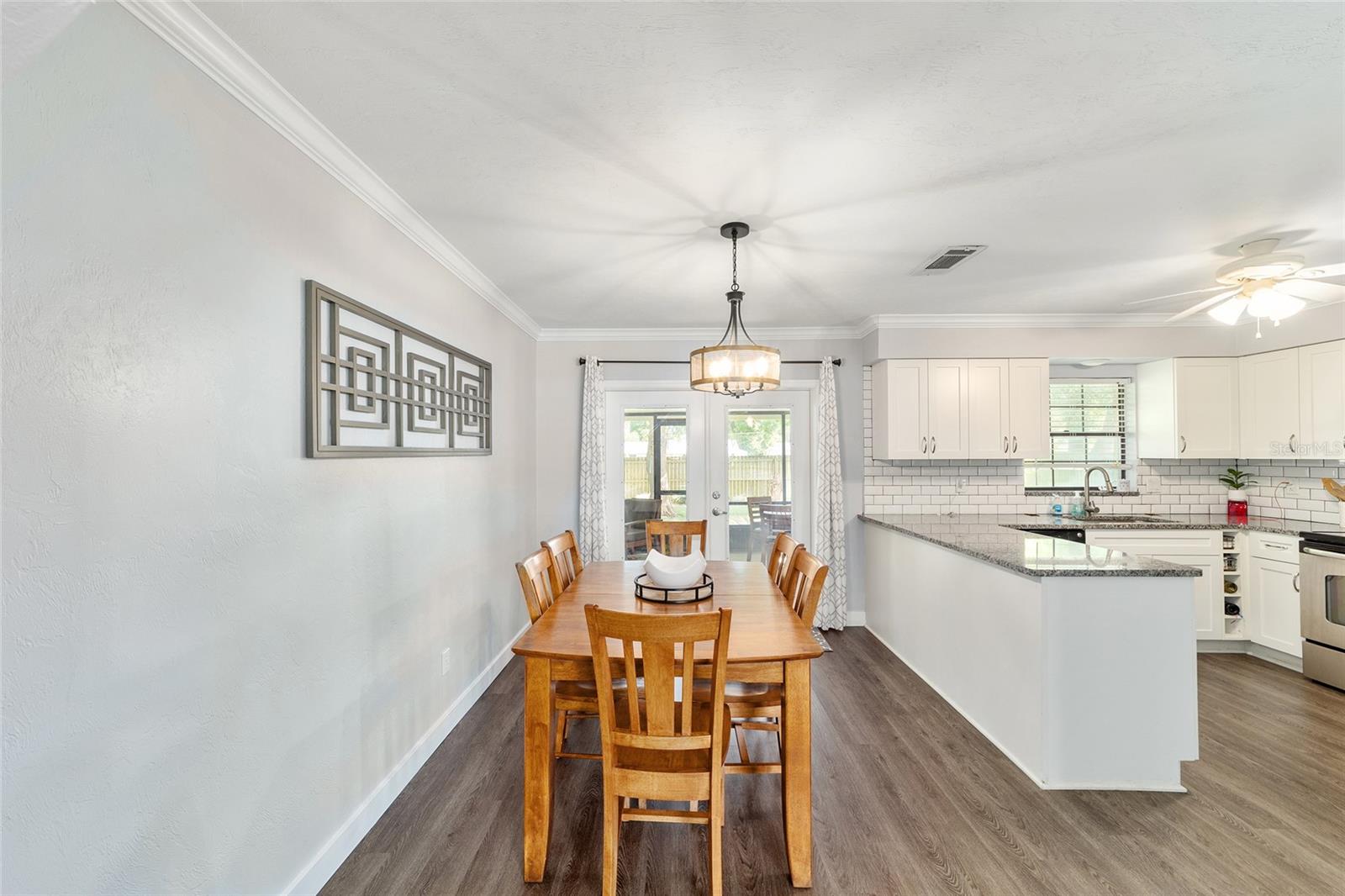 IMMACULATE AND WELL CARED FOR SOUTHEAST OCALA HOME! This updated 3 bedroom, 2 bathroom move in ready home, with a newer roof (2019), a fully fenced yard and charming patio is ready for a new owner! Conveniently located minutes from shopping, recreational areas, and more, this home is loaded with updates. Fullyremodeled kitchen and updated appliances(2022) with soft close Craftsman style cabinet doors and drawers granite counter tops, and luxury vinyl plank flooring throughout the entire home. Additional updates include tankless water heater, HVAC system, drainfield, and French doors added to the dining area. The home has irrigation. The primary bedroom has a spacious closet, walk in shower, and updated bathroom vanity. A spacious closet is featured in the main hallway of the home, ideal for abundant storage. Driveway extra wide, ideal for several cars or to park an RV, boat or trailer.
