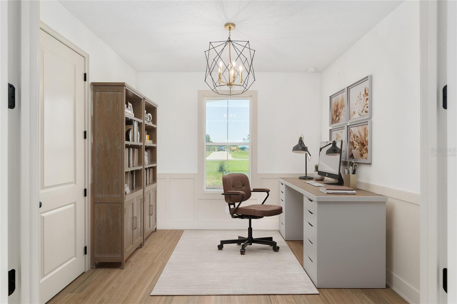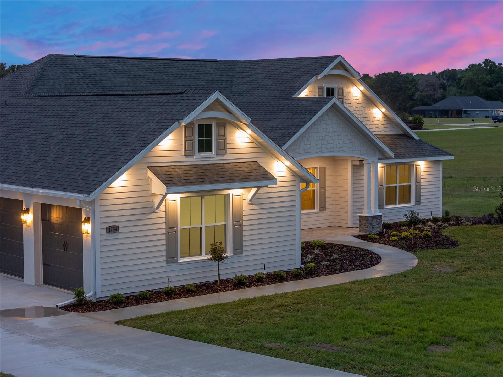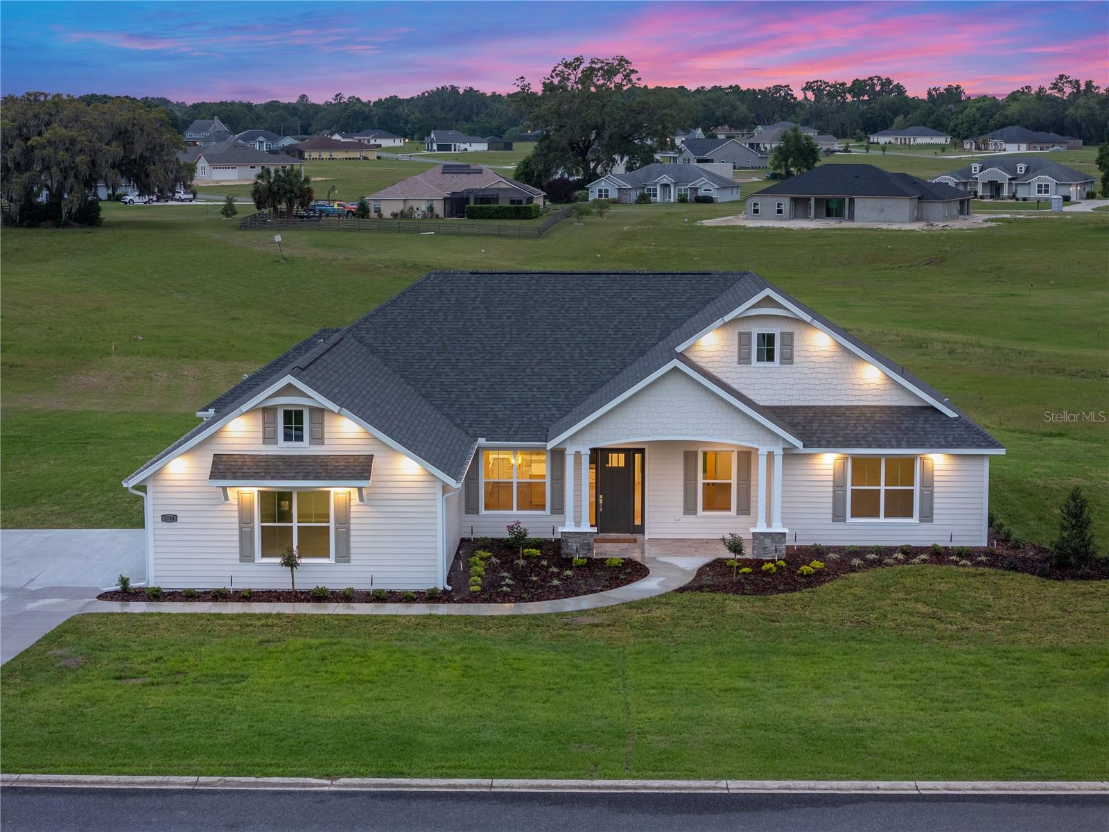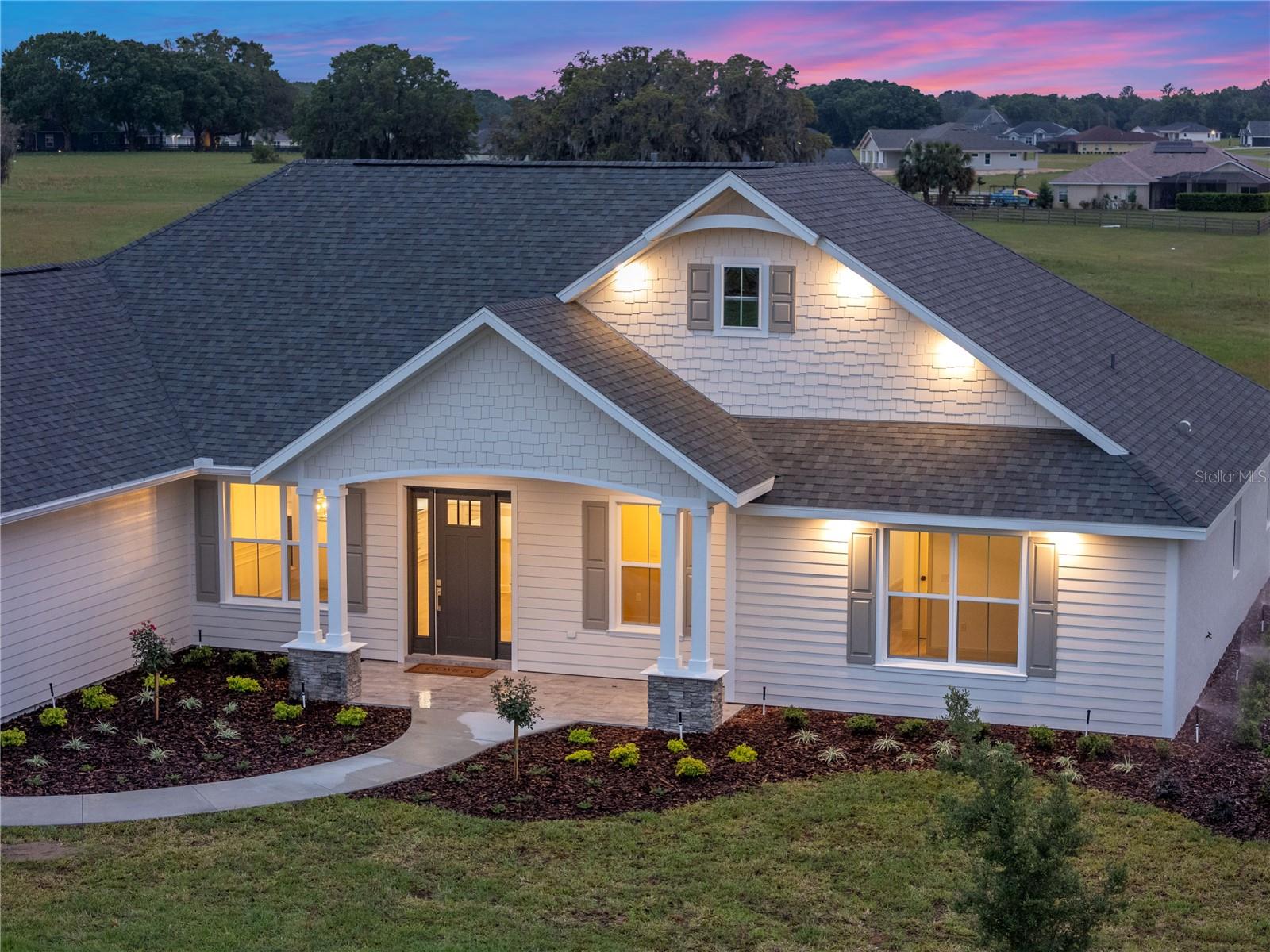 *SELLER OFFERING $10,000 CLOSING CREDIT*Move In Ready* Welcome to the Sterling Sunrise model by Secure Built Custom Homes—the only home they'll offer in 2025! Located on a sprawling 1.09-acre parcel in the prestigious gated community of Irish Acres, this one-of-a-kind modern Craftsman is a perfect blend of timeless charm and contemporary elegance. From the large front porch with Craftsman columns to the detailed wainscoting inside, every inch of this home reflects quality. Step through the elegant front door into a welcoming foyer and take in the high ceilings, coffered tray accents, and an open-concept layout ideal for modern living. The chef's kitchen is as functional as it is stunning. Featuring Quartz countertops, a 36” cooktop and oversized range hood with integrated cabinet design, large center island, built-in appliances and an oversized walk-in pantry. A pocket style triple sliding glass door draws your eye to the covered lanai, creating a seamless transition between indoor and outdoor living. The private home office/den offers built-in charm with wainscoting on all four walls adds a sense of elegance and distinction, making it a standout feature of the home. On one side of the home, the primary suite offers a private retreat complete with a tray ceiling, custom wainscoting accents and private access to the lanai. Enjoy your spa inspired ensuite bathroom with an oversized freestanding soaking tub, roll -in shower and dual quartz vanities with elegant sconce lighting. The opposite side of the home features three comfortable guest bedrooms with a shared guest bathroom. A separate pool bath offers direct access to the lanai, making it ideal for outdoor gatherings or future pool plans. Builder added a number of energy efficiency items including High Performance/Low-E windows, R-38 upgraded insulation, 15.2 SEER2 Carrier HVAC system with heat pump and recirculating hot water plumbing for fast delivery at every fixture. Crafted by Secure Built Custom Homes, this home comes with the highly regarded 2-10 Home Buyers Warranty, ensuring quality and peace of mind for years to come. Don’t miss this rare opportunity to own a Secure Built masterpiece in north Ocala’s most desirable gated communities of Irish Acres—schedule your private showing today!