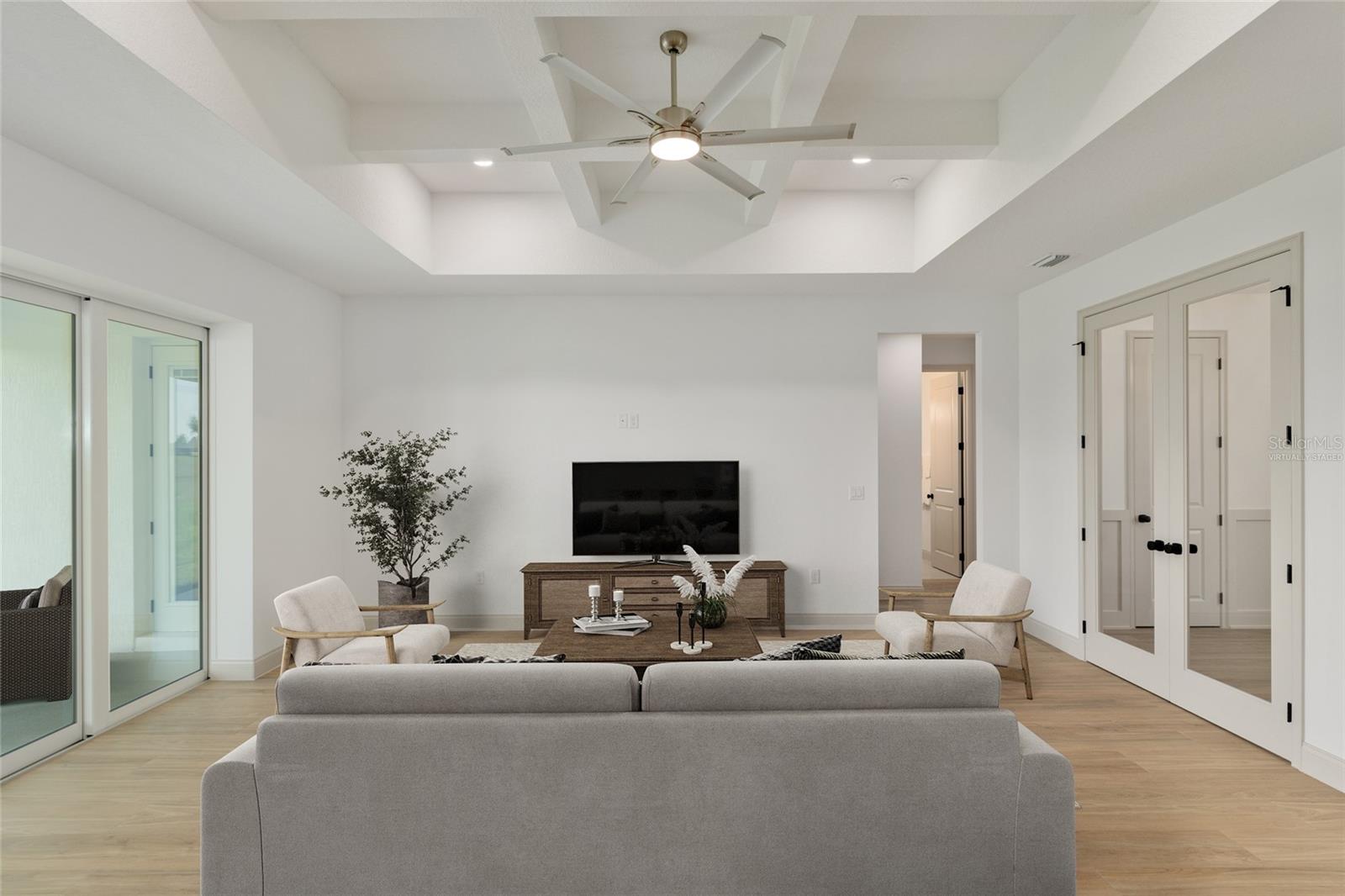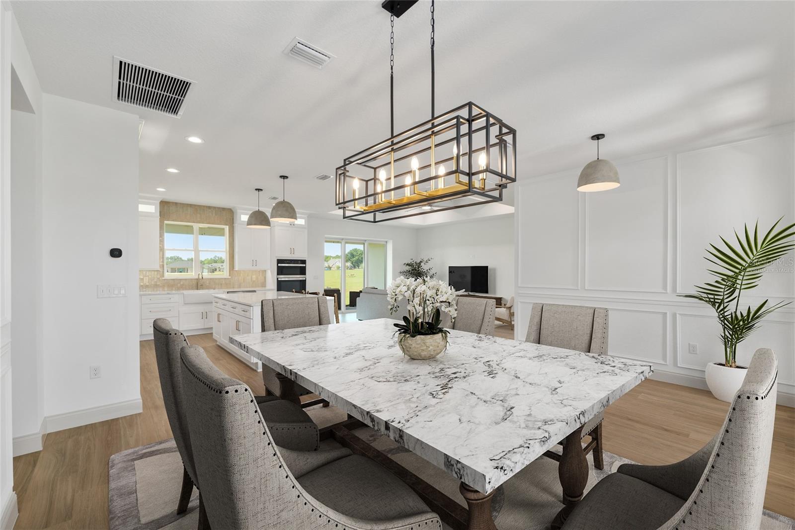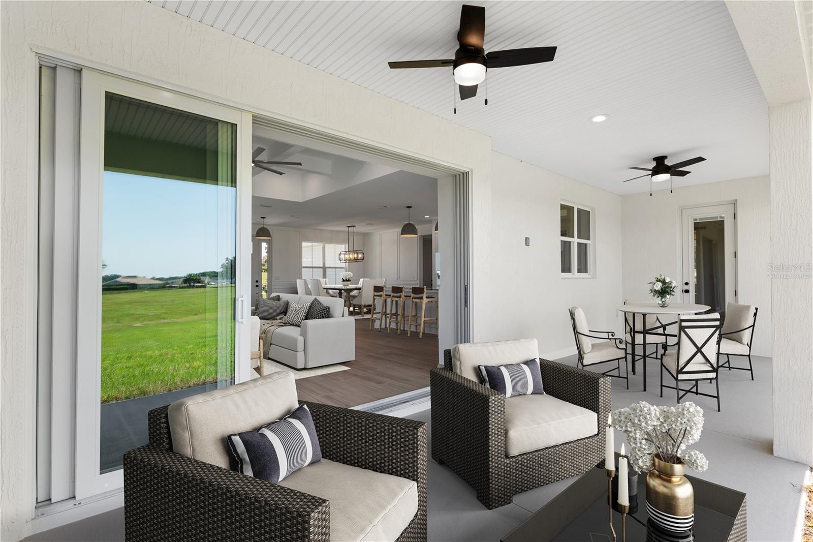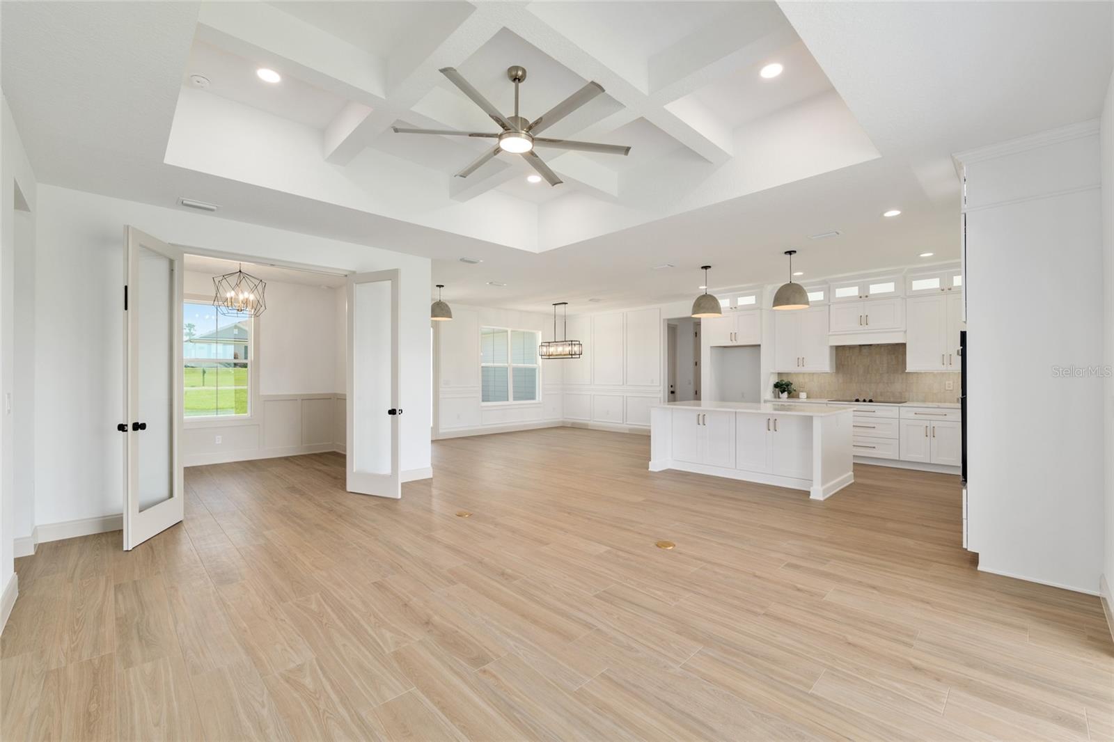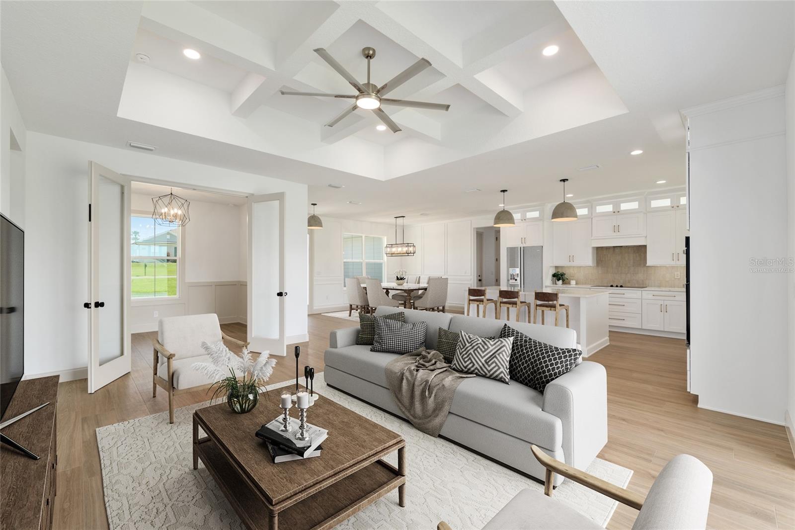 *SELLER OFFERING $10,000 CLOSING CREDIT*Move In Ready* Welcome to the Sterling Sunrise model by Secure Built Custom Homes—the only home they'll offer in 2025! Located on a sprawling 1.09-acre parcel in the prestigious gated community of Irish Acres, this one-of-a-kind modern Craftsman is a perfect blend of timeless charm and contemporary elegance. From the large front porch with Craftsman columns to the detailed wainscoting inside, every inch of this home reflects quality. Step through the elegant front door into a welcoming foyer and take in the high ceilings, coffered tray accents, and an open-concept layout ideal for modern living. The chef's kitchen is as functional as it is stunning. Featuring Quartz countertops, a 36” cooktop and oversized range hood with integrated cabinet design, large center island, built-in appliances and an oversized walk-in pantry. A pocket style triple sliding glass door draws your eye to the covered lanai, creating a seamless transition between indoor and outdoor living. The private home office/den offers built-in charm with wainscoting on all four walls adds a sense of elegance and distinction, making it a standout feature of the home. On one side of the home, the primary suite offers a private retreat complete with a tray ceiling, custom wainscoting accents and private access to the lanai. Enjoy your spa inspired ensuite bathroom with an oversized freestanding soaking tub, roll -in shower and dual quartz vanities with elegant sconce lighting. The opposite side of the home features three comfortable guest bedrooms with a shared guest bathroom. A separate pool bath offers direct access to the lanai, making it ideal for outdoor gatherings or future pool plans. Builder added a number of energy efficiency items including High Performance/Low-E windows, R-38 upgraded insulation, 15.2 SEER2 Carrier HVAC system with heat pump and recirculating hot water plumbing for fast delivery at every fixture. Crafted by Secure Built Custom Homes, this home comes with the highly regarded 2-10 Home Buyers Warranty, ensuring quality and peace of mind for years to come. Don’t miss this rare opportunity to own a Secure Built masterpiece in north Ocala’s most desirable gated communities of Irish Acres—schedule your private showing today!