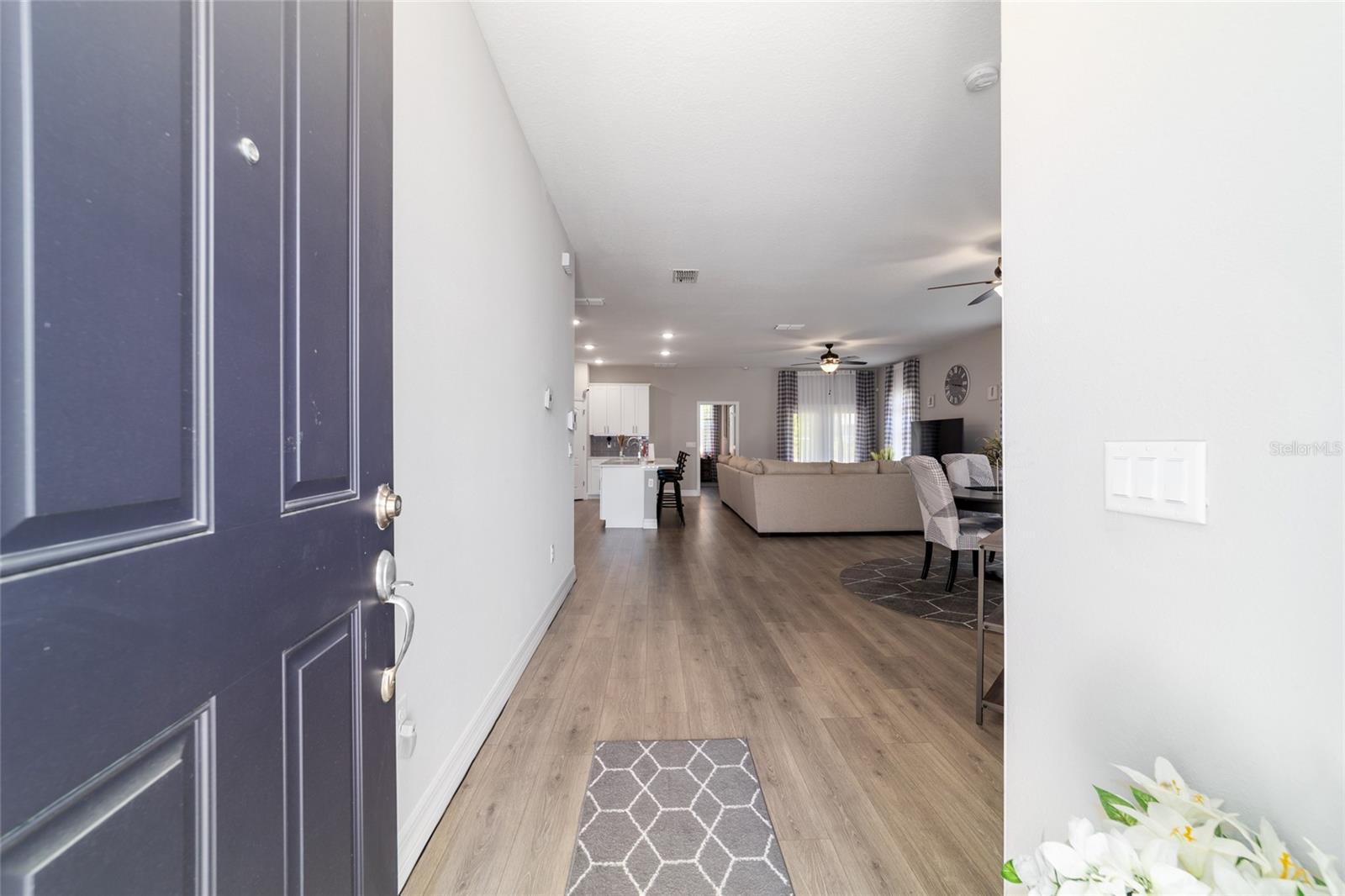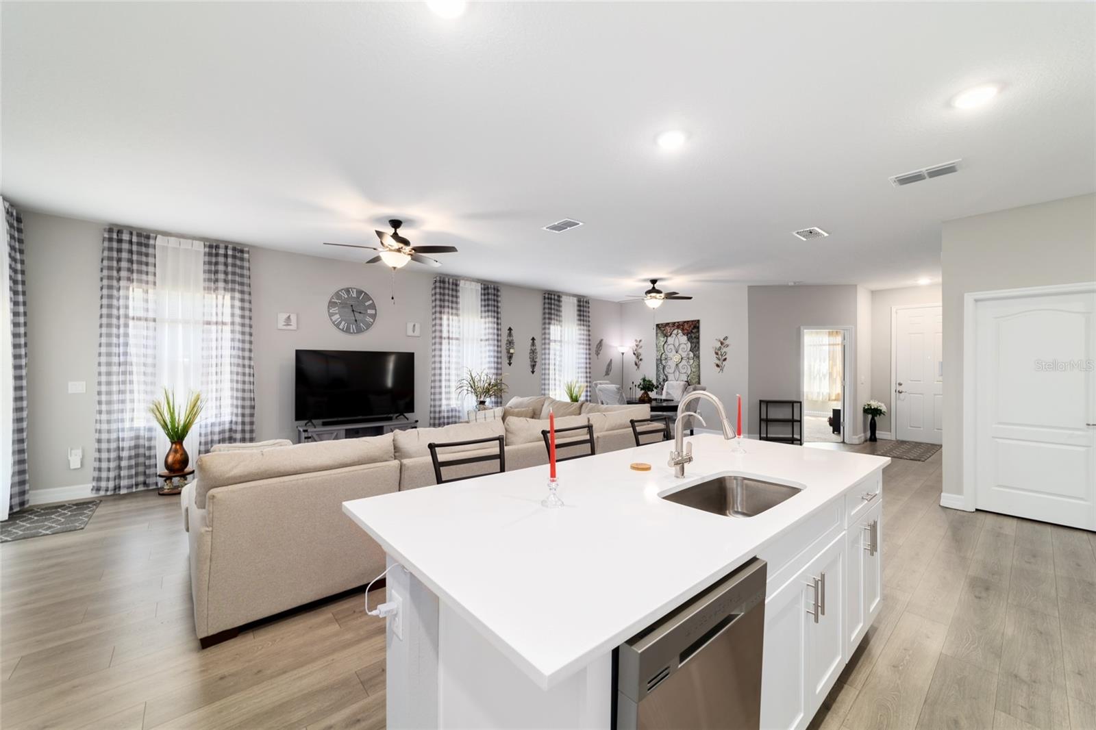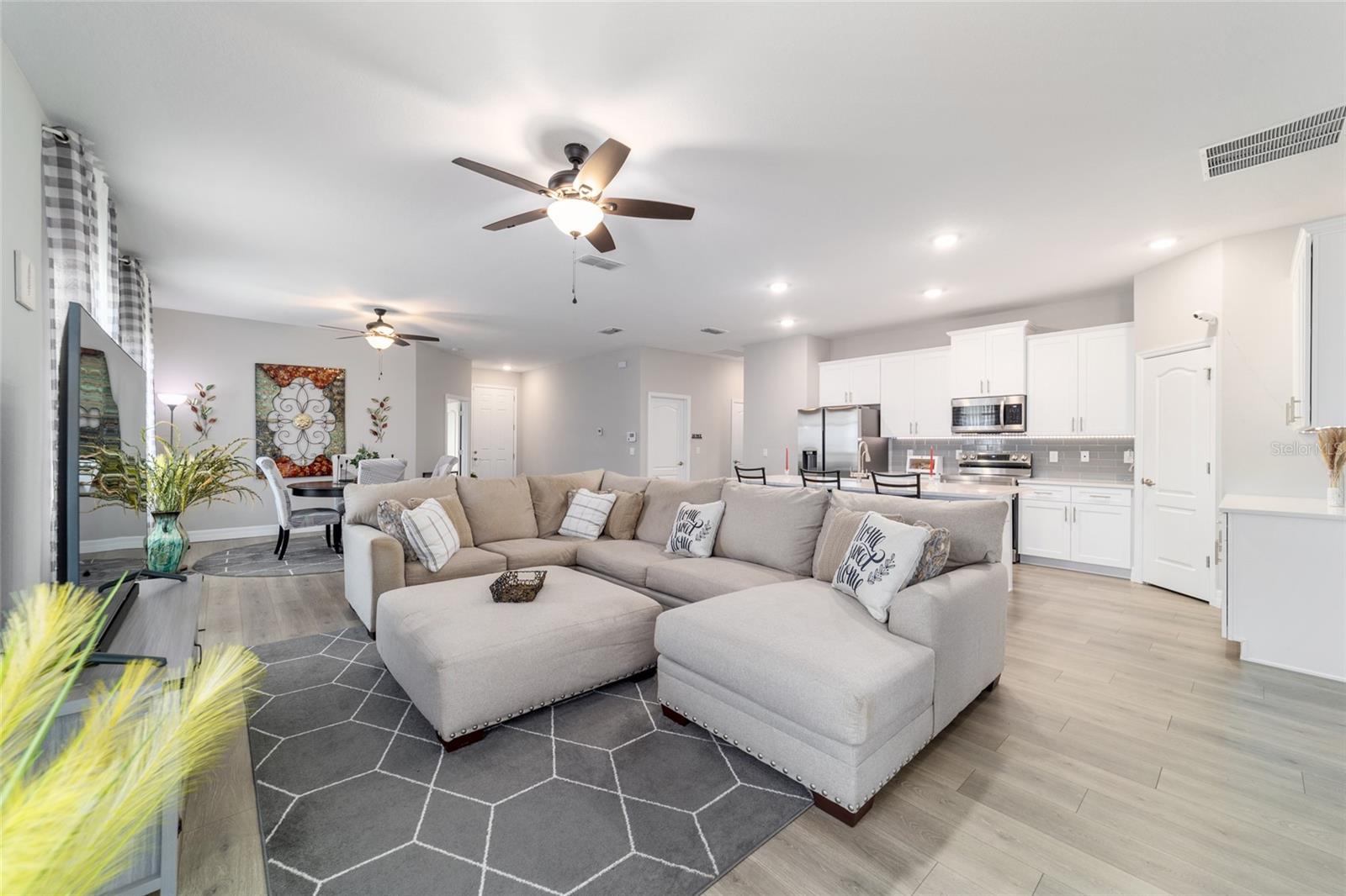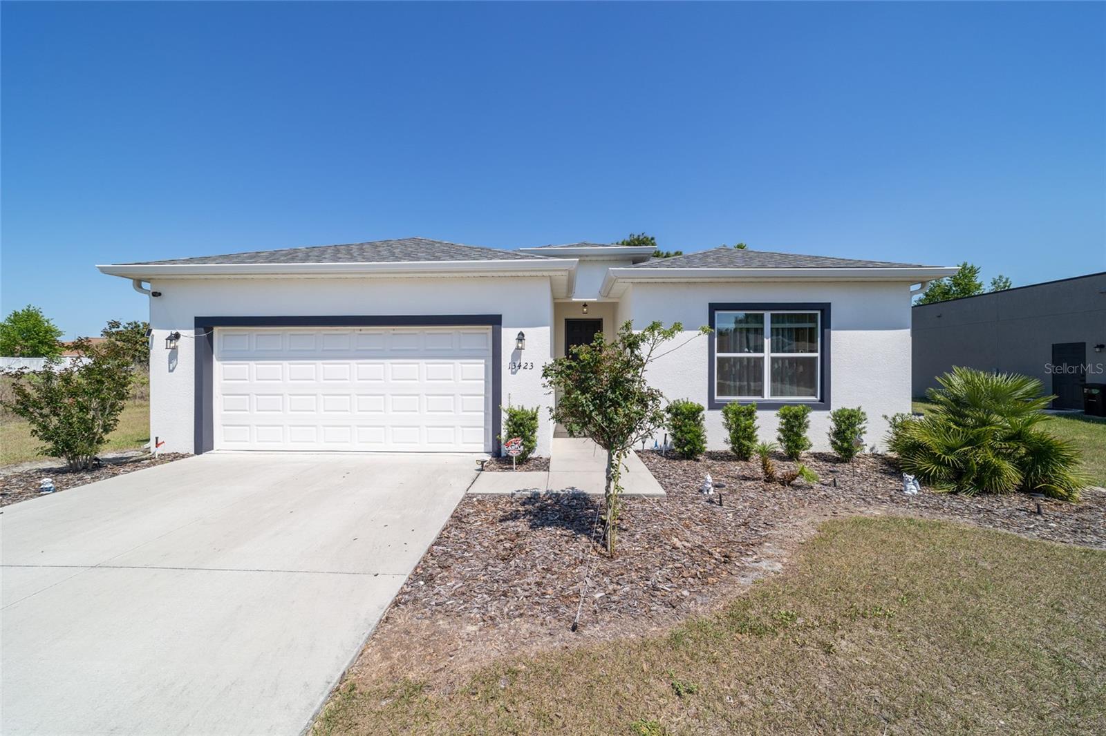 PRICE IMPROVEMENT- $370,000 and includes home generator (RYOBI 6,500 Watt Gasoline Powered Portable Generator purchased in 2023 and only used once)! Step into style and comfort with this beautifully maintained 4 bedroom, 3 bathroom concrete block home offering 2,081 square feet of living space, built in 2022! Located in a prime Ocala location, South of SW 49TH Avenue and North of HWY 484, with quick access to I-75 and the Florida Turnpike, this home offers many upgrades and convenience without the burden of an HOA or CDD fees. As you walk in, you are greeted by an open concept living space, filled with natural light and high ceilings. The spacious kitchen flows effortlessly into the living and dining area. Upgrades in the home include: stainless-steel Samsung appliances, including washer and dryer. Beautiful wood cabinetry with soft closing feature. Water softener and water purification system added in 2023. Scratch and water resistant LVP flooring in common areas and master bedroom. Home is also equipped with a smart home package, offering modern automation for enhanced security and energy efficiency. The owner's suite is a true retreat, boasting with tray ceilings, walk-in closets, a luxurious en-suite with dual sink vanity and designer tile, glass enclosed shower offering a spa like touch! Spare bathrooms also offer upgraded tiled bathtubs, a dual sink vanity in one bathroom and an additional en-suite bedroom perfect for visitors or multi-generational living. Enjoy the outdoors on the screened-in back patio that overlooks a completely fenced in yard, complete in 2024. Home is equipped with an irrigation system, rain gutters, motion lights and wired for a security system and cameras. This home is full of modern upgrades, unbeatable location and stylish features throughout- schedule your private showing today and fall in love with this move-in ready home!