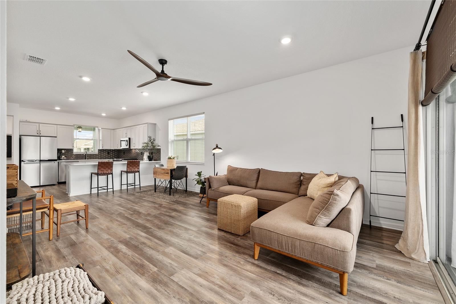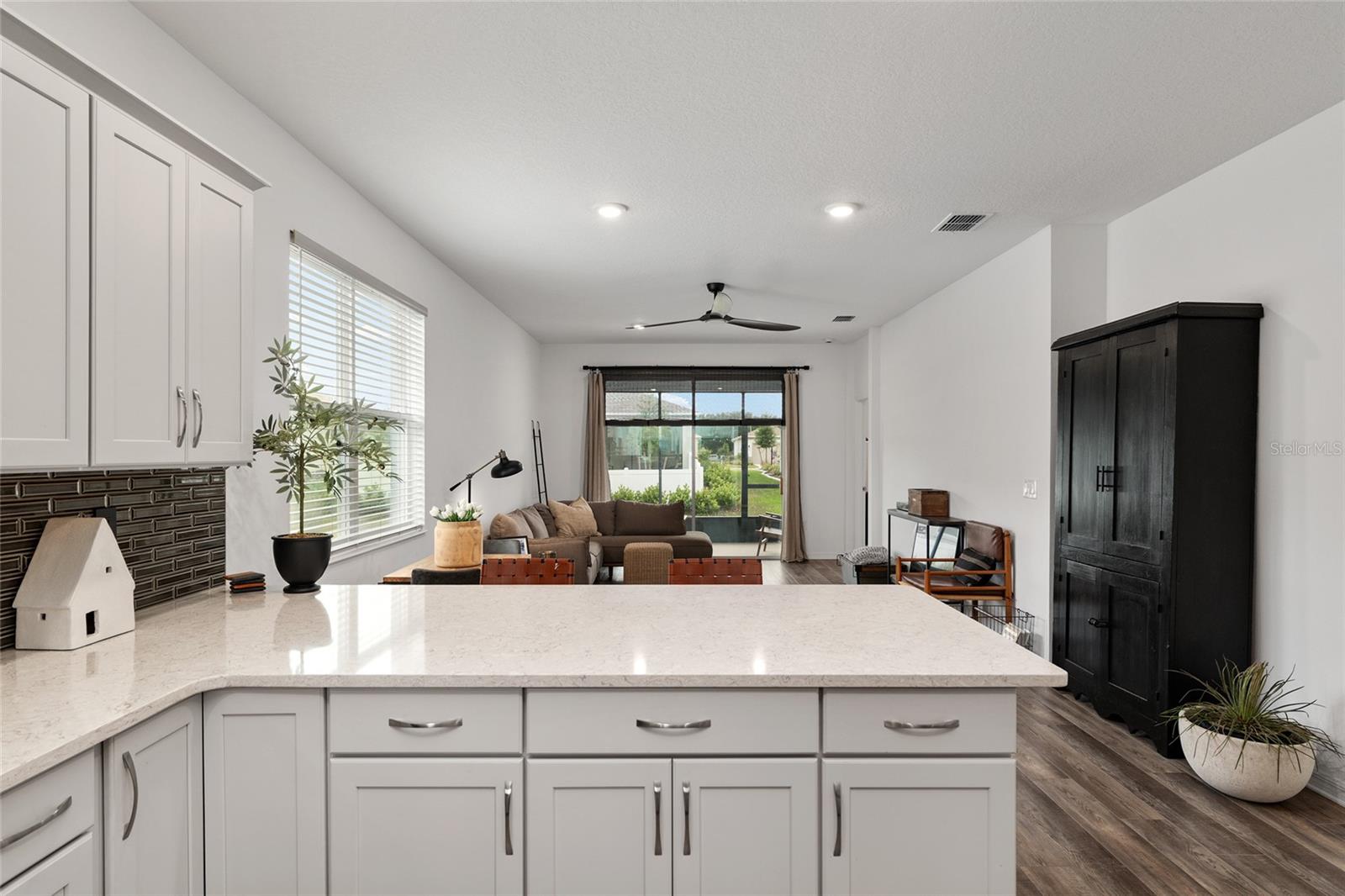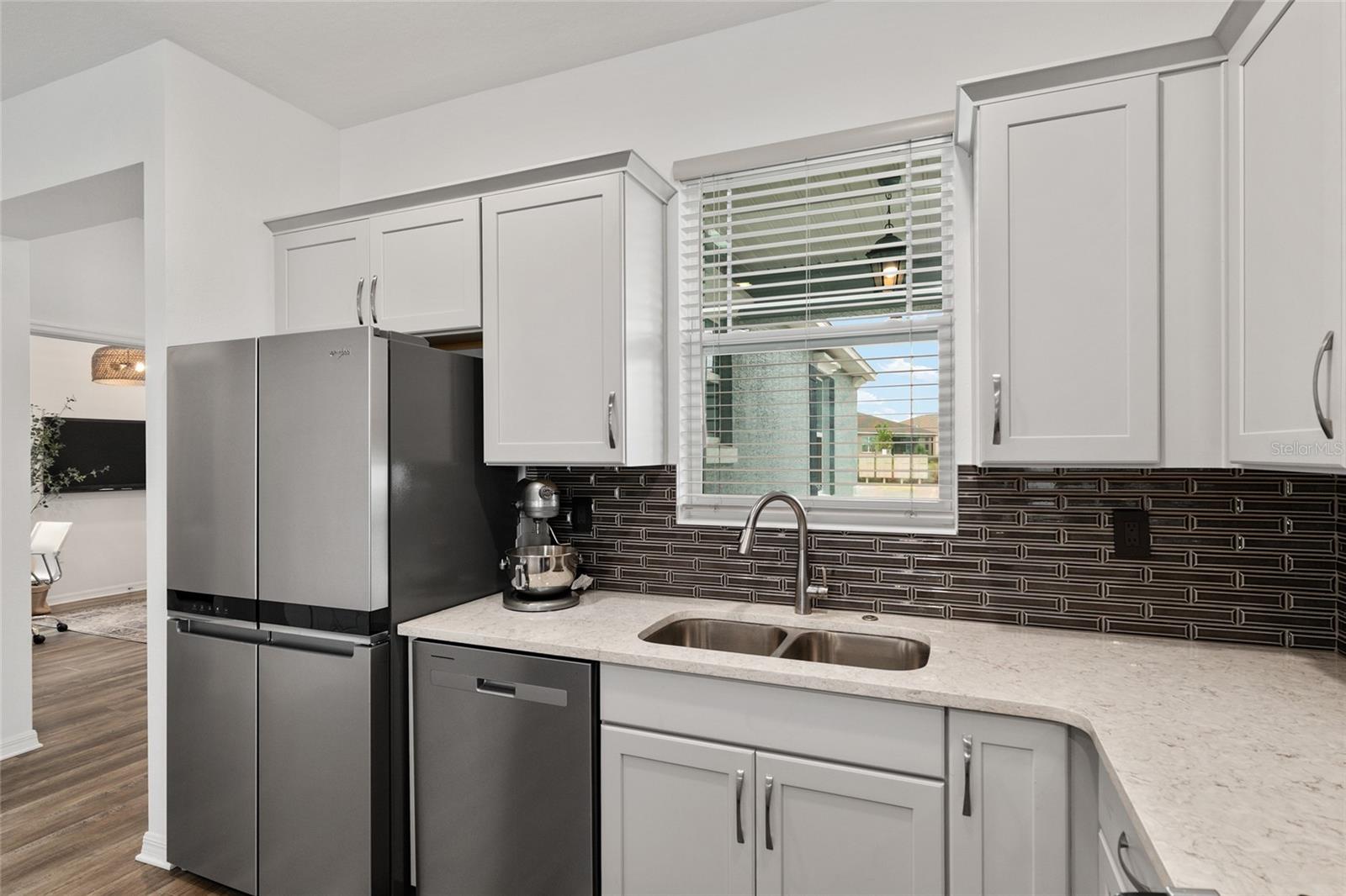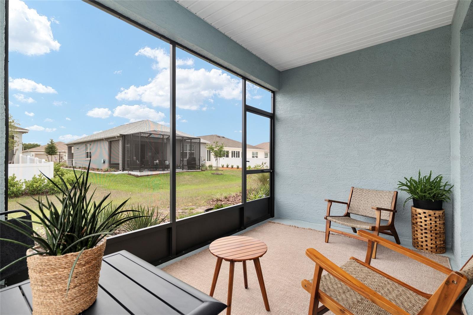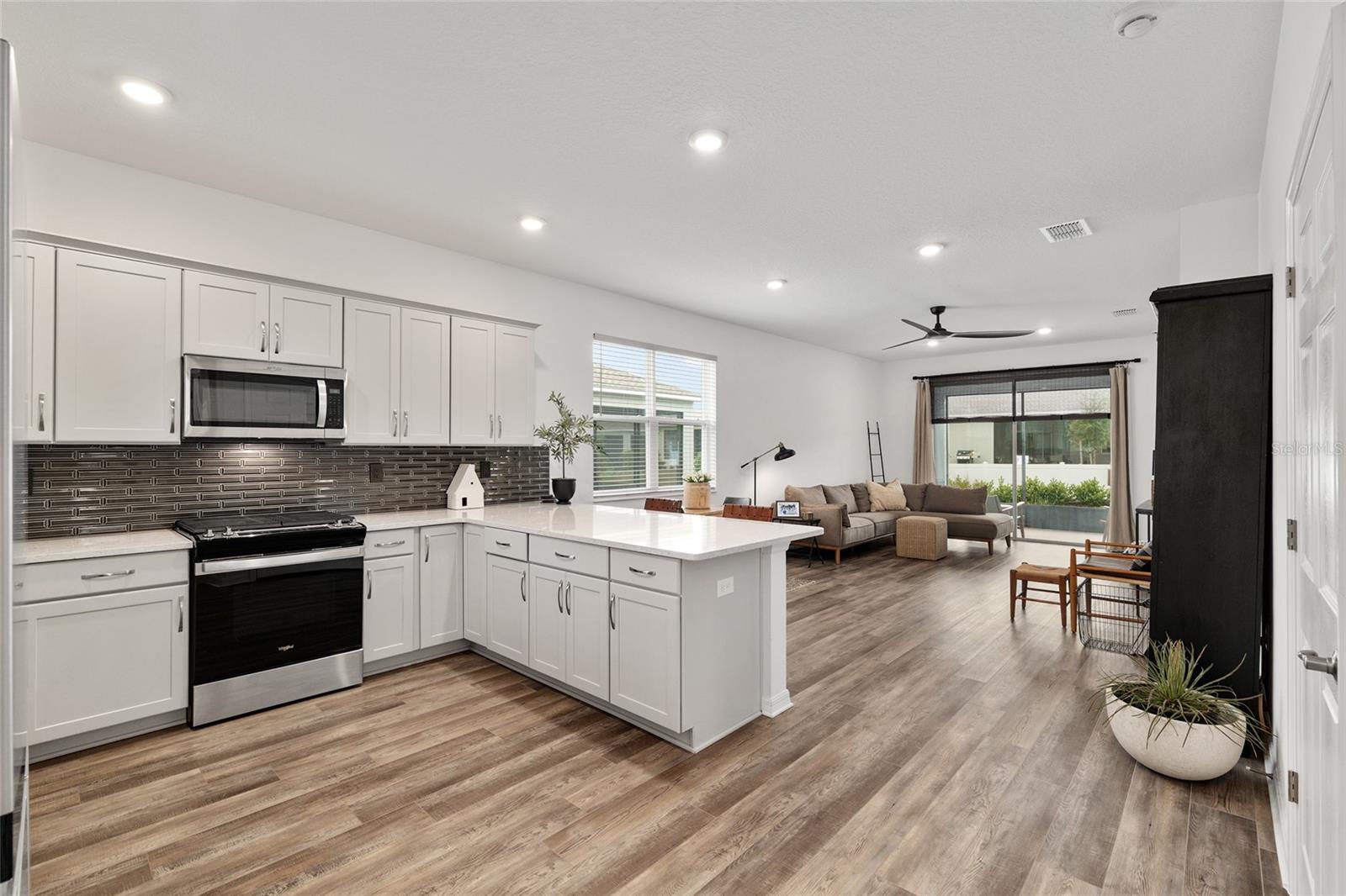 Stunning Move-In Ready Home in Weybourne Landing! Welcome to 8798 SW 79th Pl., Ocala, FL 34481. Located in the highly desirable Weybourne Landing neighborhood within the On Top of the World community, this stunning 2023 Tamar model is move-in ready and thoughtfully designed for modern comfort and style. With three bedrooms and two bathrooms, the home offers 1,469 square feet of finished living space and 2,121 square feet under roof, including a spacious two-car garage. The open floor plan invites you in with a welcoming foyer that flows seamlessly into the kitchen, dining, and living areas, enhanced by 9-foot ceilings and large sliding glass doors that lead to a covered, screened-in lanai. Luxury vinyl plank flooring throughout provides both elegance and durability. The kitchen is a standout feature, complete with premium 42” cabinetry with spacious lazy susan cabinet, undercabinet LED lighting with crown molding, a spacious pantry, stainless steel Whirlpool appliances, quartz countertops, a breakfast bar, natural gas cooking, and a stylish backsplash that adds a touch of sophistication. The primary suite offers a peaceful retreat, highlighting a luxurious ensuite with dual vanities topped in quartz, a linen closet, and a walk-in shower with floor-to-ceiling tile and a seamless glass door. A large walk-in closet ensures ample storage. The two guest bedrooms are positioned at the front of the home for added privacy and share a well-appointed second bathroom with a quartz vanity and a tub/shower combination. Additional highlights include custom window shades and treatments, ceiling fans, beautifully manicured landscaping, and the comfort of a screened-in outdoor living space. Living in On Top of the World means enjoying Ocala’s premier 55+ gated community, renowned for its unmatched amenities and vibrant lifestyle. Residents have golf cart access to nearby shopping centers, three golf courses, a driving range, multiple clubhouses, fitness centers, indoor and outdoor pools, a sauna, steam room, live entertainment venues, and a wide range of recreational facilities including tennis, pickle ball, basketball courts, a softball field, an RC airplane field, RV parking, and over 175 clubs and interest groups. Ideally situated just minutes from the World Equestrian Center, top medical facilities, theaters, and downtown Ocala, this home is the perfect combination of luxury, convenience, and resort-style living. Do not miss your chance to make it yours—schedule your private tour today.