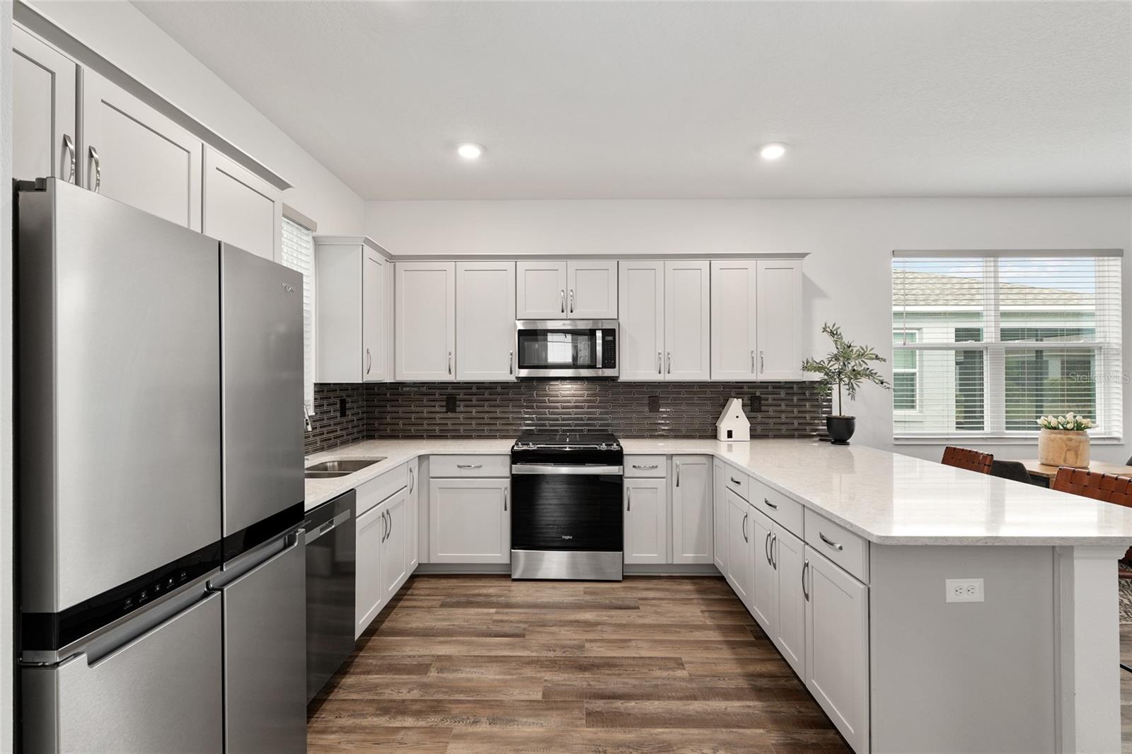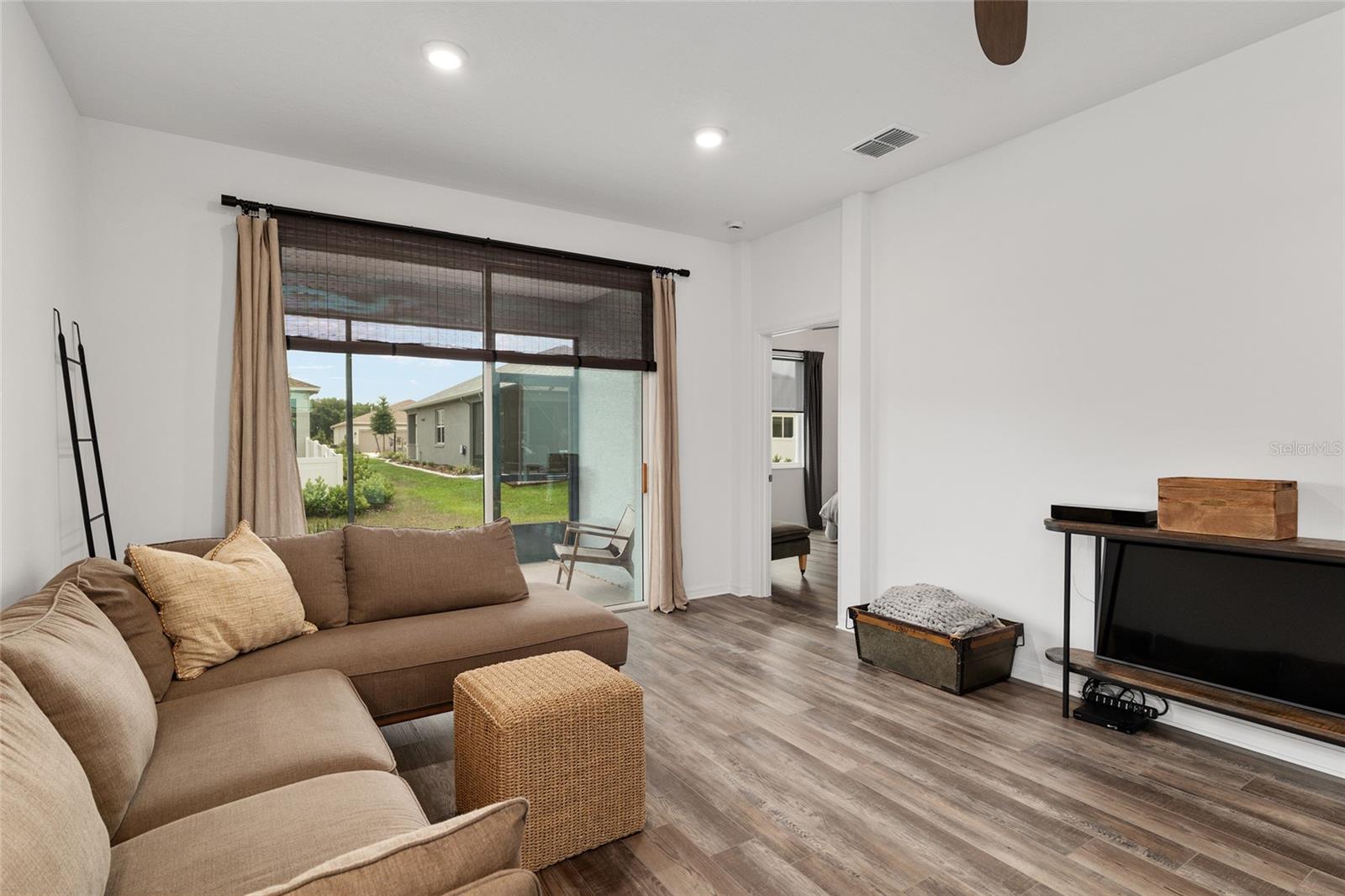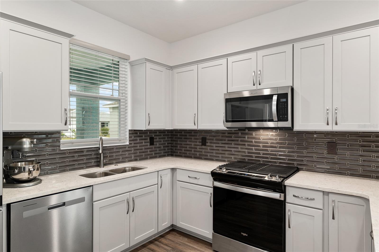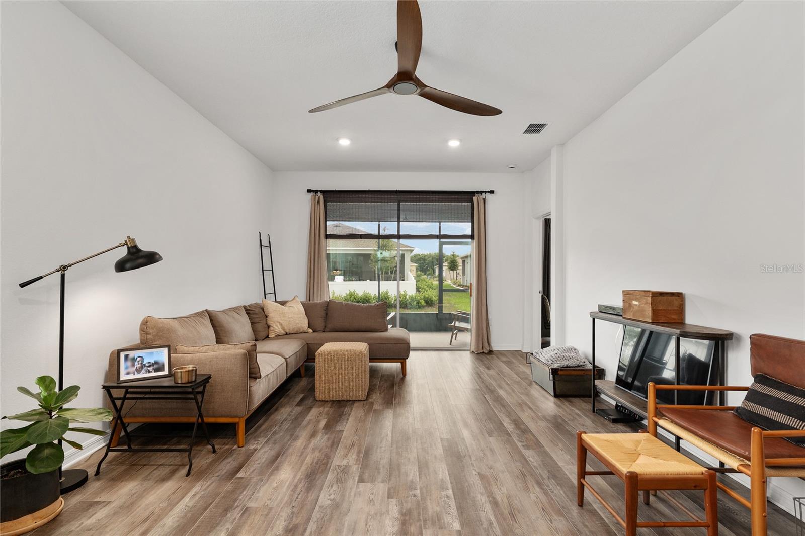 Stunning Move-In Ready Home in Weybourne Landing! Welcome to 8798 SW 79th Pl., Ocala, FL 34481. Located in the highly desirable Weybourne Landing neighborhood within the On Top of the World community, this stunning 2023 Tamar model is move-in ready and thoughtfully designed for modern comfort and style. With three bedrooms and two bathrooms, the home offers 1,469 square feet of finished living space and 2,121 square feet under roof, including a spacious two-car garage. The open floor plan invites you in with a welcoming foyer that flows seamlessly into the kitchen, dining, and living areas, enhanced by 9-foot ceilings and large sliding glass doors that lead to a covered, screened-in lanai. Luxury vinyl plank flooring throughout provides both elegance and durability. The kitchen is a standout feature, complete with premium 42” cabinetry with spacious lazy susan cabinet, undercabinet LED lighting with crown molding, a spacious pantry, stainless steel Whirlpool appliances, quartz countertops, a breakfast bar, natural gas cooking, and a stylish backsplash that adds a touch of sophistication. The primary suite offers a peaceful retreat, highlighting a luxurious ensuite with dual vanities topped in quartz, a linen closet, and a walk-in shower with floor-to-ceiling tile and a seamless glass door. A large walk-in closet ensures ample storage. The two guest bedrooms are positioned at the front of the home for added privacy and share a well-appointed second bathroom with a quartz vanity and a tub/shower combination. Additional highlights include custom window shades and treatments, ceiling fans, beautifully manicured landscaping, and the comfort of a screened-in outdoor living space. Living in On Top of the World means enjoying Ocala’s premier 55+ gated community, renowned for its unmatched amenities and vibrant lifestyle. Residents have golf cart access to nearby shopping centers, three golf courses, a driving range, multiple clubhouses, fitness centers, indoor and outdoor pools, a sauna, steam room, live entertainment venues, and a wide range of recreational facilities including tennis, pickle ball, basketball courts, a softball field, an RC airplane field, RV parking, and over 175 clubs and interest groups. Ideally situated just minutes from the World Equestrian Center, top medical facilities, theaters, and downtown Ocala, this home is the perfect combination of luxury, convenience, and resort-style living. Do not miss your chance to make it yours—schedule your private tour today.