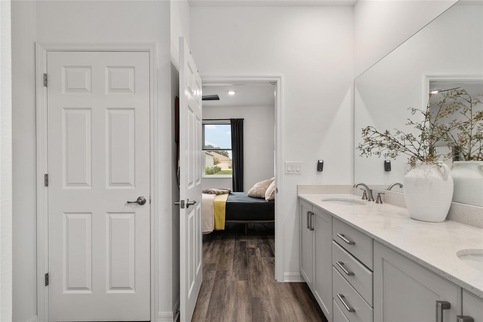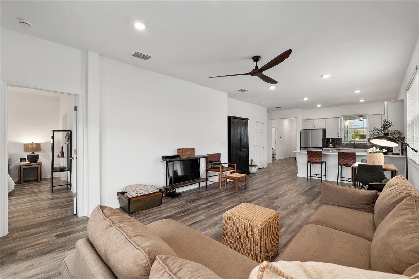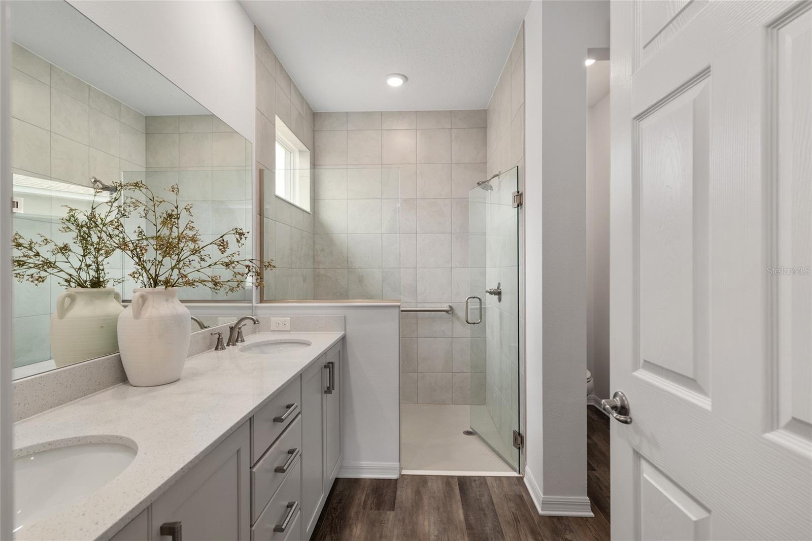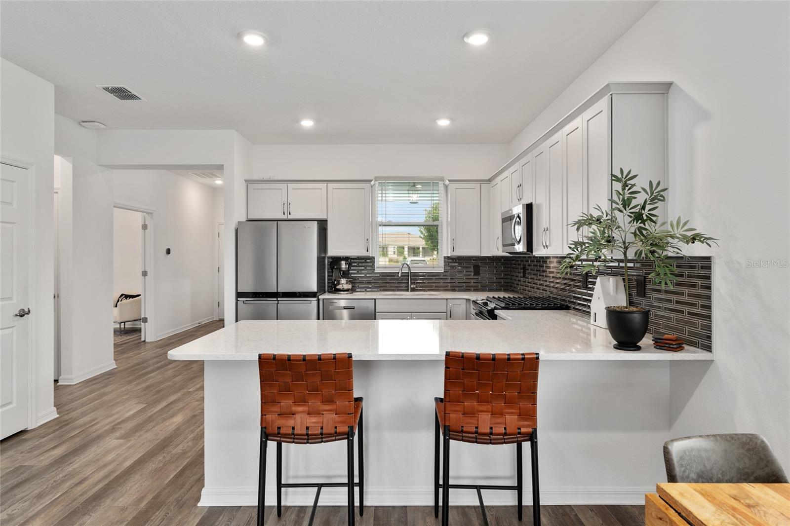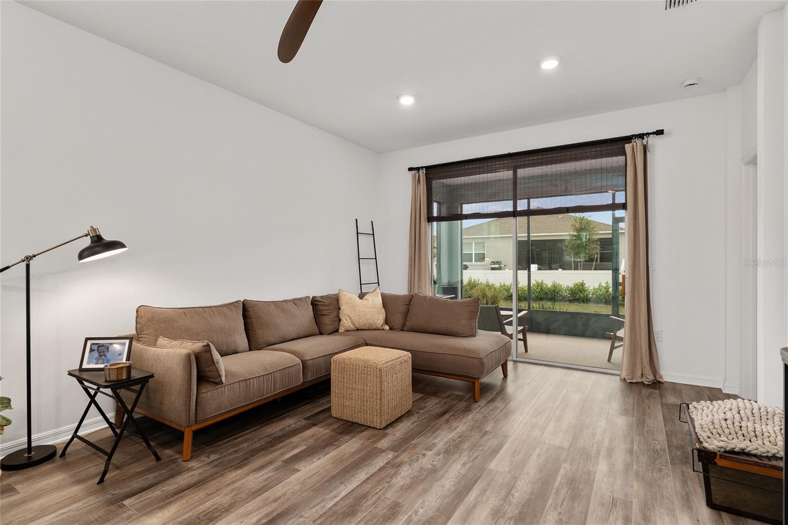 Stunning Move-In Ready Home in Weybourne Landing! Welcome to 8798 SW 79th Pl., Ocala, FL 34481. Located in the highly desirable Weybourne Landing neighborhood within the On Top of the World community, this stunning 2023 Tamar model is move-in ready and thoughtfully designed for modern comfort and style. With three bedrooms and two bathrooms, the home offers 1,469 square feet of finished living space and 2,121 square feet under roof, including a spacious two-car garage. The open floor plan invites you in with a welcoming foyer that flows seamlessly into the kitchen, dining, and living areas, enhanced by 9-foot ceilings and large sliding glass doors that lead to a covered, screened-in lanai. Luxury vinyl plank flooring throughout provides both elegance and durability. The kitchen is a standout feature, complete with premium 42” cabinetry with spacious lazy susan cabinet, undercabinet LED lighting with crown molding, a spacious pantry, stainless steel Whirlpool appliances, quartz countertops, a breakfast bar, natural gas cooking, and a stylish backsplash that adds a touch of sophistication. The primary suite offers a peaceful retreat, highlighting a luxurious ensuite with dual vanities topped in quartz, a linen closet, and a walk-in shower with floor-to-ceiling tile and a seamless glass door. A large walk-in closet ensures ample storage. The two guest bedrooms are positioned at the front of the home for added privacy and share a well-appointed second bathroom with a quartz vanity and a tub/shower combination. Additional highlights include custom window shades and treatments, ceiling fans, beautifully manicured landscaping, and the comfort of a screened-in outdoor living space. Living in On Top of the World means enjoying Ocala’s premier 55+ gated community, renowned for its unmatched amenities and vibrant lifestyle. Residents have golf cart access to nearby shopping centers, three golf courses, a driving range, multiple clubhouses, fitness centers, indoor and outdoor pools, a sauna, steam room, live entertainment venues, and a wide range of recreational facilities including tennis, pickle ball, basketball courts, a softball field, an RC airplane field, RV parking, and over 175 clubs and interest groups. Ideally situated just minutes from the World Equestrian Center, top medical facilities, theaters, and downtown Ocala, this home is the perfect combination of luxury, convenience, and resort-style living. Do not miss your chance to make it yours—schedule your private tour today.