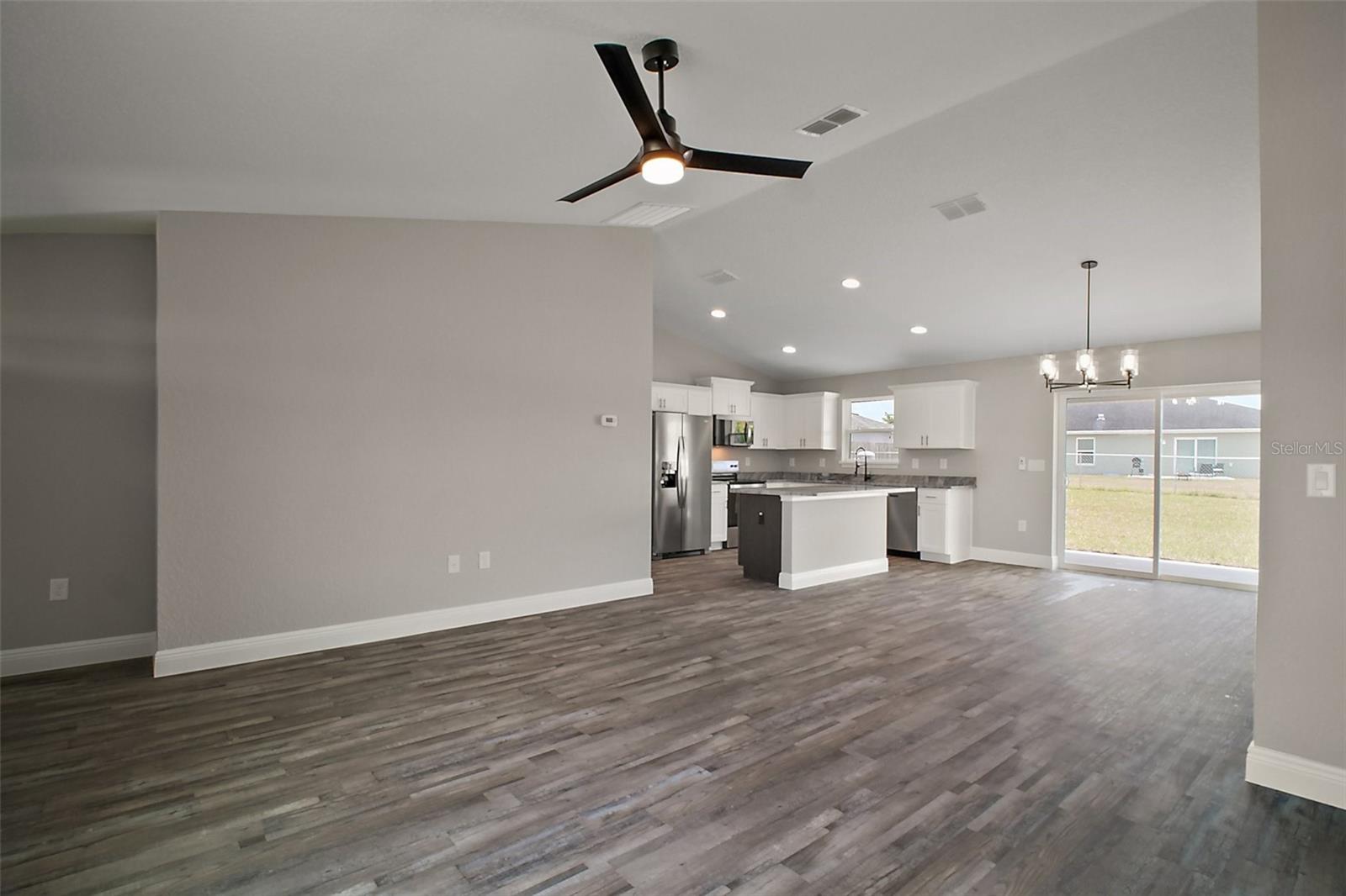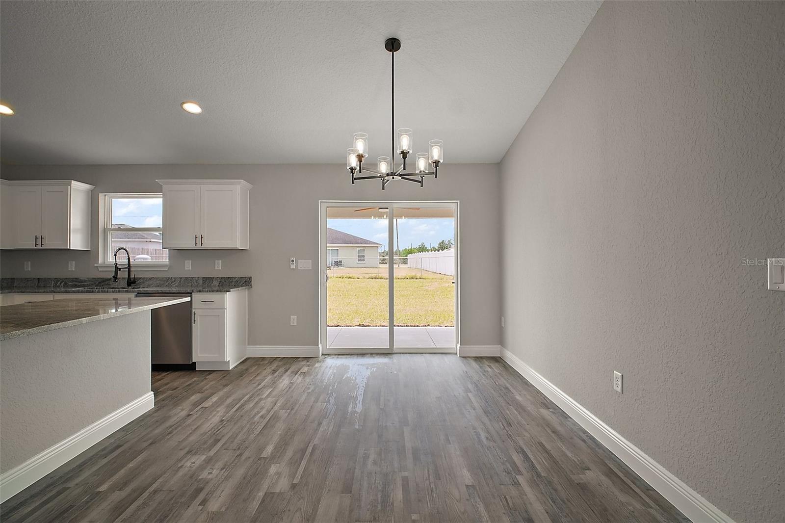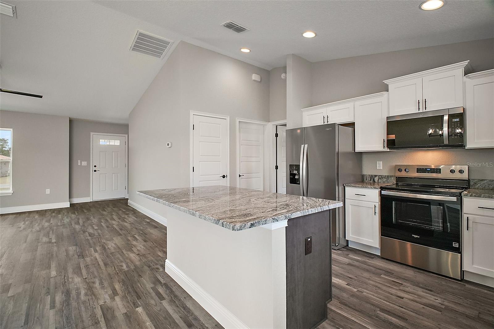 On a highly desirable lot, this home features 3 bedrooms with 2 full baths. Live large with vaulted ceilings as you enter the open concept layout. Eat-In kitchen, including a conveniently placed pantry, is ideal for entertaining with oversized island overlooking the main living area. Primary suite features tray ceilings, walk in closet, dual vanities and tile recessed shower. Home features include granite countertops and soft-close wooden cabinetry. Plank-style flooring is installed throughout the entire home and NO CARPET! Linen closet in guest hallway and inside utility closet in laundry room make for additional storage ideal. Walk out on your covered back patio - ceiling fan included - overlooking your backyard. Builder warranty is included - this home is a MUST see. Ask about closing cost concessions.