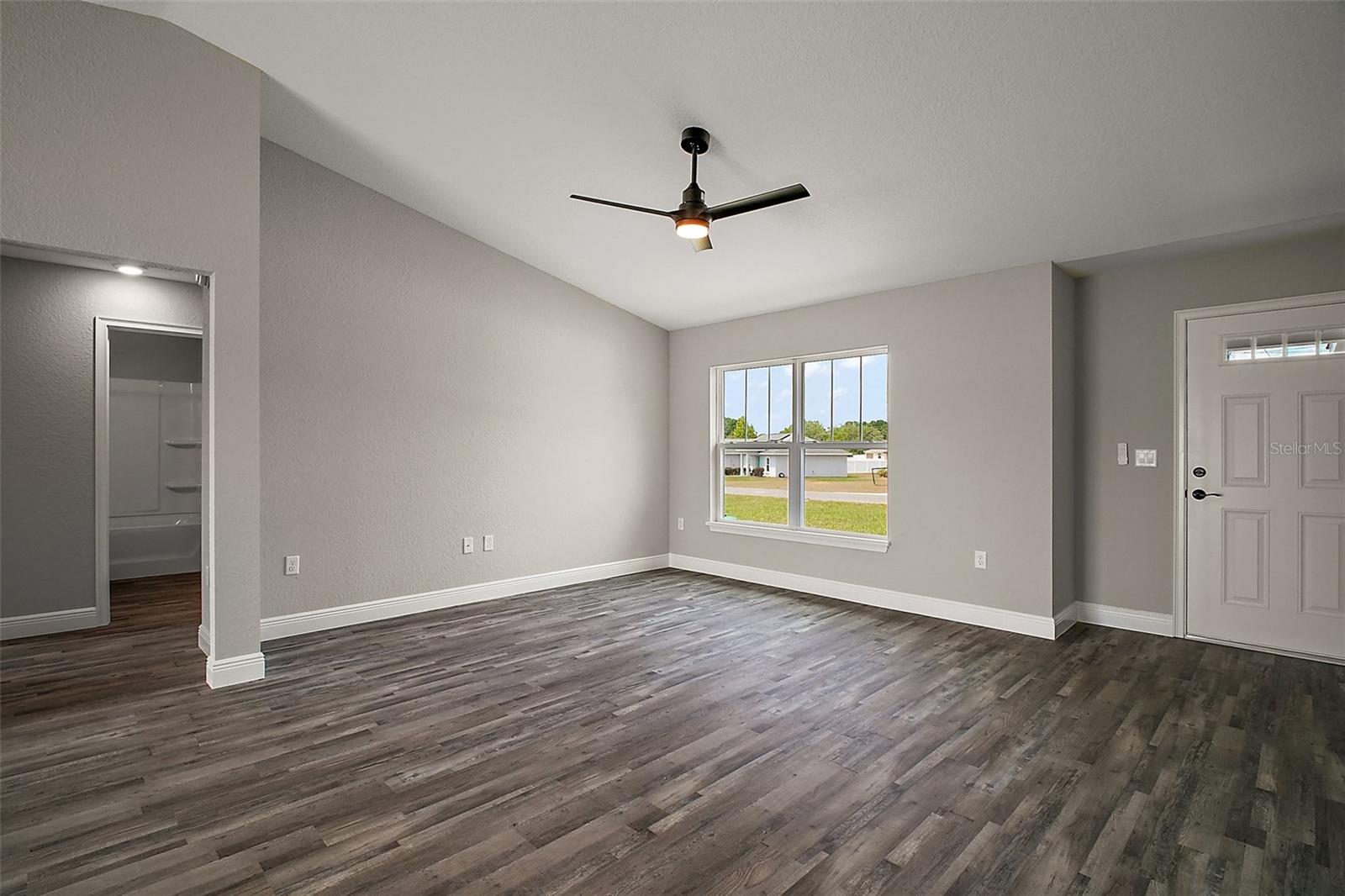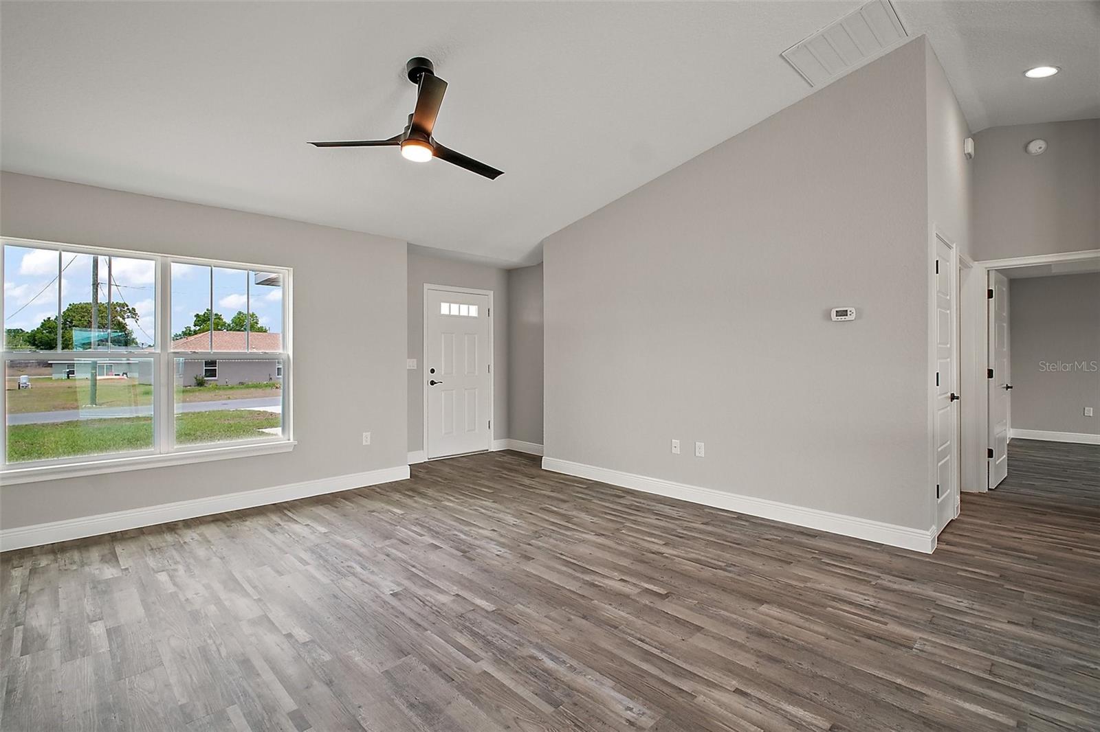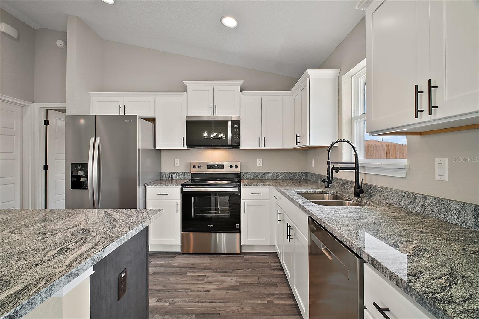 On a highly desirable lot, this home features 3 bedrooms with 2 full baths. Live large with vaulted ceilings as you enter the open concept layout. Eat-In kitchen, including a conveniently placed pantry, is ideal for entertaining with oversized island overlooking the main living area. Primary suite features tray ceilings, walk in closet, dual vanities and tile recessed shower. Home features include granite countertops and soft-close wooden cabinetry. Plank-style flooring is installed throughout the entire home and NO CARPET! Linen closet in guest hallway and inside utility closet in laundry room make for additional storage ideal. Walk out on your covered back patio - ceiling fan included - overlooking your backyard. Builder warranty is included - this home is a MUST see. Ask about closing cost concessions.