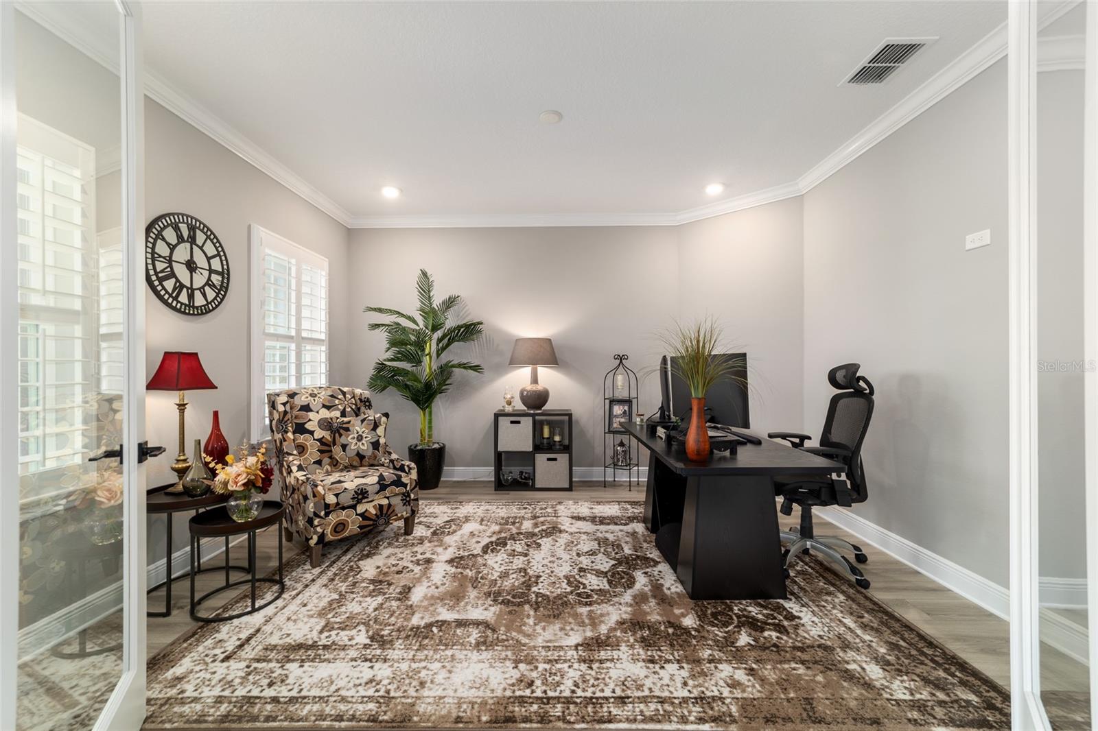 Seller Highly Motivated! FULL BUILDER WARRANTY: This beautifully upgraded 2025 Aberdeen located on a PRIVATE LOT in Balfour features 3 bedrooms, 3 full bathrooms, a versatile flex room, and an oversized 3-car garage. Designed with a desirable 3-way split bedroom layout, this home offers both privacy and functionality. Every detail has been thoughtfully curated, with luxury vinyl plank (LVP) flooring and crown molding extending throughout the home. Plantation shutters add timeless elegance, while French doors open to the flex room perfect for a home office, gym, or additional living space. Extra recessed lighting enhances the bright and airy feel throughout. The gourmet kitchen is a true showstopper, boasting two-tone cabinetry, quartz countertops with a matching full-height quartz backsplash, wine racks, and stylish glass cabinet inserts. High-end touches include a spice rack cabinet, dovetail soft-close drawers, convenient pot drawers, and a farmhouse sink all highlighted by staggered cabinetry for added sophistication. All three bathrooms are fully upgraded with designer tile work and listellos, creating spa-like retreats. The spacious laundry room is equipped with additional cabinetry, quartz counters, and a built-in sink. Every inch of this home has been outfitted with the best of the best while still incorporating small conveniences like a pre-plumb for a water softener and a floor plug in the great room. Balfour is located in Candler Hills, the estate section of On Top of the World. Candler Hills residents enjoy all of the amenities of On Top of the World as well as the exclusive Candler Hills like The Lodge and the future amenity Azura. On Top of the World is Ocala's premier 55+ golf course, resort community.