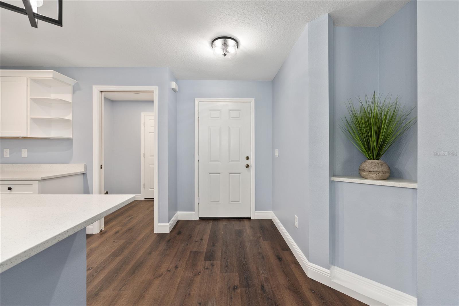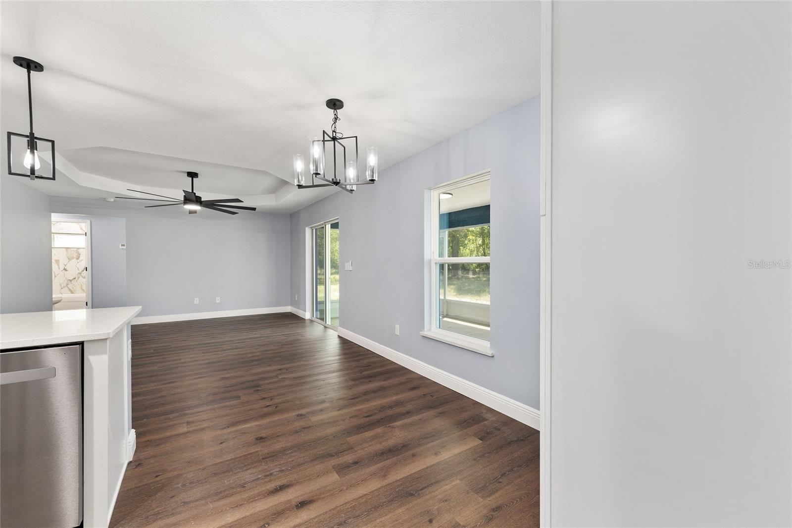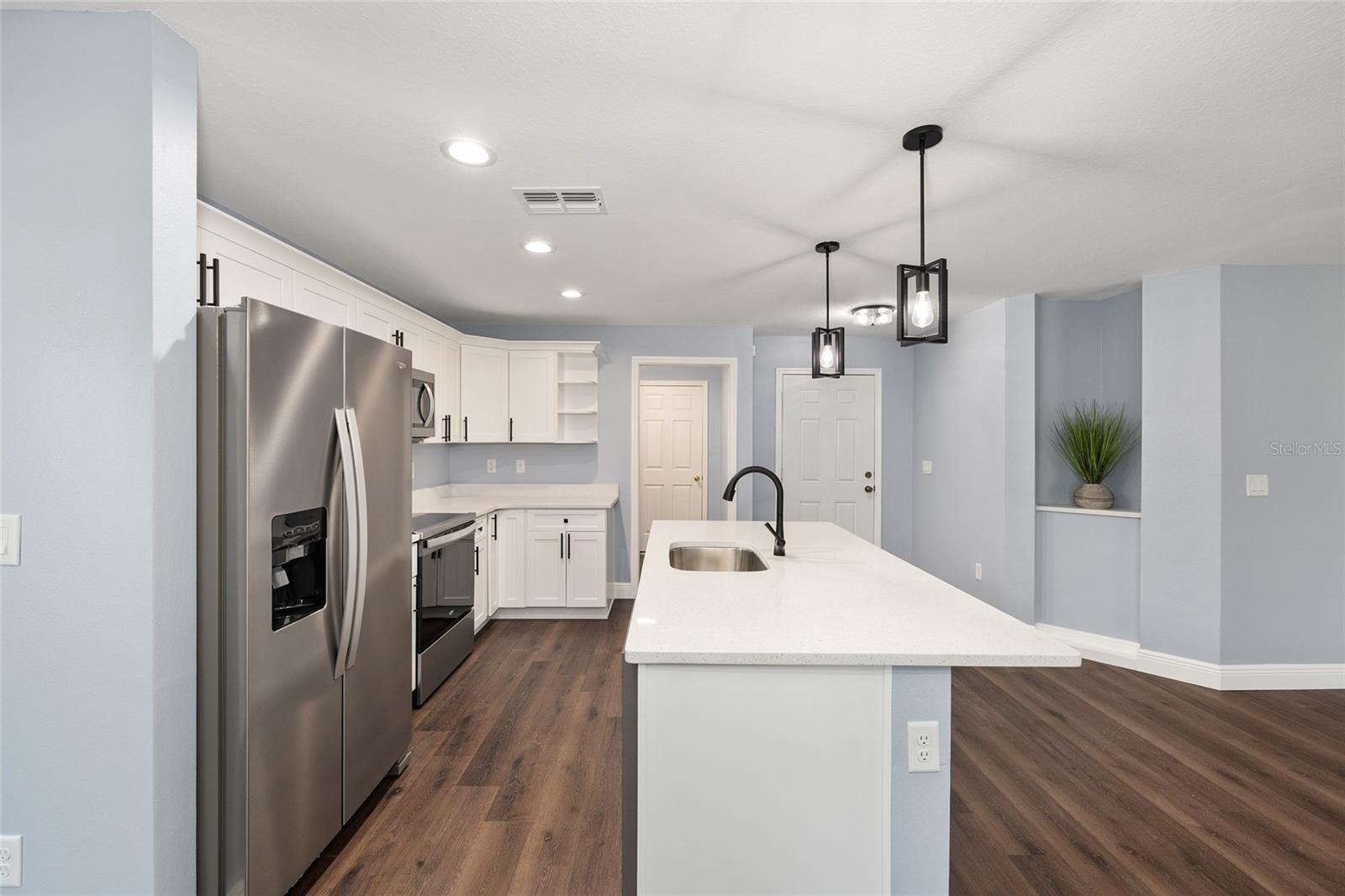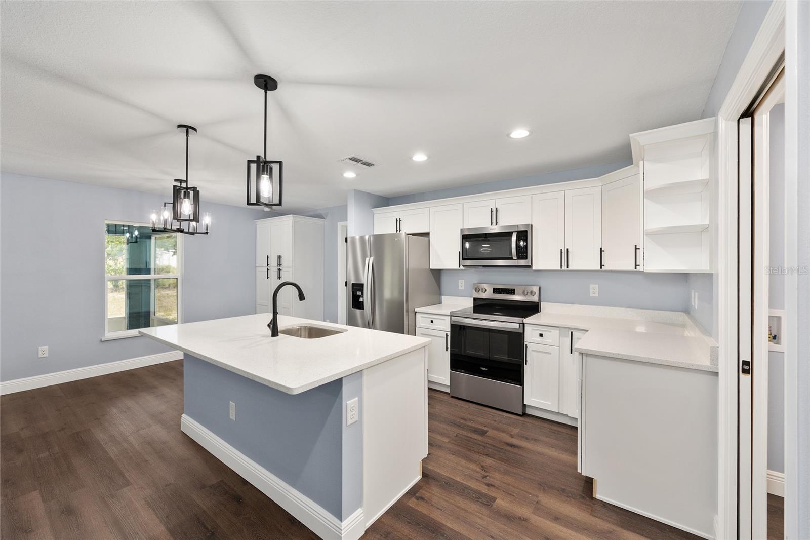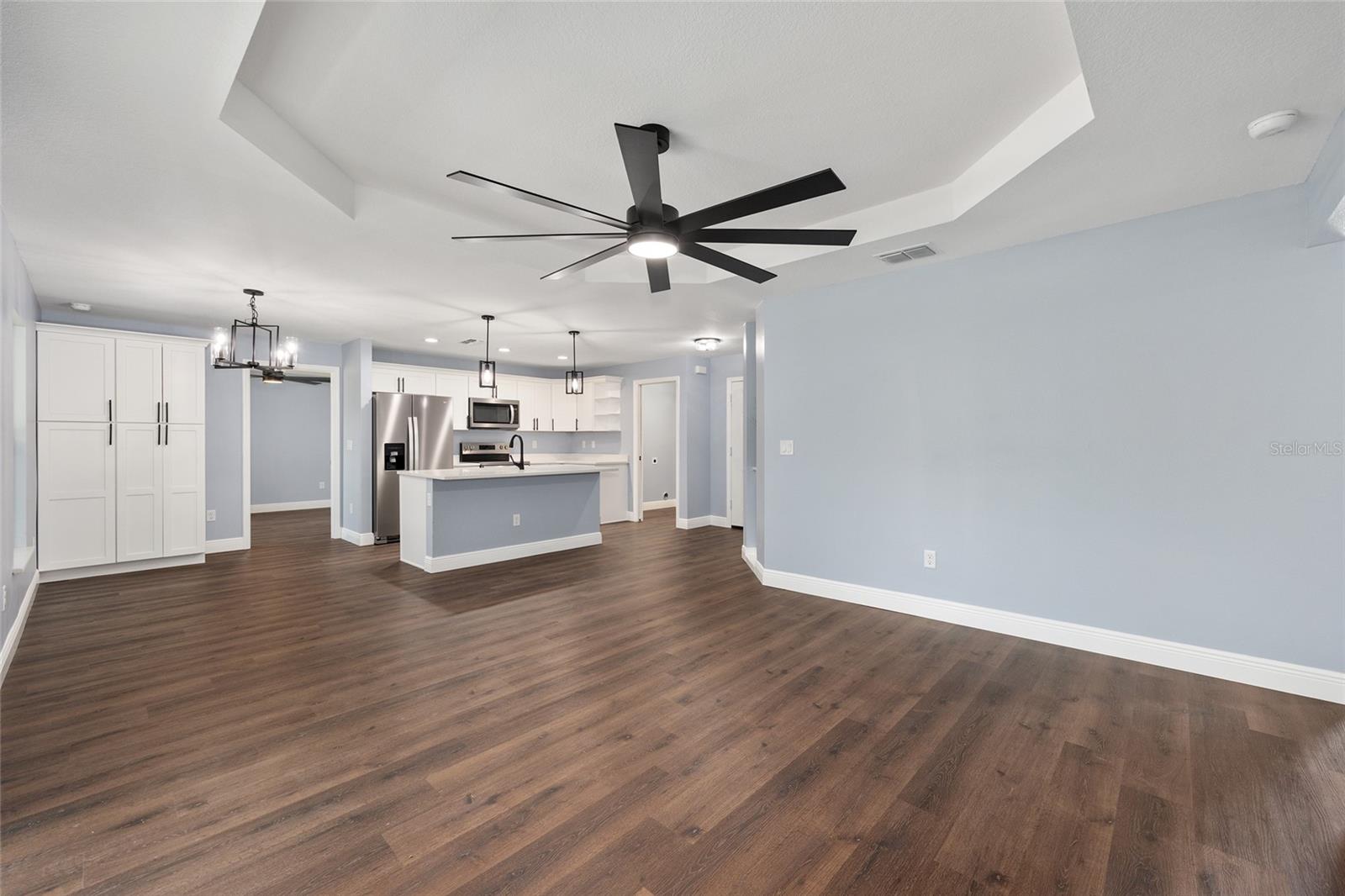 Be the first to live in this beautifully crafted, brand-new home offering the perfect blend of modern style and comfort. Located on a PRIVATE LOT with NO HOA restrictions, this 4-bedroom, 2-bathroom property features an open-concept layout ideal for both relaxing and entertaining. Step inside to find luxury vinyl plank (LVP) flooring throughout, complemented by neutral paint tones that create a warm, inviting atmosphere. The kitchen boasts white soft-closed cabinets, brand-new stainless-steel appliances, a large-scale pantry cabinet and a spacious island that flows seamlessly into the living and dining areas—all under a stylish tray ceiling. Retreat to the primary suite with its tiled walk-in shower and generous closet space. Both bathrooms feature tile to the ceiling-shower and bathtub-with modern finishes. The 3 guest bedrooms are on the left side of the house, equipped with lighted fans and sizable closets. Enjoy the outdoors year-round in the enclosed, screened lanai, perfect for quiet mornings or evening gatherings. Additional highlights include a 2-car garage with epoxy flooring, a smart garage door opener, and an in-house laundry room. This move-in-ready home on a PRIVATE LOT offers low-maintenance living with top-tier features—without the restrictions of an HOA and is the perfect place to raise your family.