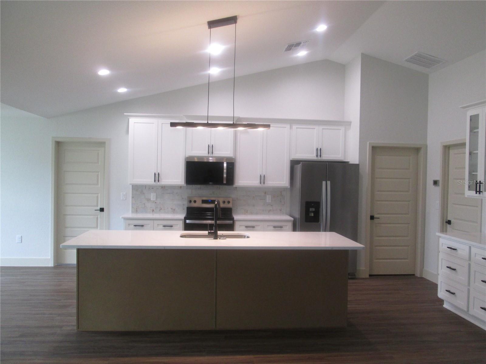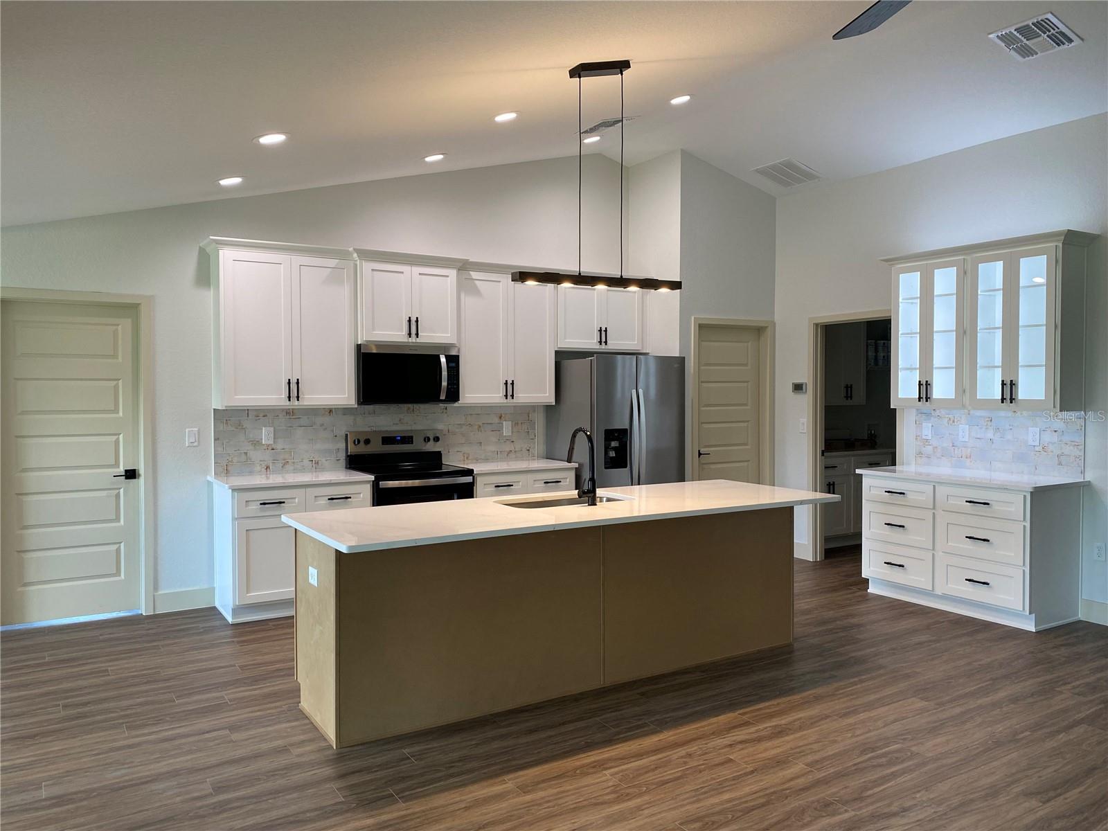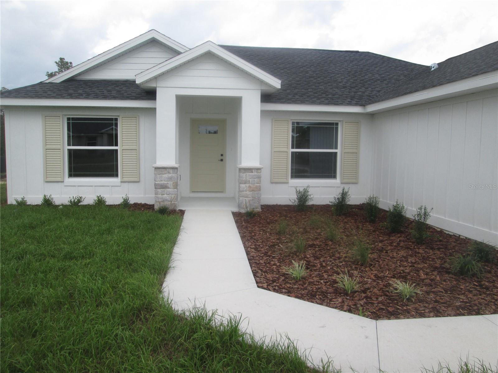 Under Construction. Brand new 3 bedroom 2 bath home with a separate den that could be a 4th bedroom setup. Home features open floorplan with a large great room with cathedral ceilings and triple slider going out to the lanai. Kitchen has solid wood cabinets with soft close hinges and doors, solid surface countertops built in microwave, stainless appliances undermount sink upgraded lighting, tile backsplash and additional pantry. Master suite features trey ceiling walk in closet separate tub and shower set up, private water closet, solid wood cabinet solid surface top upgraded fixtures and full tile. Other features include two garage door openers, inwall pest control system, Trane air conditioner, structural warranty, builders warranty low e glass window and more.