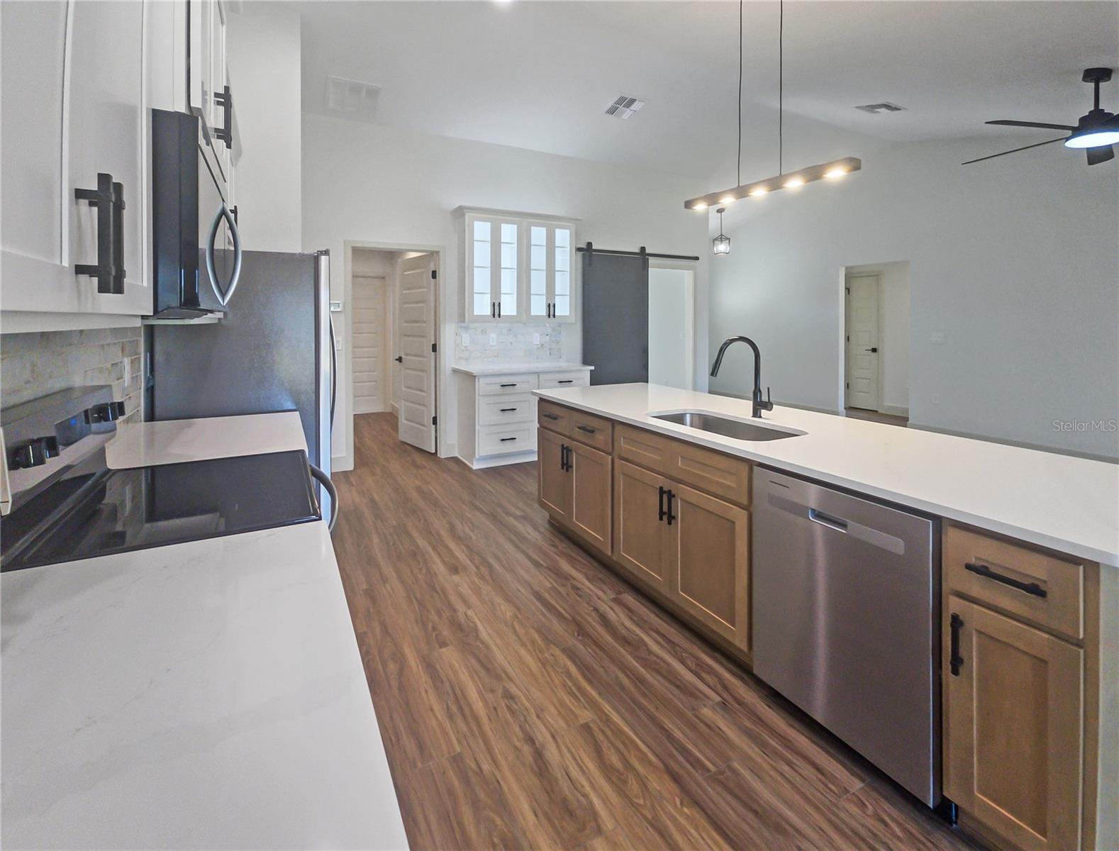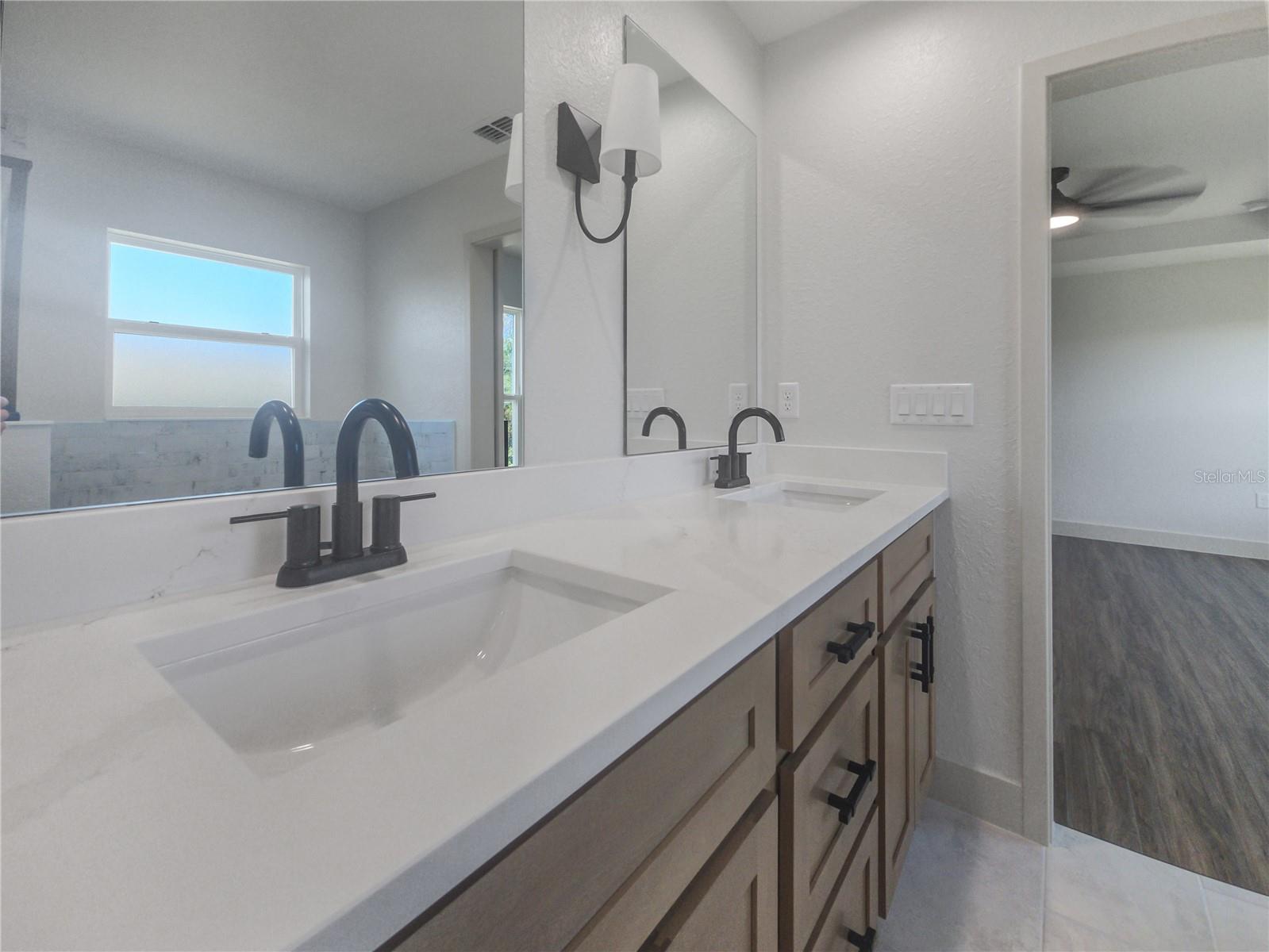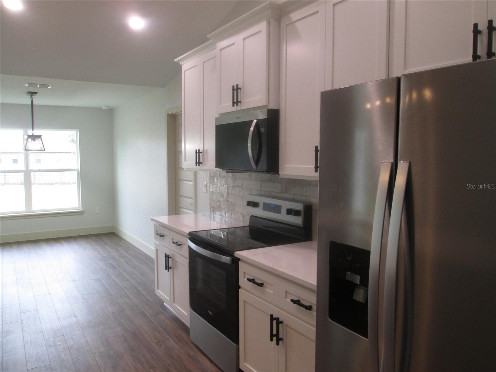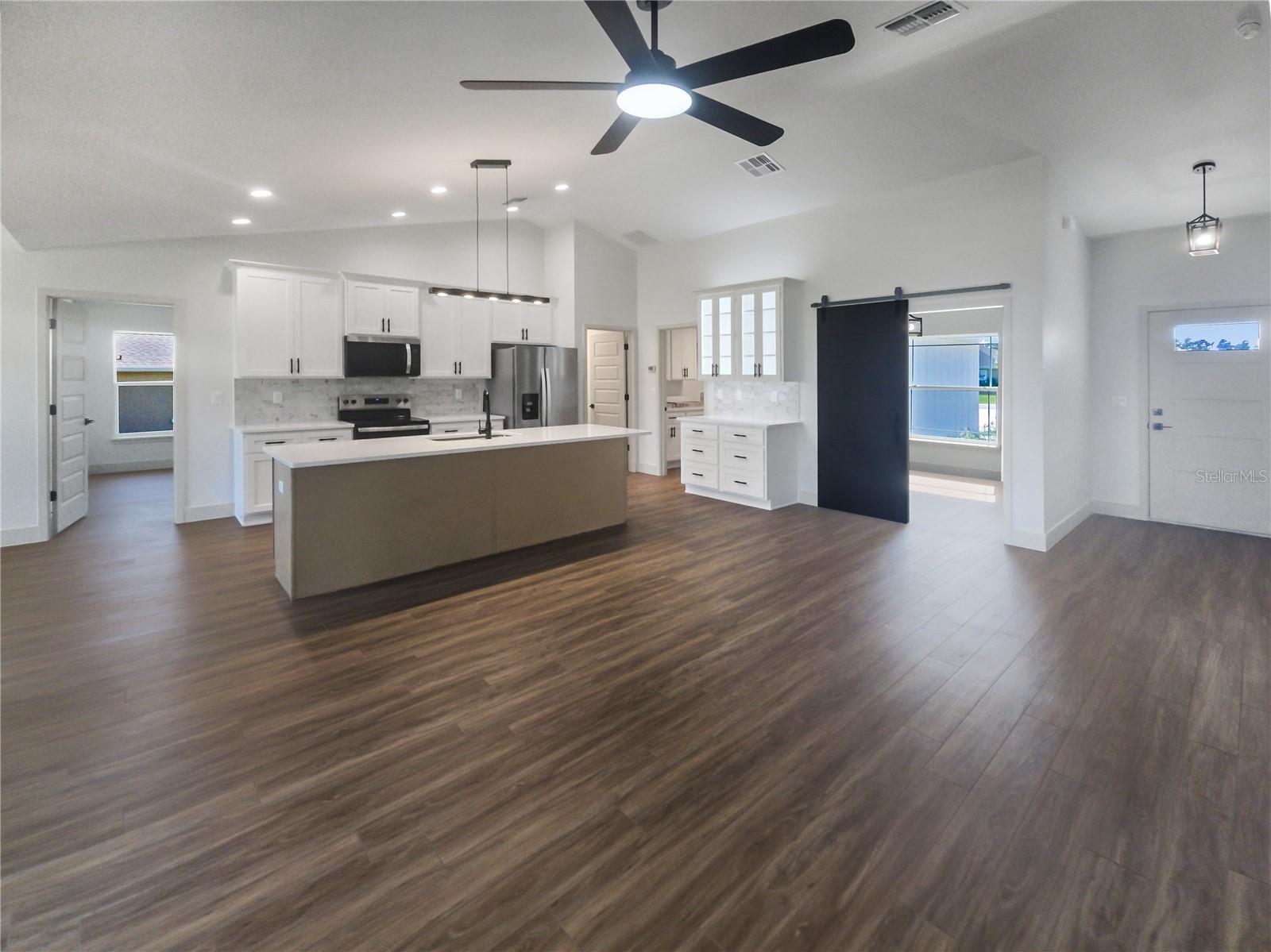 Under Construction. Brand new 3 bedroom 2 bath home with a separate den that could be a 4th bedroom setup. Home features open floorplan with a large great room with cathedral ceilings and triple slider going out to the lanai. Kitchen has solid wood cabinets with soft close hinges and doors, solid surface countertops built in microwave, stainless appliances undermount sink upgraded lighting, tile backsplash and additional pantry. Master suite features trey ceiling walk in closet separate tub and shower set up, private water closet, solid wood cabinet solid surface top upgraded fixtures and full tile. Other features include two garage door openers, inwall pest control system, Trane air conditioner, structural warranty, builders warranty low e glass window and more.