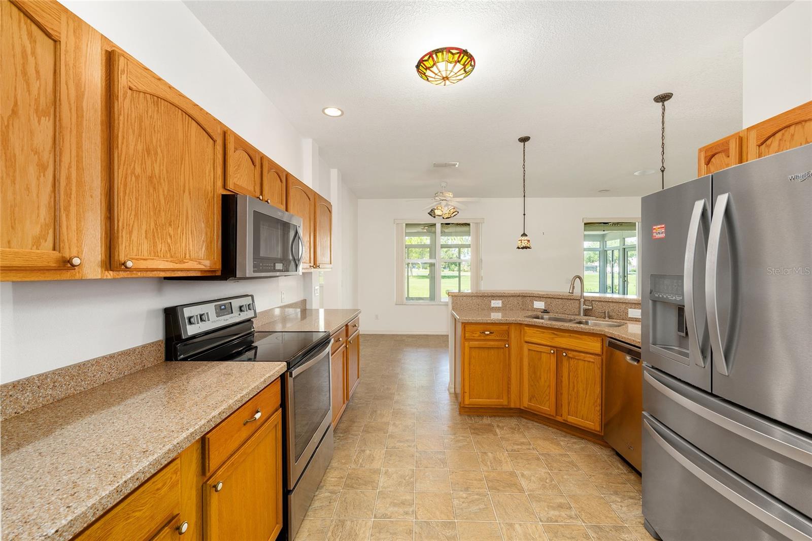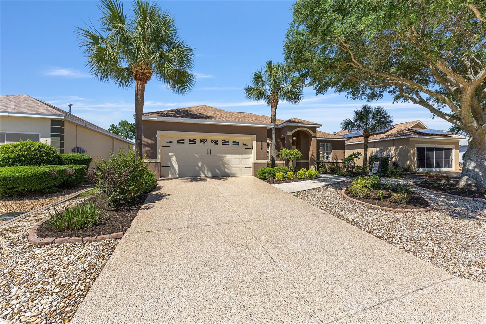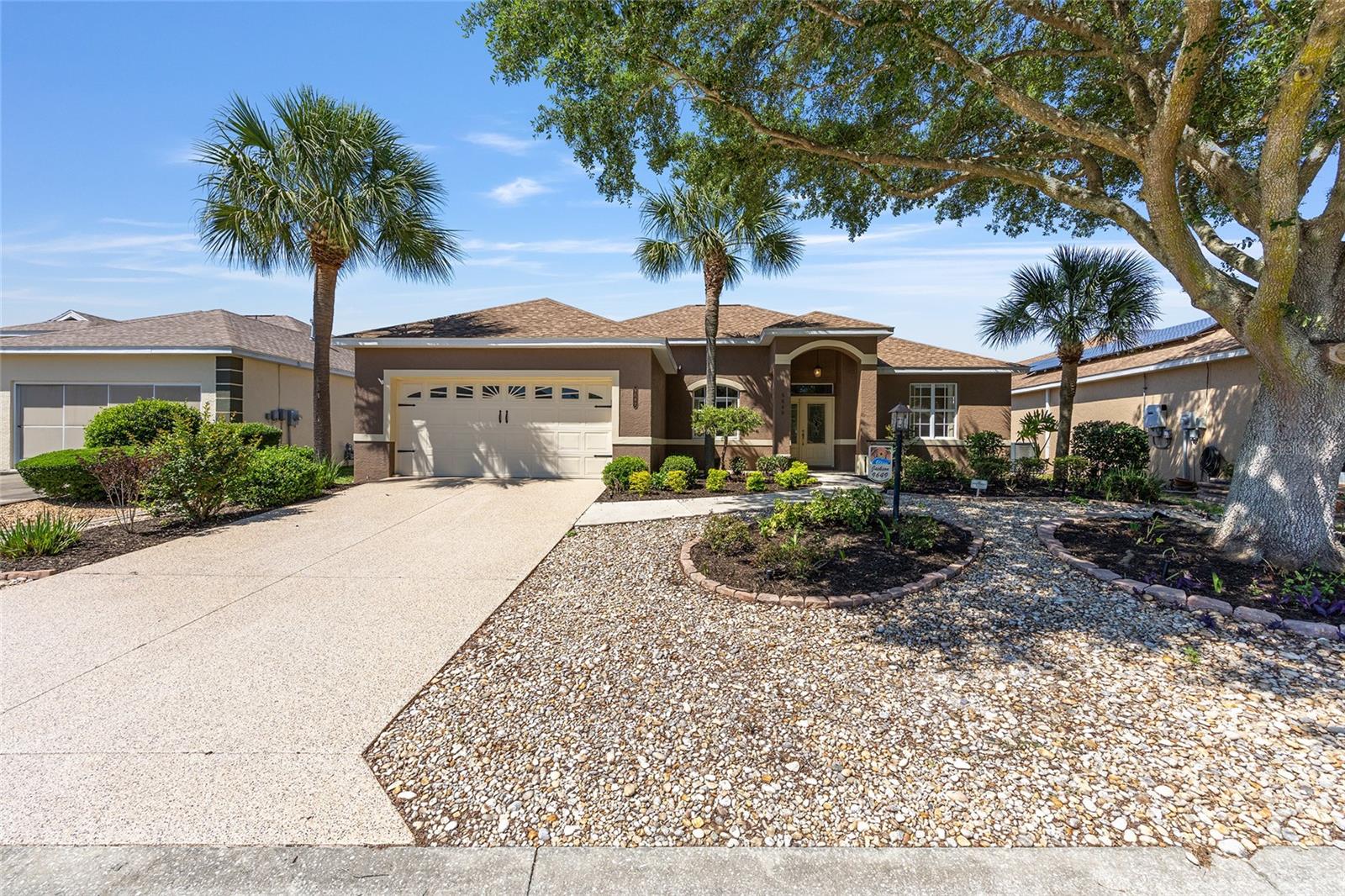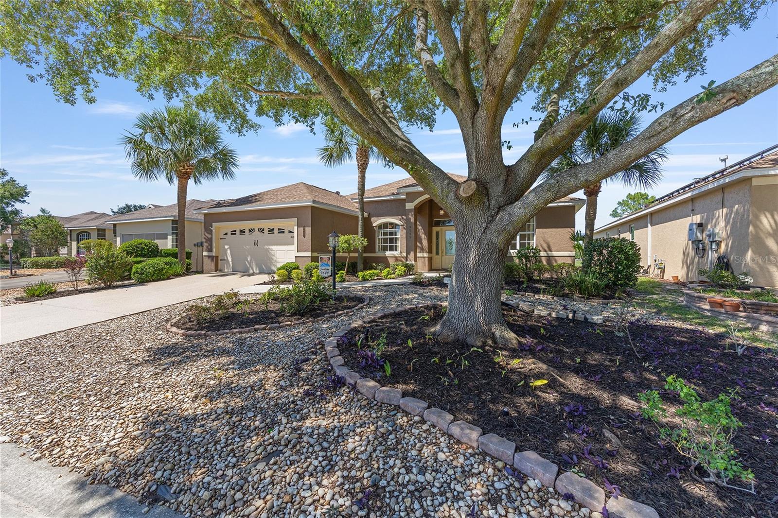 Beautiful one-owner home in the desirable On Top of the World community! This well-maintained home features a 2022 roof, a 2018 Lennox 15.5 SEER 4-ton A/C system, and a 2021 whole-house generator for peace of mind. Inside, you'll find an open and inviting floor plan with granite counters, stainless steel appliances, and a layout that includes a formal dining room, den, great room, breakfast nook, and an inside laundry room. Washer and dryer are included! The spacious primary suite offers two large walk-in closets, a garden tub, walk-in shower, and a private toilet room. Enjoy year-round comfort in the glassed-in lanai, or relax outdoors on two separate patios surrounded by beautiful mature landscaping. Additional highlights include an optional garage screen door for added comfort and flexibility. This home is a perfect blend of function and Florida lifestyle and has NO CDD—come see all this home has!