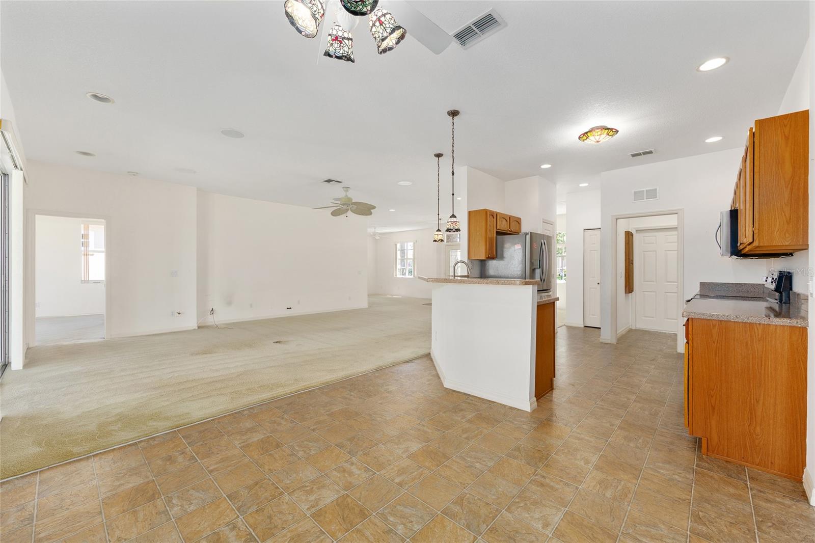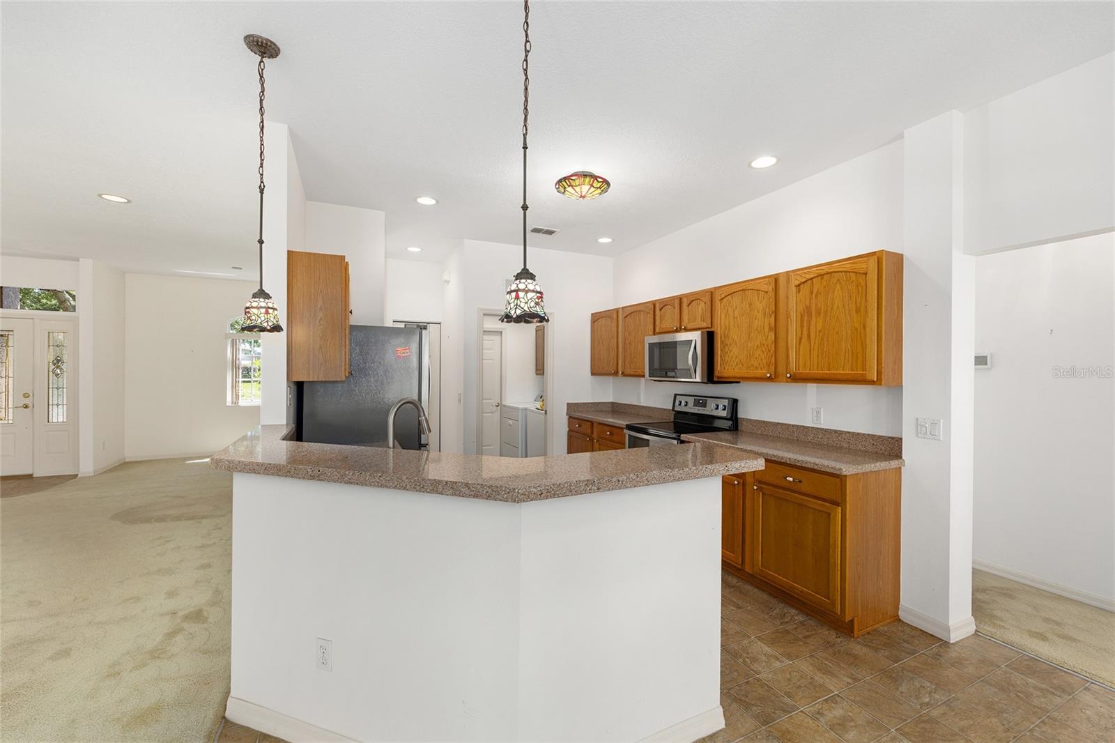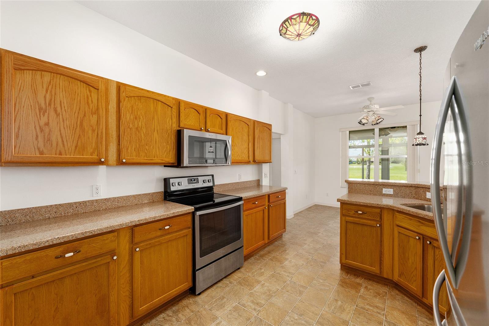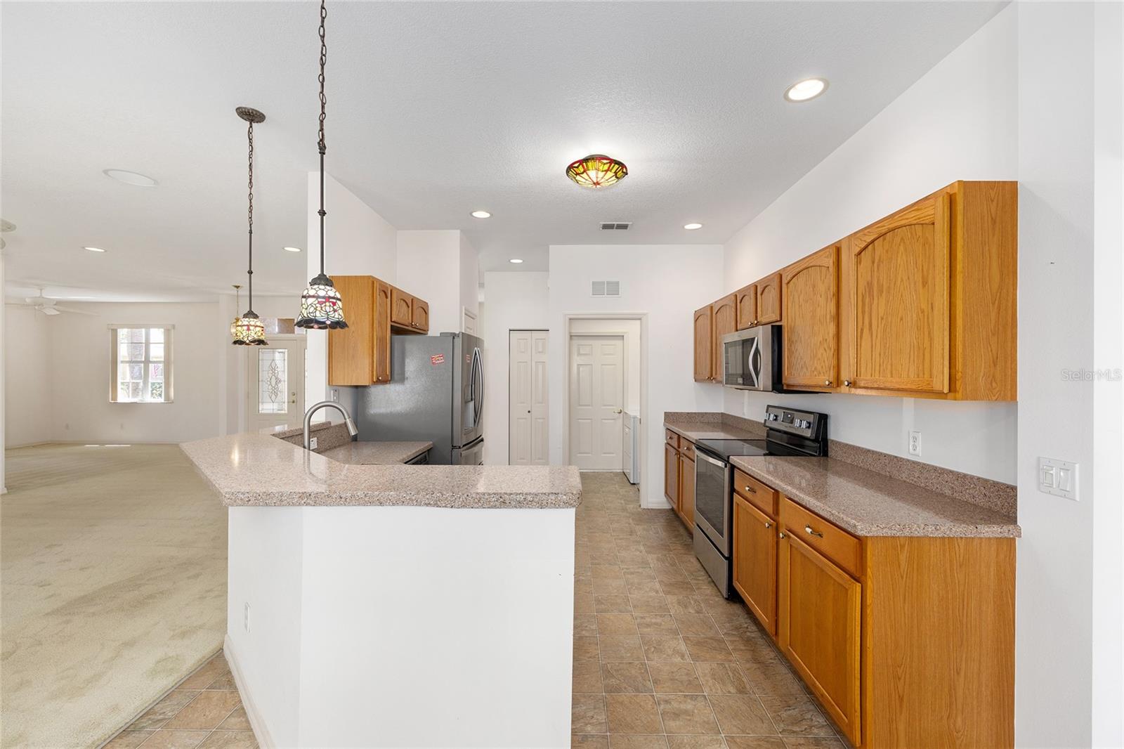 Beautiful one-owner home in the desirable On Top of the World community! This well-maintained home features a 2022 roof, a 2018 Lennox 15.5 SEER 4-ton A/C system, and a 2021 whole-house generator for peace of mind. Inside, you'll find an open and inviting floor plan with granite counters, stainless steel appliances, and a layout that includes a formal dining room, den, great room, breakfast nook, and an inside laundry room. Washer and dryer are included! The spacious primary suite offers two large walk-in closets, a garden tub, walk-in shower, and a private toilet room. Enjoy year-round comfort in the glassed-in lanai, or relax outdoors on two separate patios surrounded by beautiful mature landscaping. Additional highlights include an optional garage screen door for added comfort and flexibility. This home is a perfect blend of function and Florida lifestyle and has NO CDD—come see all this home has!