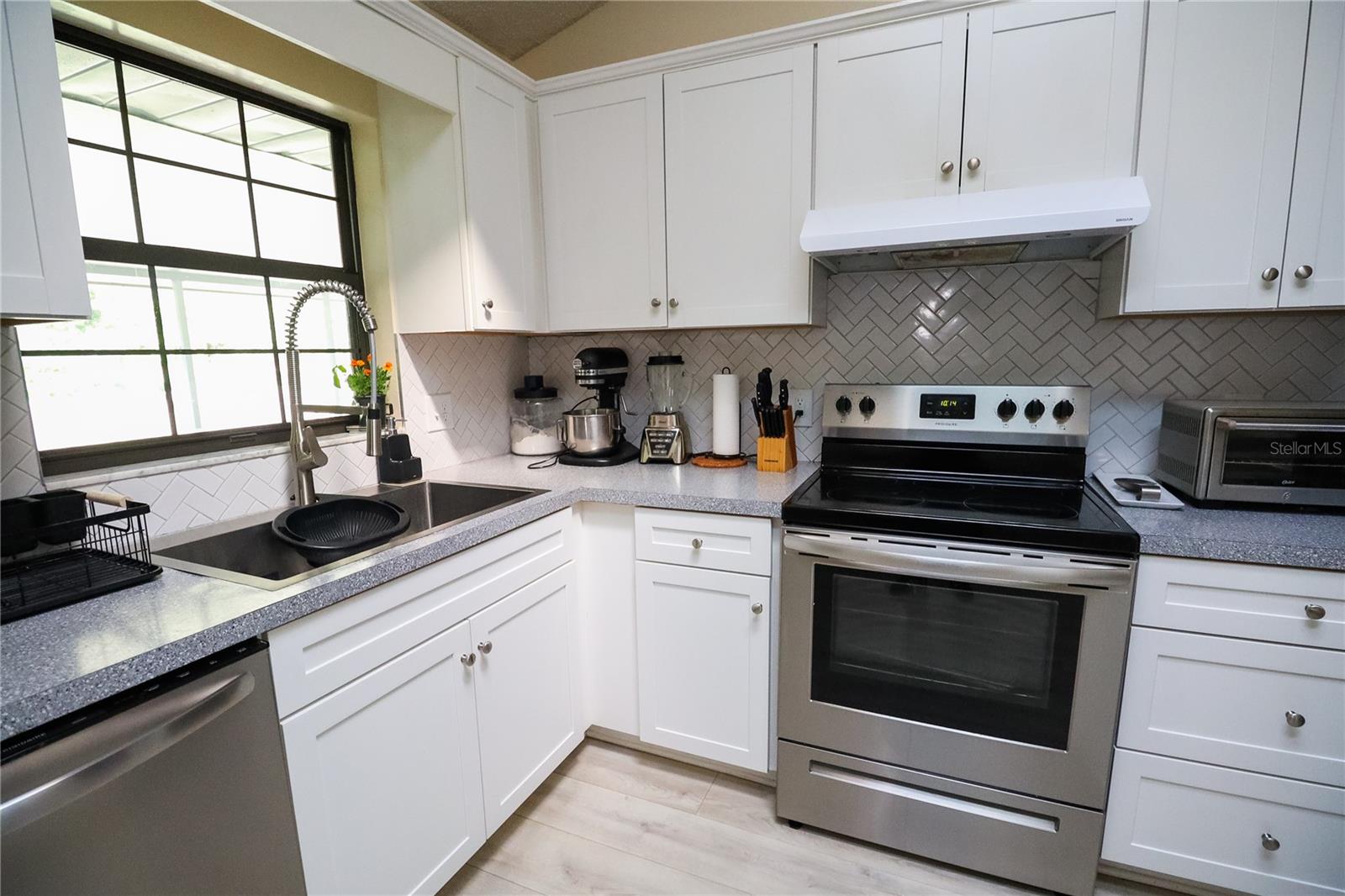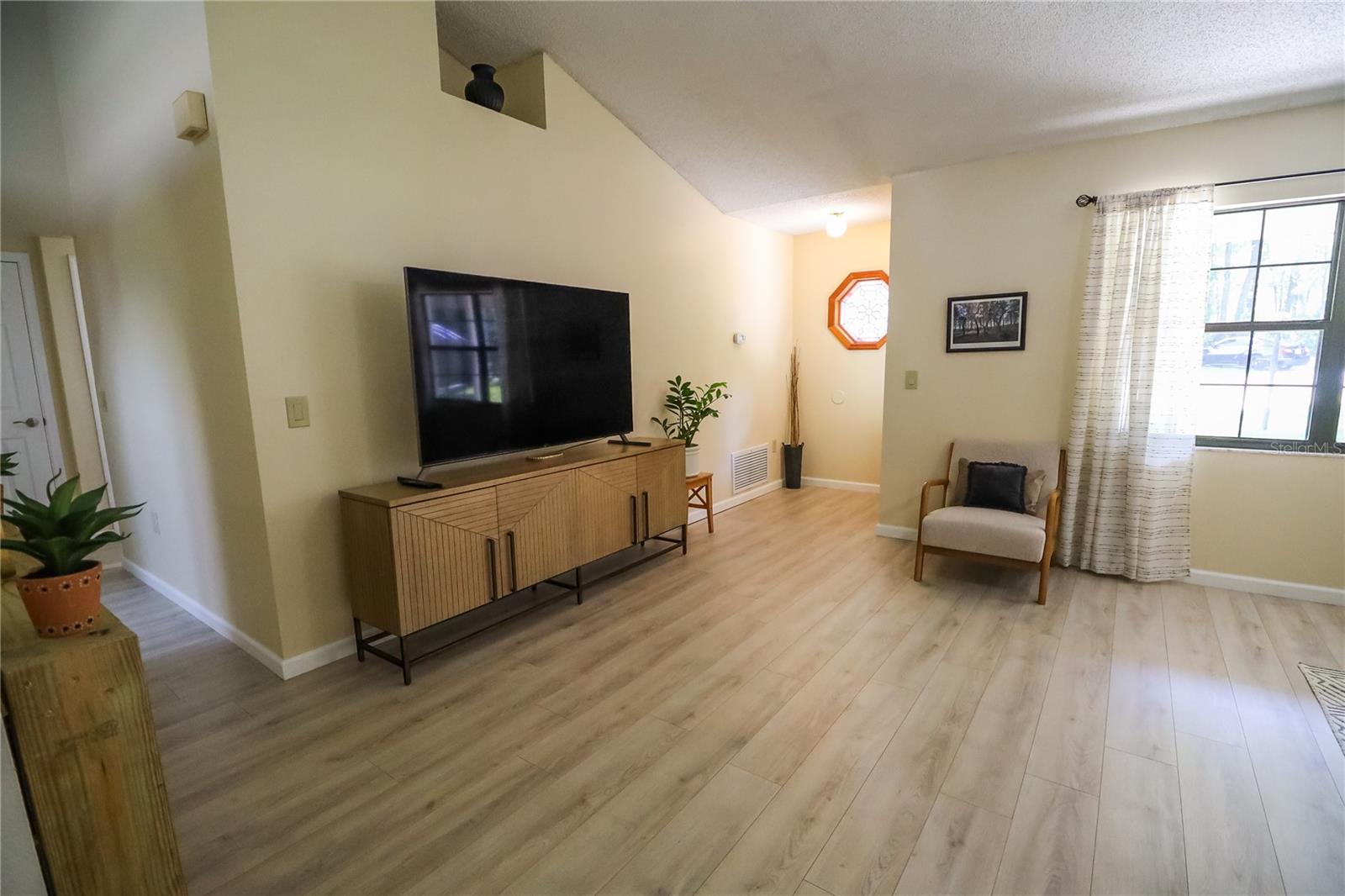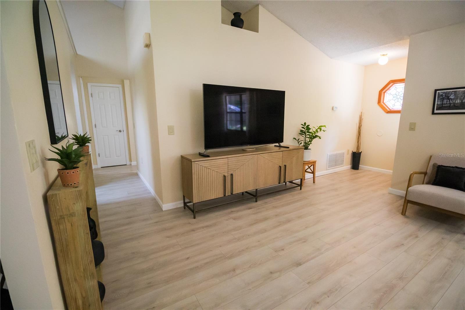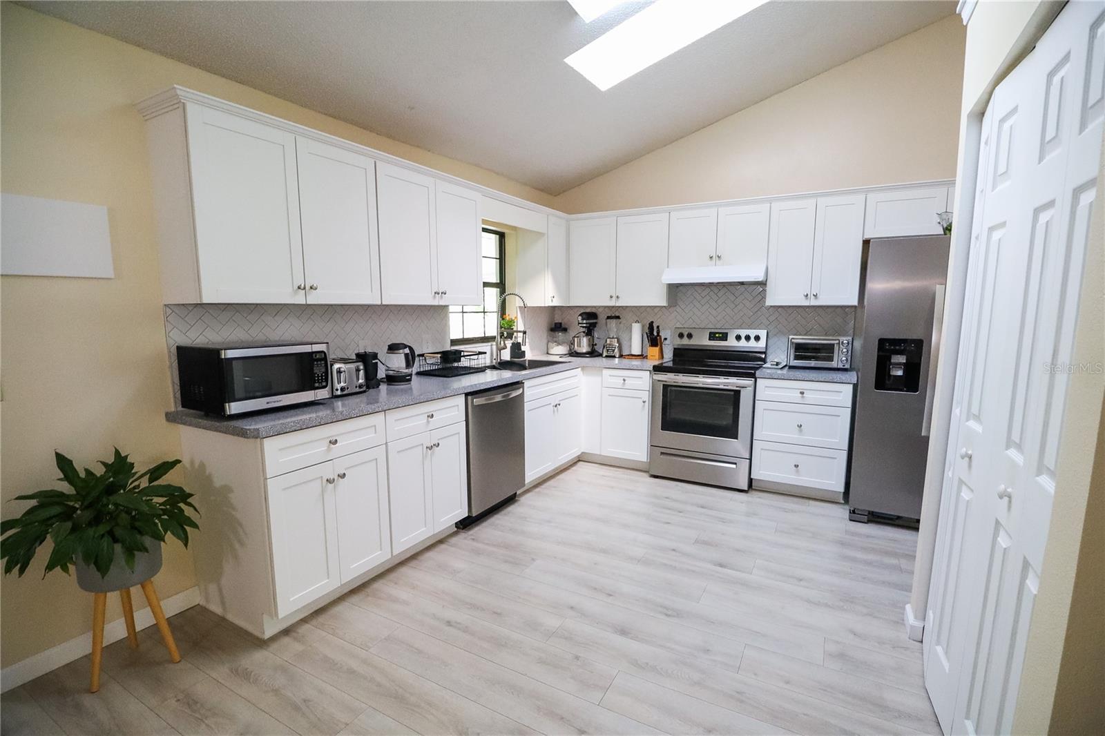 Welcome to this beautifully maintained 3-bedroom, 2-bathroom home nestled in the desirable Shadow Woods community—with no HOA! Offering 1,812 sq. ft. of well-designed living space on a spacious 0.33-acre lot, this home features a desirable split floor plan, high ceilings, and durable vinyl flooring throughout. Enjoy both formal and casual living with a dining room, living room, and family room, plus the convenience of an inside laundry area. The master suite boasts an en suite bathroom and a walk-in closet, while the kitchen is equipped with sleek stainless steel appliances & double pantry. Two additional guest rooms and a guest bath provide ample space for family and visitors. Outdoor living is just as inviting with a screened lanai, covered front porch, fenced yard, lush landscaping, and a sprinkler system. Additional highlights include a 2-car garage, rain gutters, and a half-circle driveway offering extra parking and curb appeal. Don’t miss this gem in a quiet, established neighborhood. Washer & Dryer do not convey.