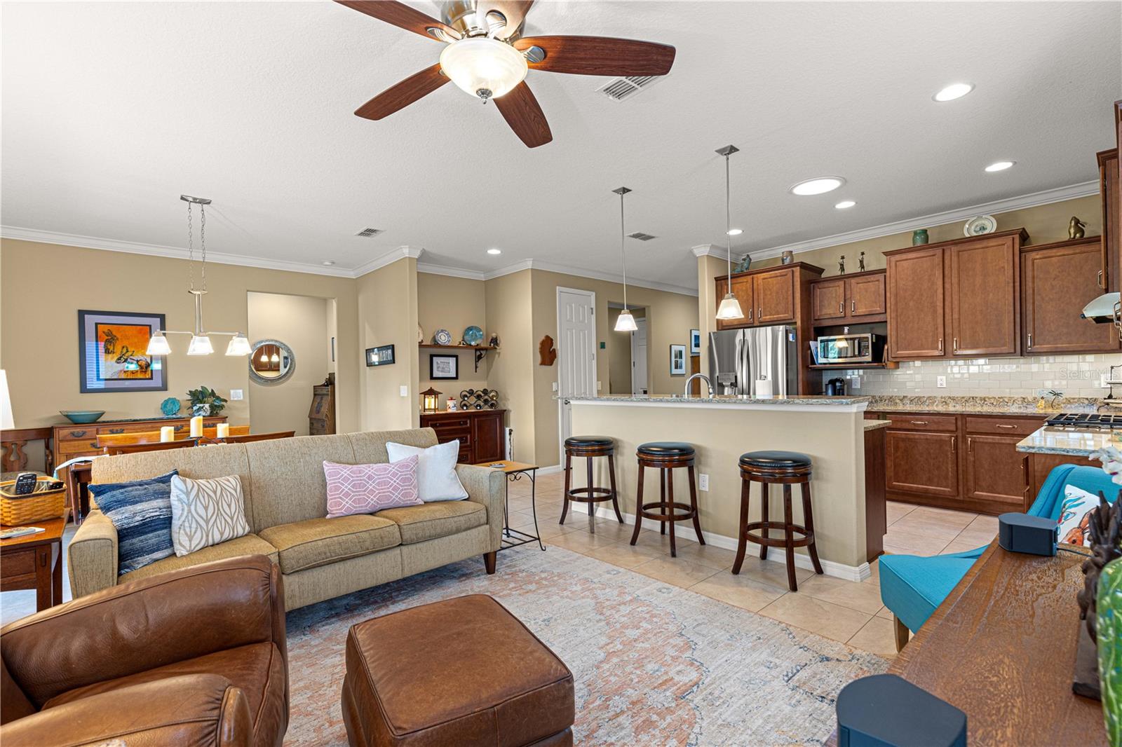 WHY WAIT FOR NEW CONSTRUCTION WHEN THIS STUNNING HOME IS AVAILAVBLE W/GREEN SPACE IN BACK! Stunning Saxony Model Single-Family Home in the Windsor West Neighborhood of On Top of the World, a Premiere 55+ Gated Golf Community in SW Ocala FL! This home boasts 2 bedrooms, Flex Room, 2 baths, Florida Room, Covered Patio, 2-Car Garage (w/2 ft extension), WHOLE HOUSE NATURAL GAS GENERATOR, Core Filled Block & additional R19 insulation over the Garage & FL Room, & MORE UPGRADES THROUGHOUT! Notice the paver front porch, custom stacked stone landscaping, stacked stone house finish, and UPGRADED tall storm & entrance doors! Step into the foyer and look back through the home to the GREEN SPACE! Notice the Crown Molding and solid surface floors throughout! Left of foyer is the spacious guest bedroom and guest/hall bath. The bath has been upgraded with a step-in shower w/custom tile work. True Split Bedroom Plan! French Doors welcome you to the Flex Room. Moving into the OPEN CONCEPT Kitchen-Great Room-Dining Space notice the upgraded cabinetry, large pantry, upgraded lighting, solar tube for extra light, quartz counters, under cabinet lighting – perfect for entertaining! The primary bedroom is in the back right of the home for privacy! The walk-in closet includes beautiful built-ins! The primary bath has a 2-sink vanity, custom tiled step-in shower, comfort height toilet, and linen closet. The Florida Room is nicely finished with incredible views. Step outside to the 10 X 25 covered patio with more VIEWS! The laundry room and mud room to the garage have been upgraded with LOTS of custom cabinetry! The laundry room is large enough to also be used as a craft room (or other) w/counter space and sink! Water heater has a circulator pump for instant hot water! Natural Gas Appliances and Generator! Freshly Painted Exterior! This is a MUST-SEE property! The monthly HOA fee includes Basic Internet, roof repair, exterior painting every seven years, exterior maintenance and insurance, landscaping, trash & recycling, 24/7 monitored gates and all the amenities that OTOW has to offer; three pools (2 outside & 1 inside & another under construction), two state of the art fitness centers, pickleball, billiards, archery range, corn hole, bocce ball, tennis, shuffleboard, horse shoes, remote control flying field and race cars, 175+ clubs, woodworking shop (extra fee), library, and much, much more! A golf cart community with access to three shopping centers. Centrally located 20 minutes from the World Equestrian Center, easy drive to 4 cruise ports and/or airports, and close proximity to entertainment complexes in Orlando. *** GOLF CART INCLUDED WITH ACCEPTABLE OFFER!