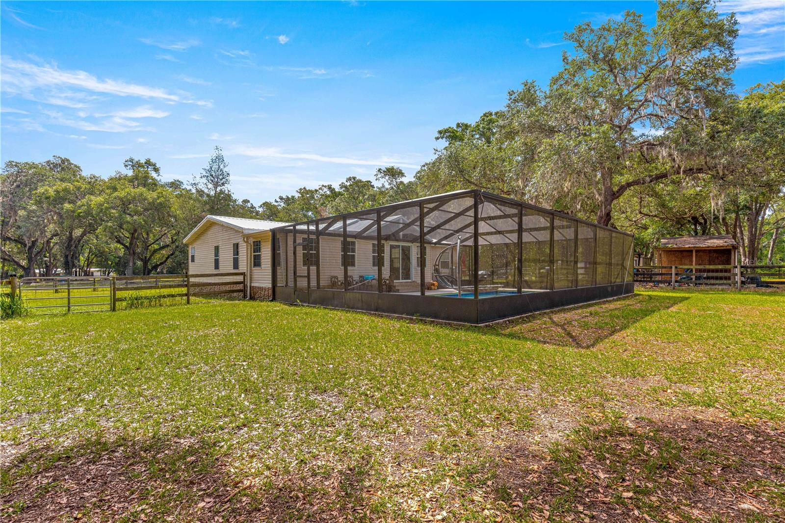 Enjoy Ocala equestrian living at its finest! This 6.4-acre property offers a 5-stall center aisle barn, 2 breezeways, tack room, 5 paddocks (3-board fence), and a screened inground pool. Exceptionally convenient, just 5.8 miles from the World Equestrian Center.