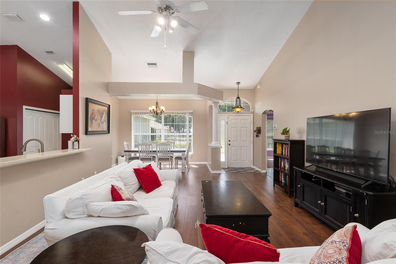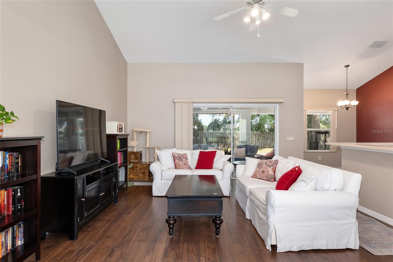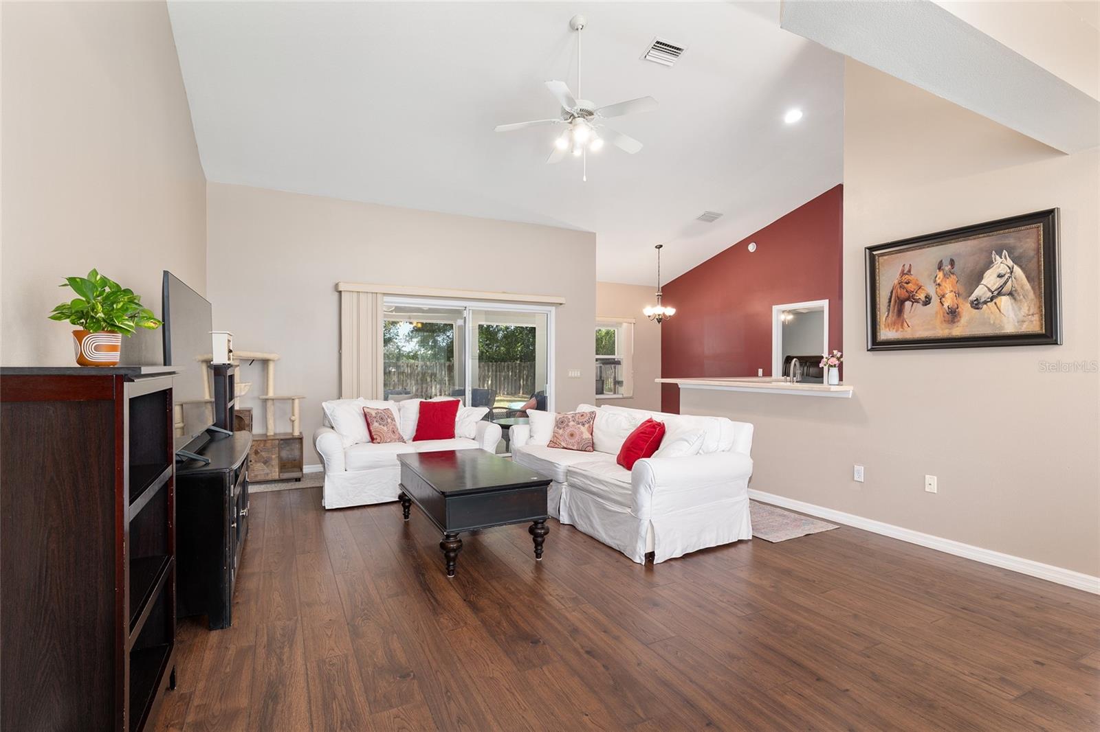 Move-In Ready Solar-Powered Home in Sought-After Harvest Meadow Welcome to this solar-powered 3-bedroom, 2-bath home nestled in the highly desirable community of Harvest Meadow. From the moment you enter, the soaring ceilings and open-concept living space create a bright and welcoming atmosphere. The split-bedroom floor plan offers privacy and comfort, making it ideal for families. This well-maintained home features updated flooring throughout and a newer roof in 2020 and AC in 2022, providing peace of mind and easy upkeep. The spacious kitchen and dining area flow seamlessly into the family room—perfect for everyday living and entertaining. Step outside to enjoy the fully fenced backyard with a screened-in porch, offering a safe and inviting space for your family and pets to play. Located just minutes from shopping, schools (including the local high school), and the public library, this home is as convenient as it is charming. Harvest Meadow is known for its family-friendly environment, with plenty of neighborhood friends to grow up with. Don't miss this opportunity—schedule your showing today!