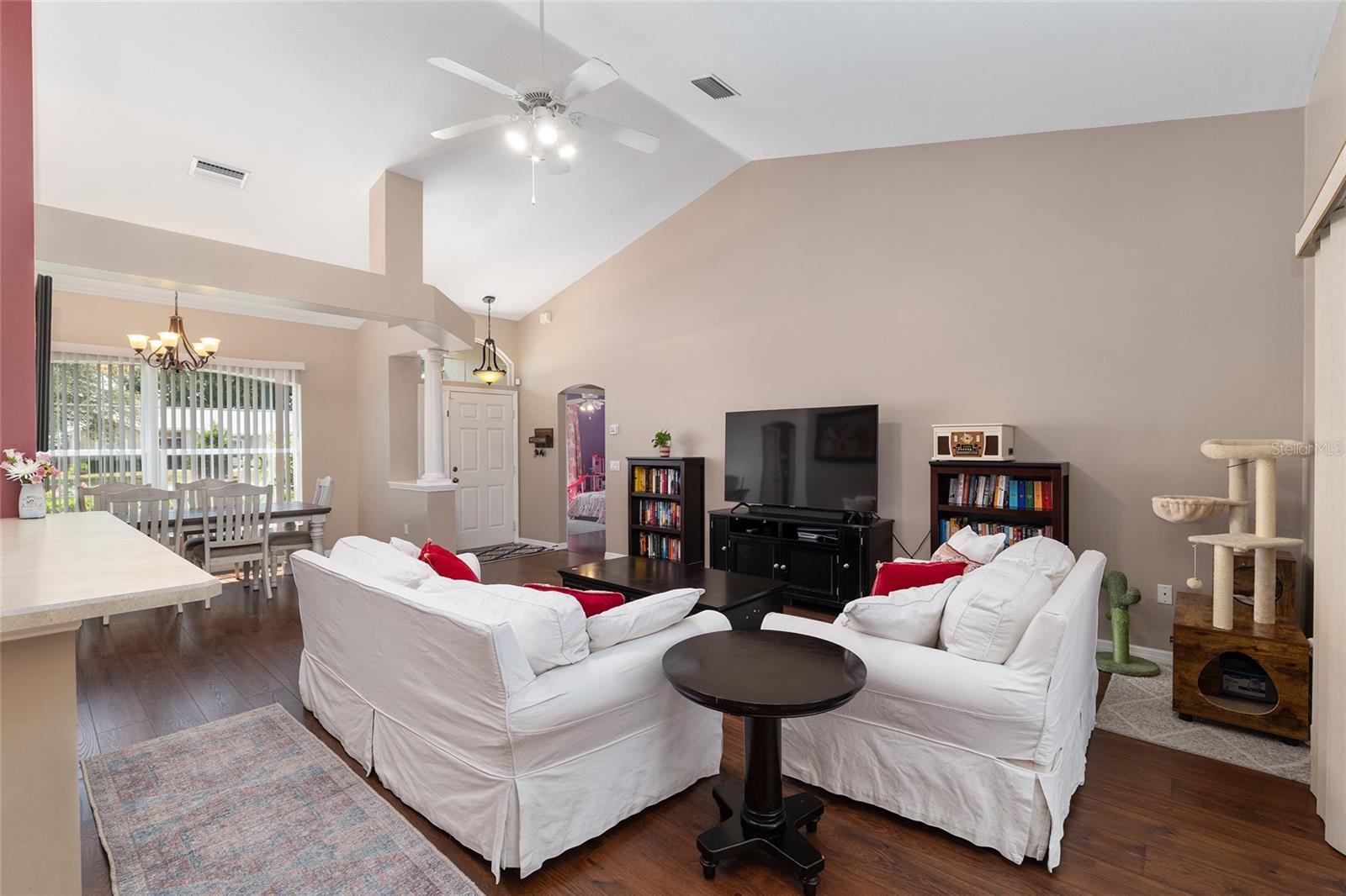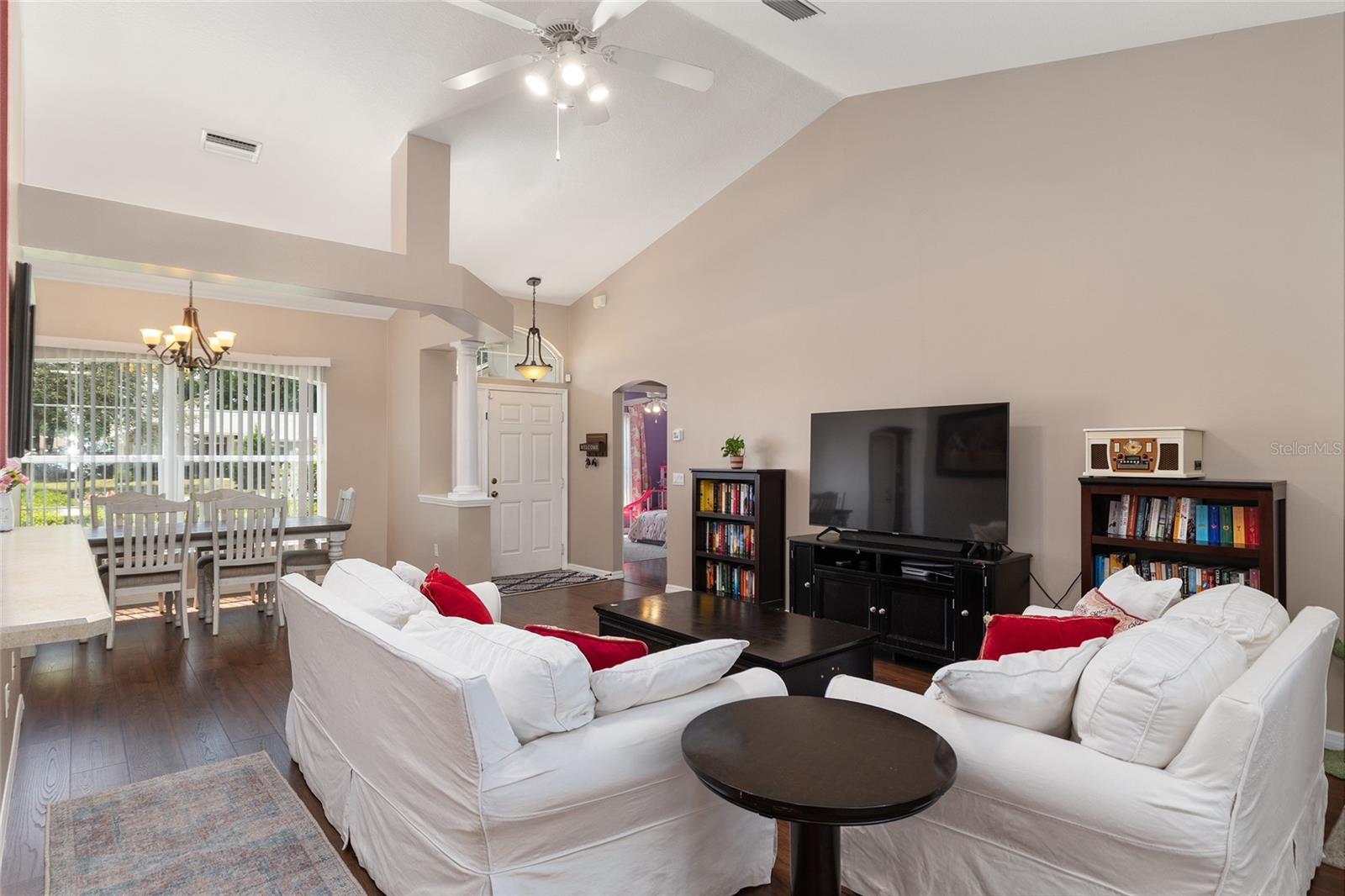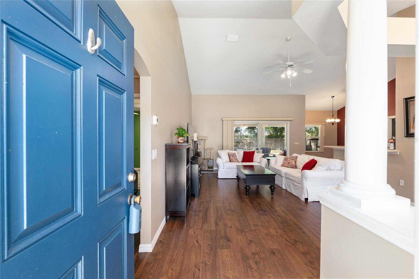Move-In Ready Solar-Powered Home in Sought-After Harvest Meadow Welcome to this solar-powered 3-bedroom, 2-bath home nestled in the highly desirable community of Harvest Meadow. From the moment you enter, the soaring ceilings and open-concept living space create a bright and welcoming atmosphere. The split-bedroom floor plan offers privacy and comfort, making it ideal for families. This well-maintained home features updated flooring throughout and a newer roof in 2020 and AC in 2022, providing peace of mind and easy upkeep. The spacious kitchen and dining area flow seamlessly into the family room—perfect for everyday living and entertaining. Step outside to enjoy the fully fenced backyard with a screened-in porch, offering a safe and inviting space for your family and pets to play. Located just minutes from shopping, schools (including the local high school), and the public library, this home is as convenient as it is charming. Harvest Meadow is known for its family-friendly environment, with plenty of neighborhood friends to grow up with. Don't miss this opportunity—schedule your showing today!