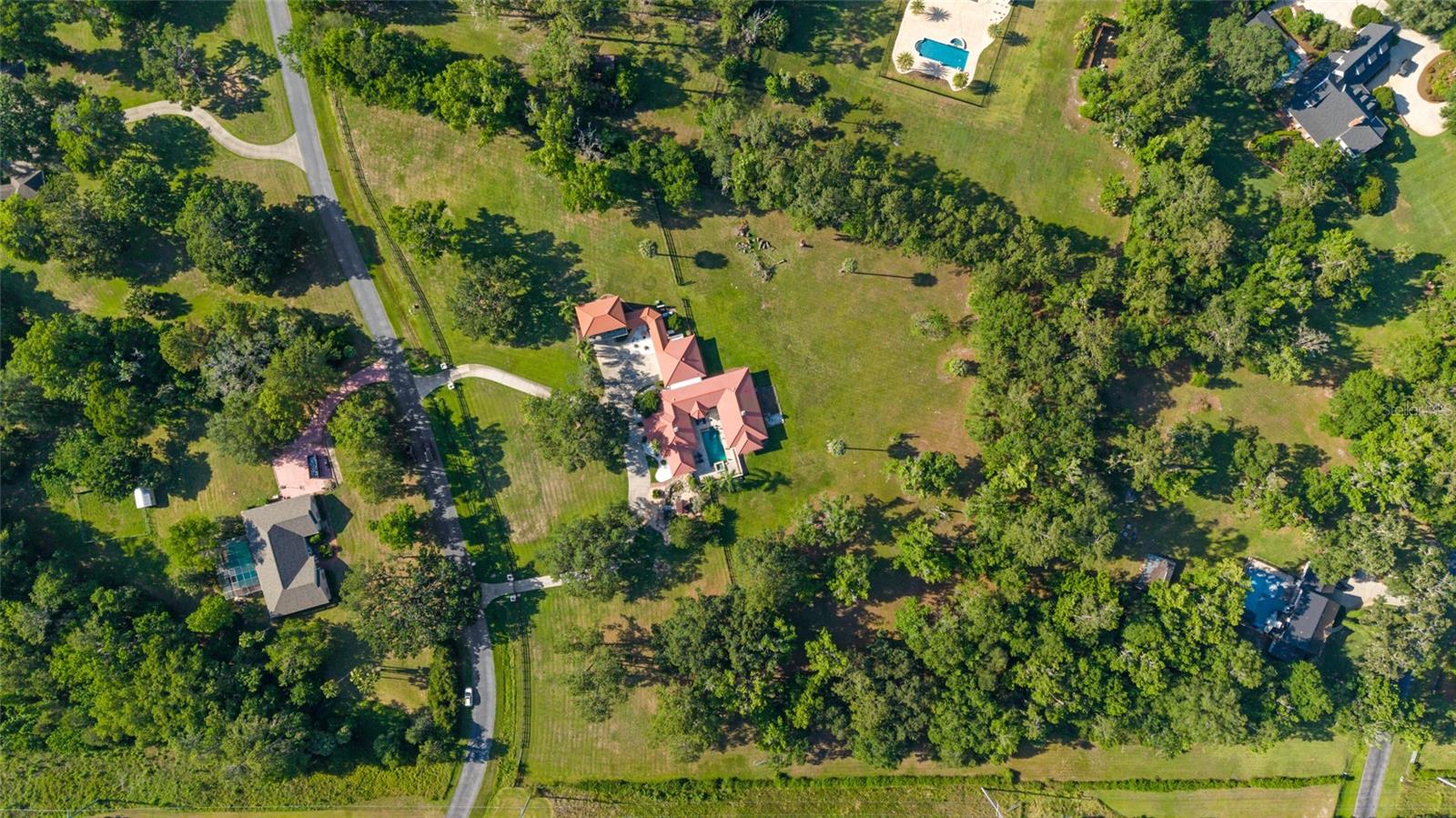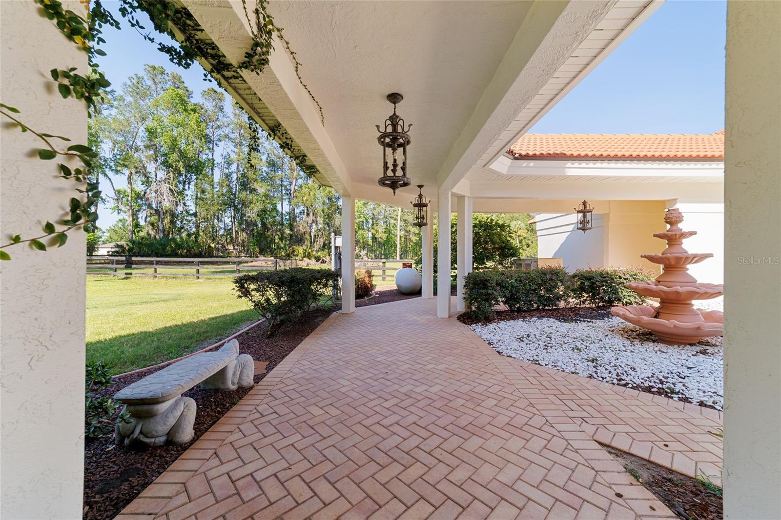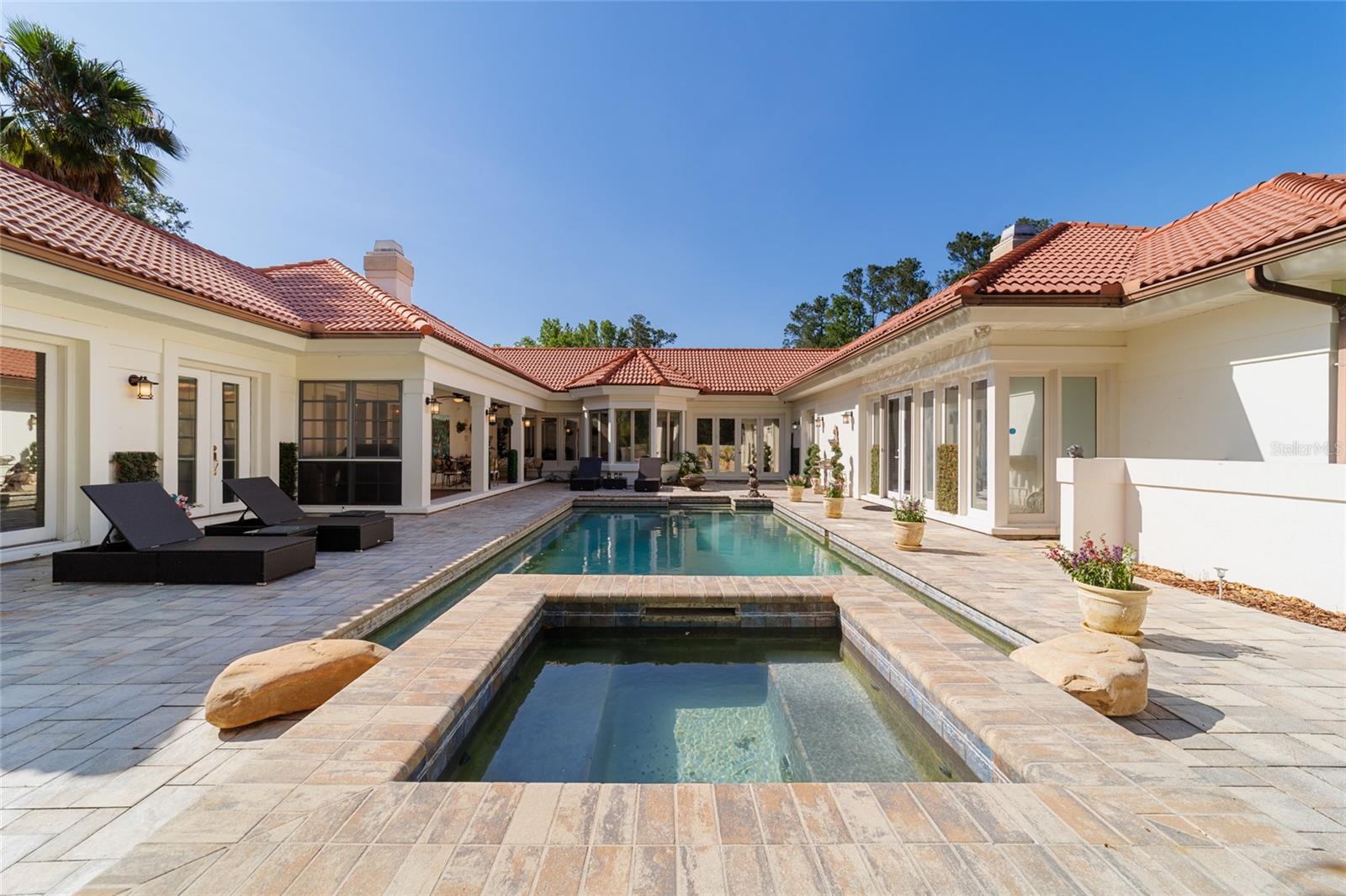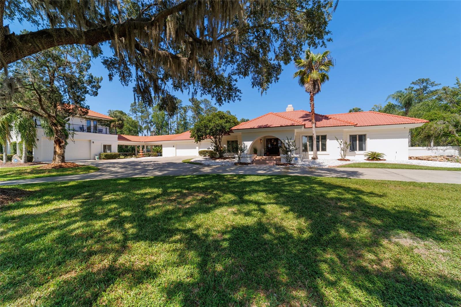 Seller to Install Brand New Roof with Acceptable Offer – Peace of Mind Included! Mediterranean Masterpiece on Nearly 6 Private Acres & almost 5k living square footage in Ocala’s Prestigious Summit II. Step through your personal private viking 2023 gate as your entrance with into a palm-lined drive. Designed in a graceful U-shape around a courtyard pool and spa, the estate blends resort-style living with elegant Old-World craftsmanship—arched columns, French doors, and PeachTree wood-encased windows flood every room with natural light and seamless indoor-outdoor flow. Inside the main residence, featuring 4 bedrooms 3 full bathrooms and powder bathroom- admiring these soaring ceilings multiple living and entertaining areas anchored by a chef’s kitchen with stone countertops, 2024 Bosch Fridge & kitchen aid, expansive island, and full entertaining bar, while a fireside library crowned with custom cabinetry offers the perfect flex space or 5th bedroom. The lavish primary wing pampers with a gas fireplace, boutique-sized closet, sunken jetted tub, and spa shower; three additional guest suites ensure comfort for family and friends, and an attached 4 car garage keeps prized vehicles secure. A covered breezeway links the main home to a private 1052 living square footage 1-bedroom, 1-bath guest house perched above its own two-car garage/ 32 Ft Height RV capable garage- complete with dual balconies that capture tranquil views of manicured grounds and fenced pasture. Car collectors and adventurers will appreciate, while outdoor enthusiasts can unwind beneath the gazebo overlooking a serene water garden framed by lush, mature landscaping. Zoned agricultural! Imagine the possibilities—our virtual renderings reveal how a full-size tennis court nestles seamlessly on these six private acres, still leaving ample space for a custom barn and any other amenities you desire. Minutes from Ocala’s world-class equestrian venues, boutique shopping, fine dining, and private aviation, this gated Mediterranean estate delivers the privacy, acreage, and luxury finishes. Discover lower taxes, a thriving equestrian scene, and an elevated lifestyle in Ocala; schedule your confidential tour today and experience a residence where sophistication meets serenity. Location is 7 miles to Ocala's airport, 10 Miles to Downtown Ocala, 12 Miles to WEC and more! Attached is a feature sheet with upgrades galore!