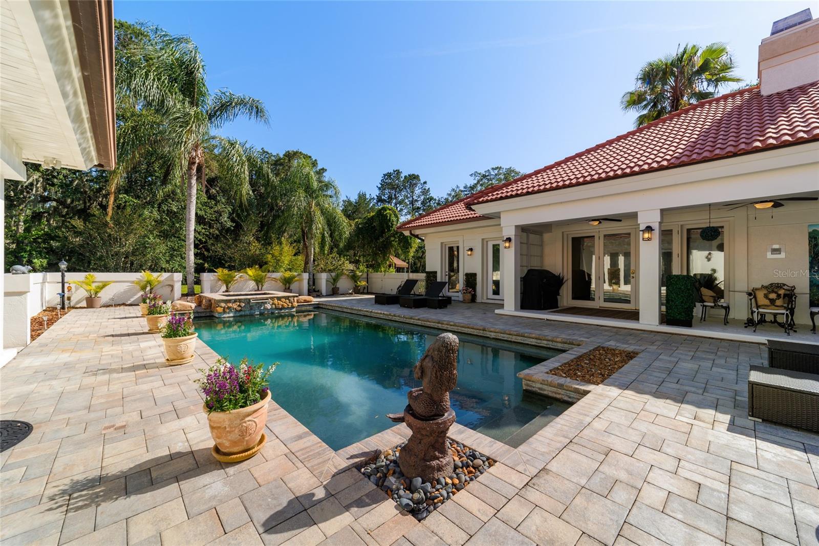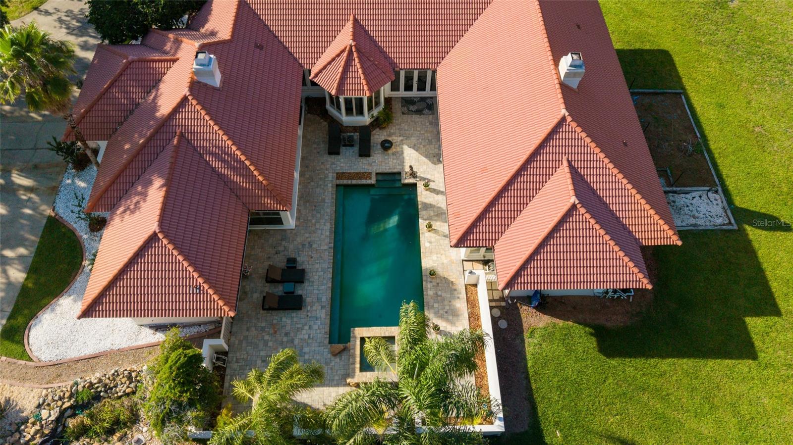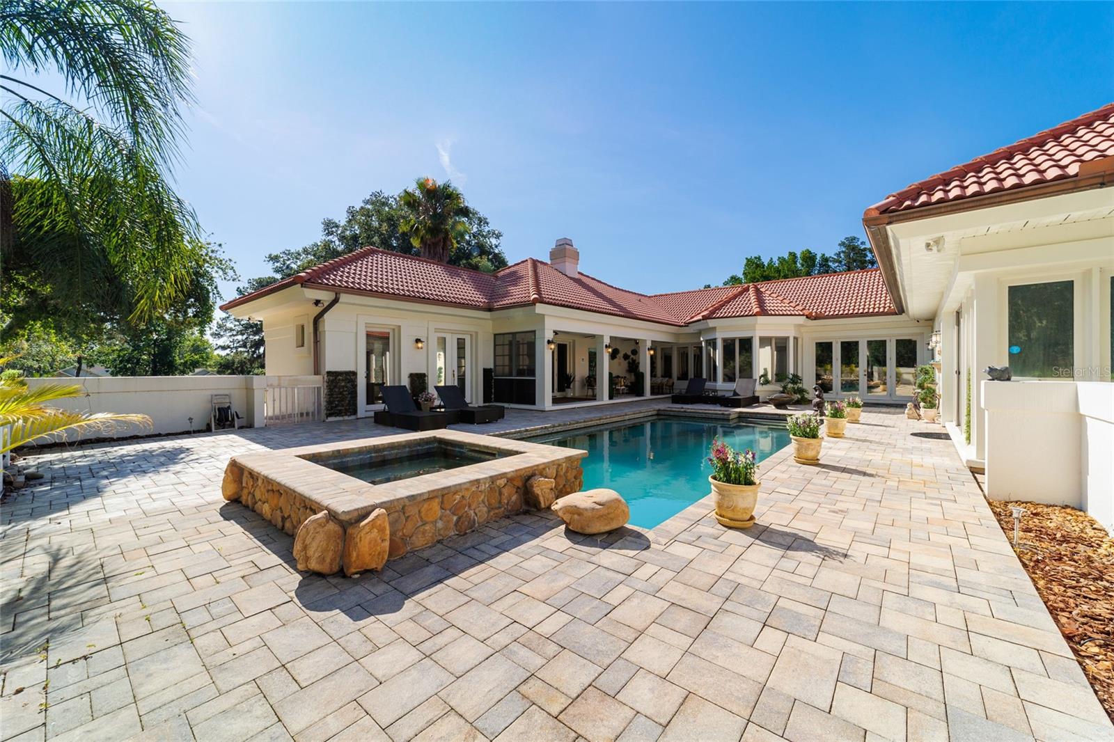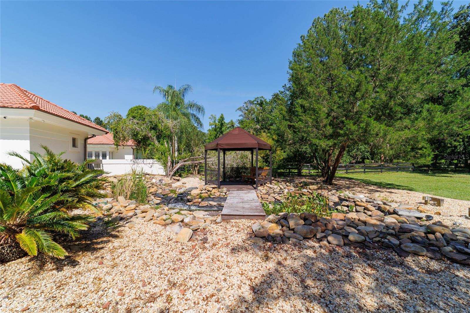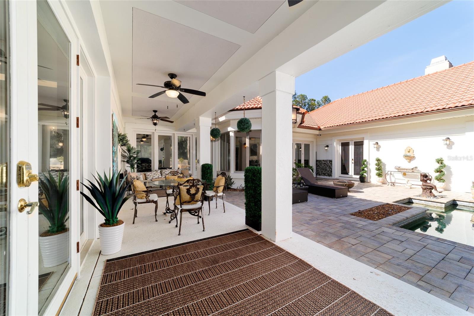 Seller to Install Brand New Roof with Acceptable Offer – Peace of Mind Included! Mediterranean Masterpiece on Nearly 6 Private Acres & almost 5k living square footage in Ocala’s Prestigious Summit II. Step through your personal private viking 2023 gate as your entrance with into a palm-lined drive. Designed in a graceful U-shape around a courtyard pool and spa, the estate blends resort-style living with elegant Old-World craftsmanship—arched columns, French doors, and PeachTree wood-encased windows flood every room with natural light and seamless indoor-outdoor flow. Inside the main residence, featuring 4 bedrooms 3 full bathrooms and powder bathroom- admiring these soaring ceilings multiple living and entertaining areas anchored by a chef’s kitchen with stone countertops, 2024 Bosch Fridge & kitchen aid, expansive island, and full entertaining bar, while a fireside library crowned with custom cabinetry offers the perfect flex space or 5th bedroom. The lavish primary wing pampers with a gas fireplace, boutique-sized closet, sunken jetted tub, and spa shower; three additional guest suites ensure comfort for family and friends, and an attached 4 car garage keeps prized vehicles secure. A covered breezeway links the main home to a private 1052 living square footage 1-bedroom, 1-bath guest house perched above its own two-car garage/ 32 Ft Height RV capable garage- complete with dual balconies that capture tranquil views of manicured grounds and fenced pasture. Car collectors and adventurers will appreciate, while outdoor enthusiasts can unwind beneath the gazebo overlooking a serene water garden framed by lush, mature landscaping. Zoned agricultural! Imagine the possibilities—our virtual renderings reveal how a full-size tennis court nestles seamlessly on these six private acres, still leaving ample space for a custom barn and any other amenities you desire. Minutes from Ocala’s world-class equestrian venues, boutique shopping, fine dining, and private aviation, this gated Mediterranean estate delivers the privacy, acreage, and luxury finishes. Discover lower taxes, a thriving equestrian scene, and an elevated lifestyle in Ocala; schedule your confidential tour today and experience a residence where sophistication meets serenity. Location is 7 miles to Ocala's airport, 10 Miles to Downtown Ocala, 12 Miles to WEC and more! Attached is a feature sheet with upgrades galore!