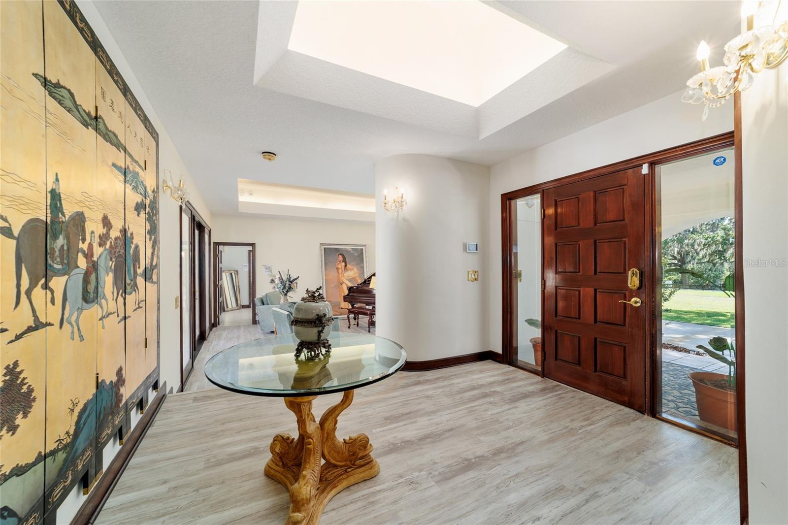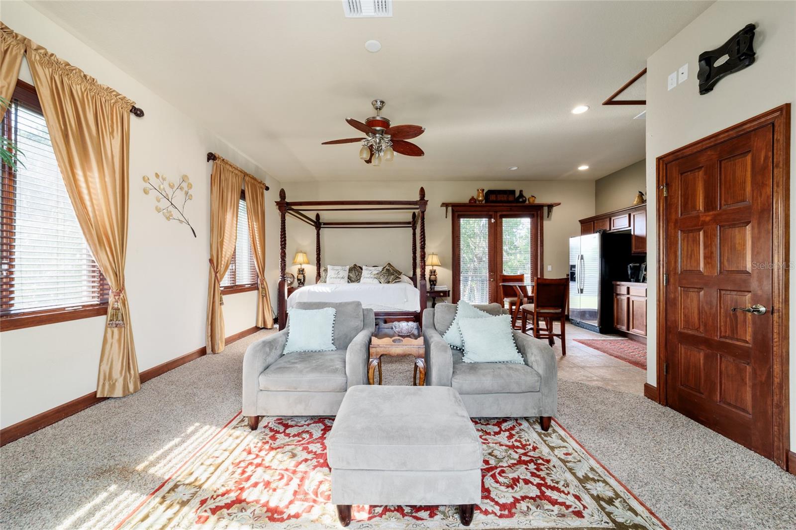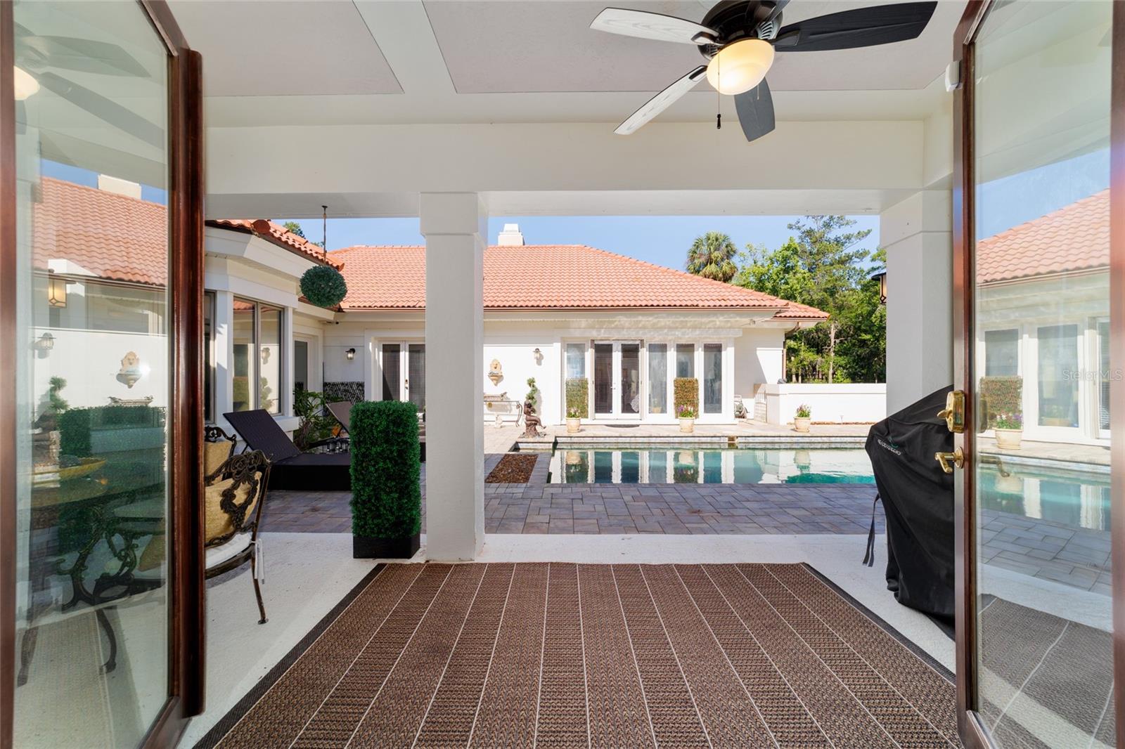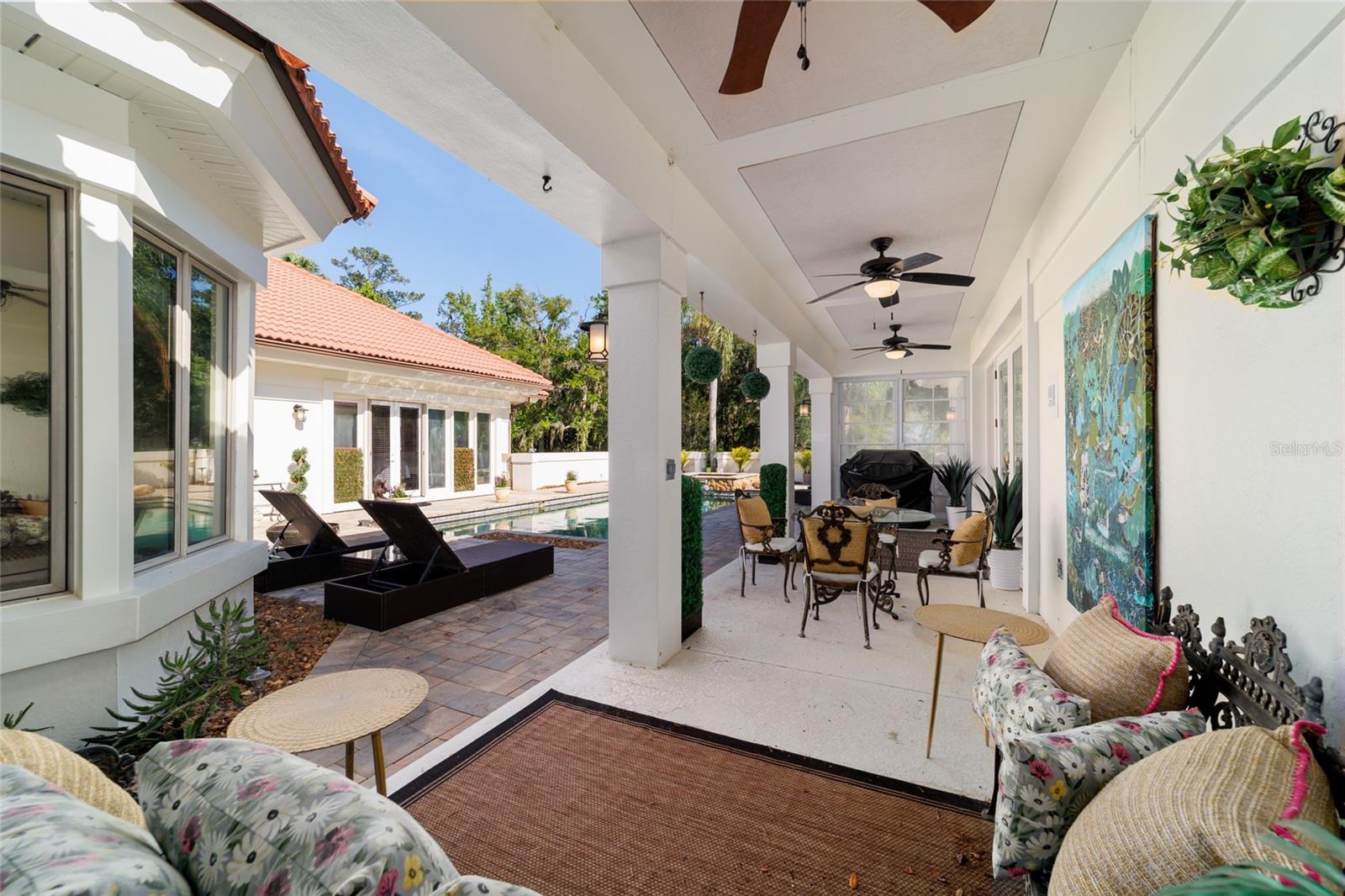Seller to Install Brand New Roof with Acceptable Offer – Peace of Mind Included! Mediterranean Masterpiece on Nearly 6 Private Acres & almost 5k living square footage in Ocala’s Prestigious Summit II. Step through your personal private viking 2023 gate as your entrance with into a palm-lined drive. Designed in a graceful U-shape around a courtyard pool and spa, the estate blends resort-style living with elegant Old-World craftsmanship—arched columns, French doors, and PeachTree wood-encased windows flood every room with natural light and seamless indoor-outdoor flow. Inside the main residence, featuring 4 bedrooms 3 full bathrooms and powder bathroom- admiring these soaring ceilings multiple living and entertaining areas anchored by a chef’s kitchen with stone countertops, 2024 Bosch Fridge & kitchen aid, expansive island, and full entertaining bar, while a fireside library crowned with custom cabinetry offers the perfect flex space or 5th bedroom. The lavish primary wing pampers with a gas fireplace, boutique-sized closet, sunken jetted tub, and spa shower; three additional guest suites ensure comfort for family and friends, and an attached 4 car garage keeps prized vehicles secure. A covered breezeway links the main home to a private 1052 living square footage 1-bedroom, 1-bath guest house perched above its own two-car garage/ 32 Ft Height RV capable garage- complete with dual balconies that capture tranquil views of manicured grounds and fenced pasture. Car collectors and adventurers will appreciate, while outdoor enthusiasts can unwind beneath the gazebo overlooking a serene water garden framed by lush, mature landscaping. Zoned agricultural! Imagine the possibilities—our virtual renderings reveal how a full-size tennis court nestles seamlessly on these six private acres, still leaving ample space for a custom barn and any other amenities you desire. Minutes from Ocala’s world-class equestrian venues, boutique shopping, fine dining, and private aviation, this gated Mediterranean estate delivers the privacy, acreage, and luxury finishes. Discover lower taxes, a thriving equestrian scene, and an elevated lifestyle in Ocala; schedule your confidential tour today and experience a residence where sophistication meets serenity. Location is 7 miles to Ocala's airport, 10 Miles to Downtown Ocala, 12 Miles to WEC and more! Attached is a feature sheet with upgrades galore!