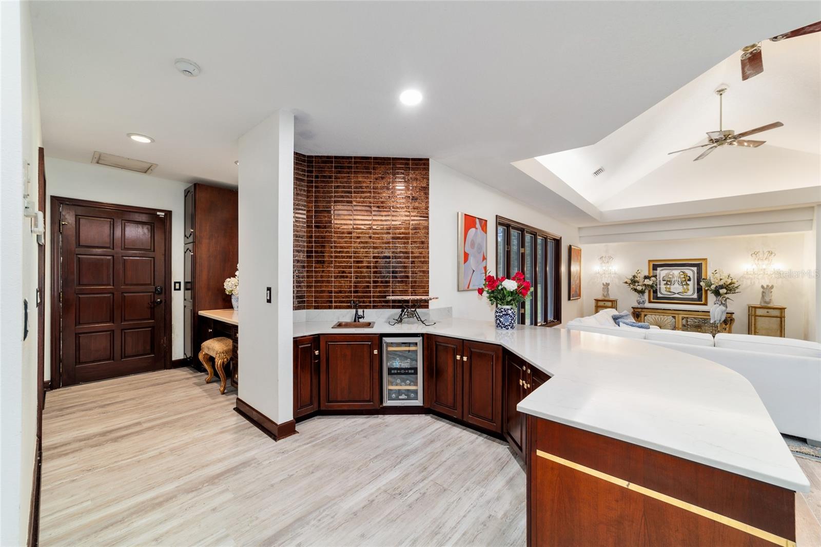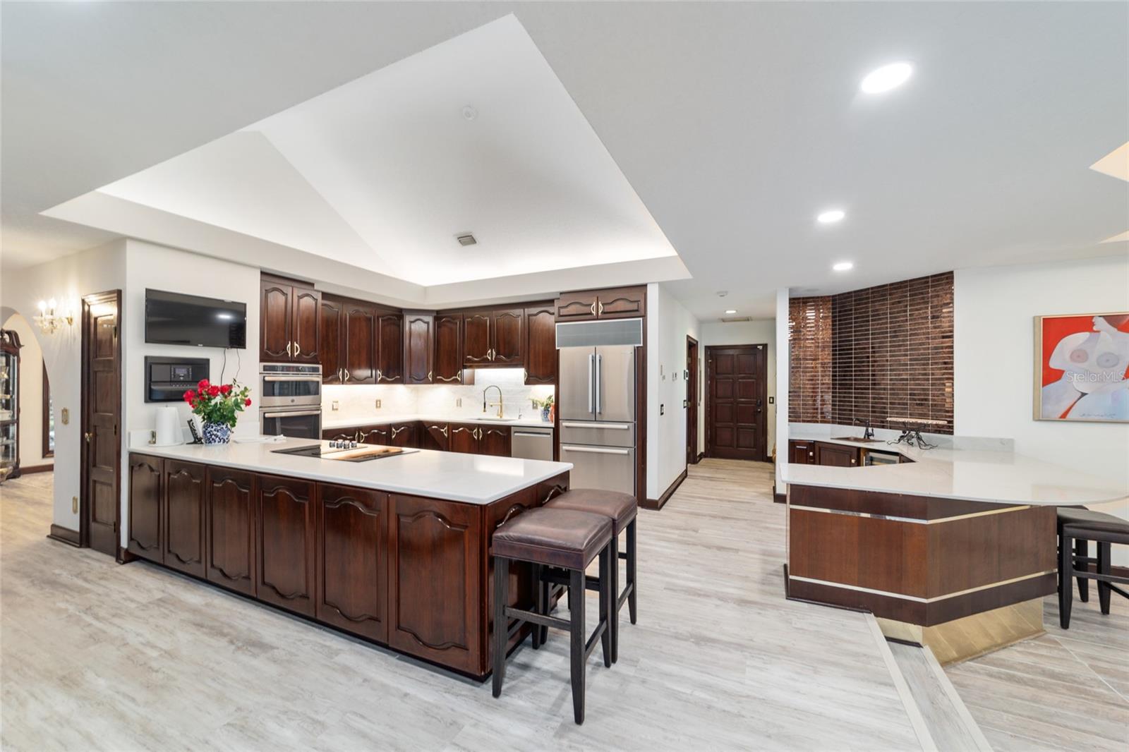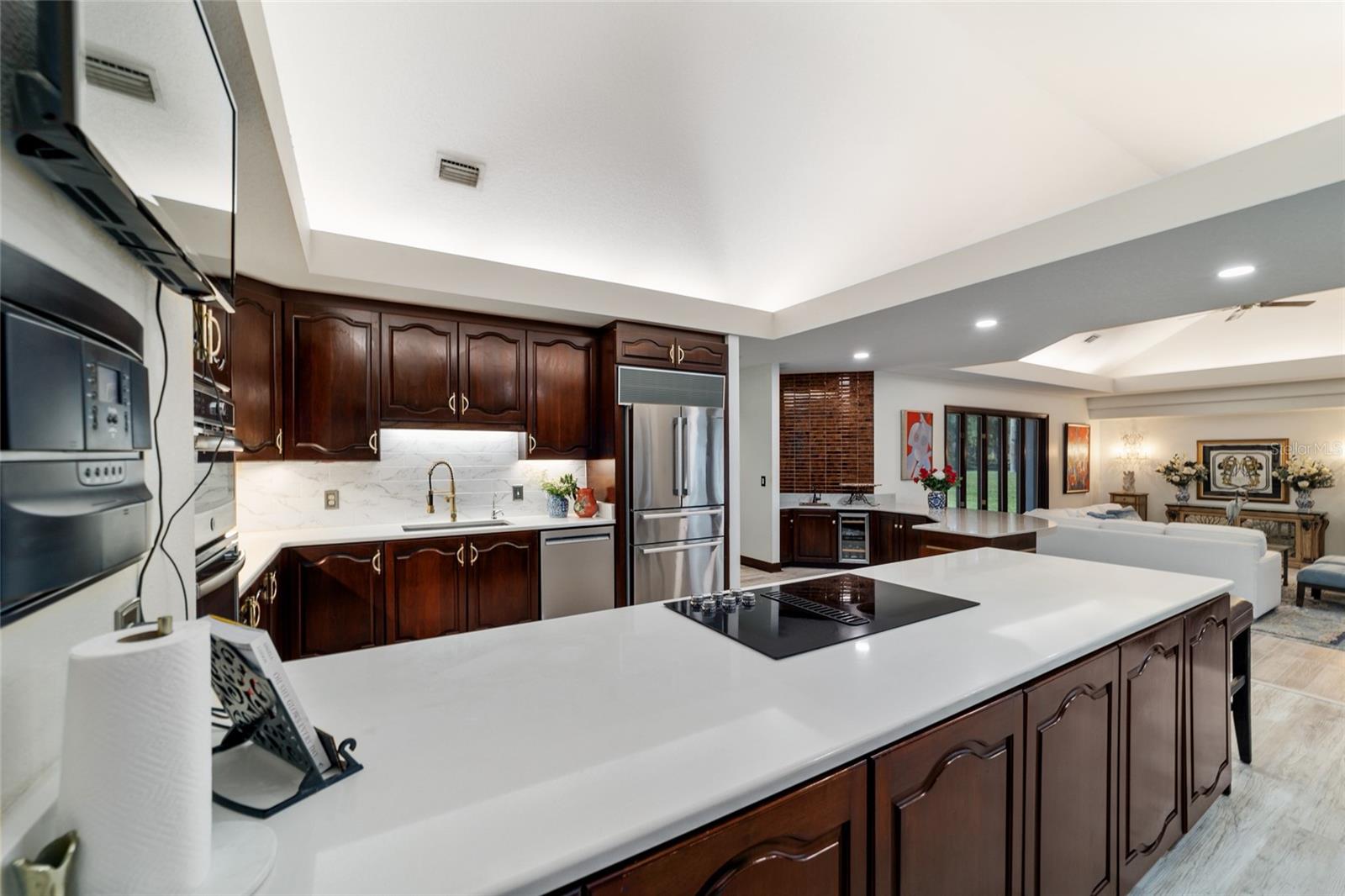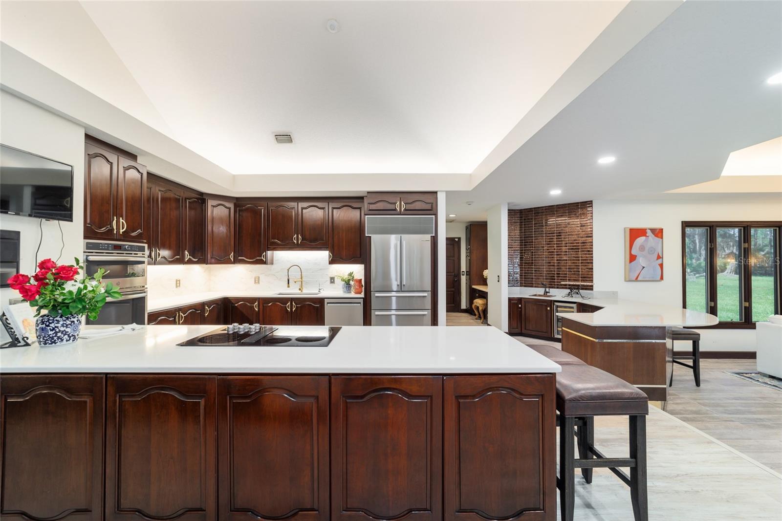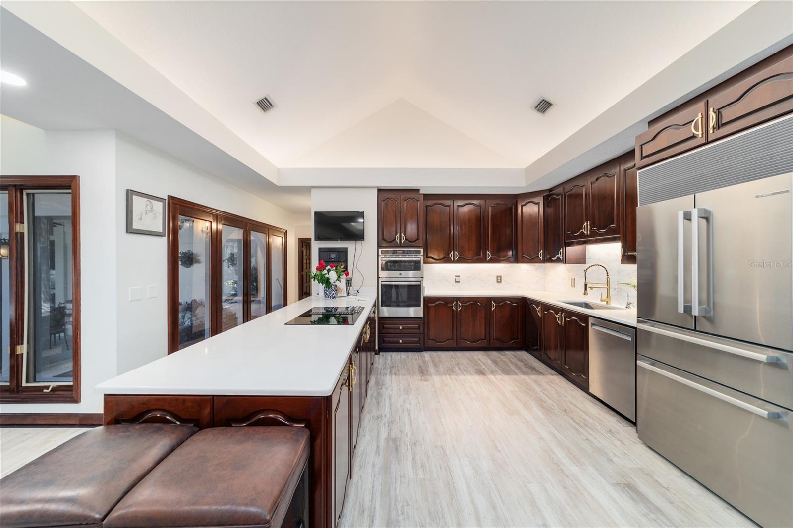 Seller to Install Brand New Roof with Acceptable Offer – Peace of Mind Included! Mediterranean Masterpiece on Nearly 6 Private Acres & almost 5k living square footage in Ocala’s Prestigious Summit II. Step through your personal private viking 2023 gate as your entrance with into a palm-lined drive. Designed in a graceful U-shape around a courtyard pool and spa, the estate blends resort-style living with elegant Old-World craftsmanship—arched columns, French doors, and PeachTree wood-encased windows flood every room with natural light and seamless indoor-outdoor flow. Inside the main residence, featuring 4 bedrooms 3 full bathrooms and powder bathroom- admiring these soaring ceilings multiple living and entertaining areas anchored by a chef’s kitchen with stone countertops, 2024 Bosch Fridge & kitchen aid, expansive island, and full entertaining bar, while a fireside library crowned with custom cabinetry offers the perfect flex space or 5th bedroom. The lavish primary wing pampers with a gas fireplace, boutique-sized closet, sunken jetted tub, and spa shower; three additional guest suites ensure comfort for family and friends, and an attached 4 car garage keeps prized vehicles secure. A covered breezeway links the main home to a private 1052 living square footage 1-bedroom, 1-bath guest house perched above its own two-car garage/ 32 Ft Height RV capable garage- complete with dual balconies that capture tranquil views of manicured grounds and fenced pasture. Car collectors and adventurers will appreciate, while outdoor enthusiasts can unwind beneath the gazebo overlooking a serene water garden framed by lush, mature landscaping. Zoned agricultural! Imagine the possibilities—our virtual renderings reveal how a full-size tennis court nestles seamlessly on these six private acres, still leaving ample space for a custom barn and any other amenities you desire. Minutes from Ocala’s world-class equestrian venues, boutique shopping, fine dining, and private aviation, this gated Mediterranean estate delivers the privacy, acreage, and luxury finishes. Discover lower taxes, a thriving equestrian scene, and an elevated lifestyle in Ocala; schedule your confidential tour today and experience a residence where sophistication meets serenity. Location is 7 miles to Ocala's airport, 10 Miles to Downtown Ocala, 12 Miles to WEC and more! Attached is a feature sheet with upgrades galore!