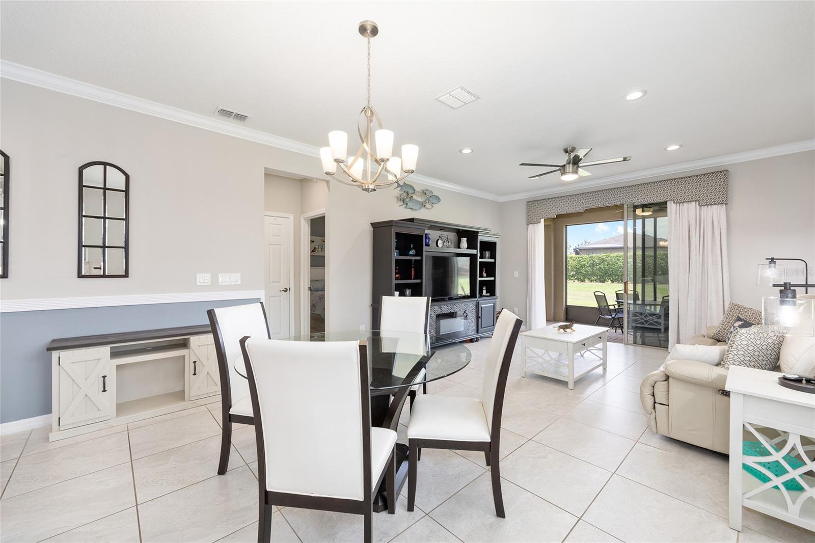 SELLER MOTIVATED! Experience the ease of carefree living in this stunningly designed Steel Creek garden series model situated within the gated 55+ Stone Creek golf community. Overlooking a private nature berm, this exceptional home blends serenity with resort-style amenities, all while offering the convenience of professionally managed lawn and landscaping maintenance. Inside, the thoughtfully crafted open living plan is bathed in natural light, enhanced by sleek tile flooring, Plantation shutters, LED downlighting, and exquisite crown molding throughout the main living areas. The chef-inspired kitchen is a dream, featuring a cozy dining nook, stainless steel appliances—including a comfort-height dishwasher and vented range hood—Shaker-style cabinetry, gleaming granite countertops, and a spacious island with stylish pendant lighting. Retreat to the Owner’s Suite, where a generous walk-in closet and oversized window frame tranquil nature views, inviting relaxation. A sliding barn door leads to the spa-like ensuite bath, complete with a step-in shower with a fiberglass surround, two transom windows for natural illumination, and a luxurious granite-topped double vanity. Outside, the screened-in lanai and extended birdcage patio offer a private escape overlooking the serene nature berm—an ideal spot to unwind and savor the beauty of your surroundings. Embrace the exceptional lifestyle of this vibrant community, featuring a 24/7 staffed gated entrance for security and peace of mind. Luxury-inspired amenities include heated pools, a state-of-the-art fitness center, a spa, and relaxing hot tubs and saunas. Stay active with pickleball, bocce, tennis, and a softball field, while a dedicated lifestyle staff curates entertainment, activities, and special events to foster connections. Just beyond the gates, enjoy a golf course, pro shop, and restaurant—perfect for socializing and unwinding. Make your move today and experience resort-style living at its finest!