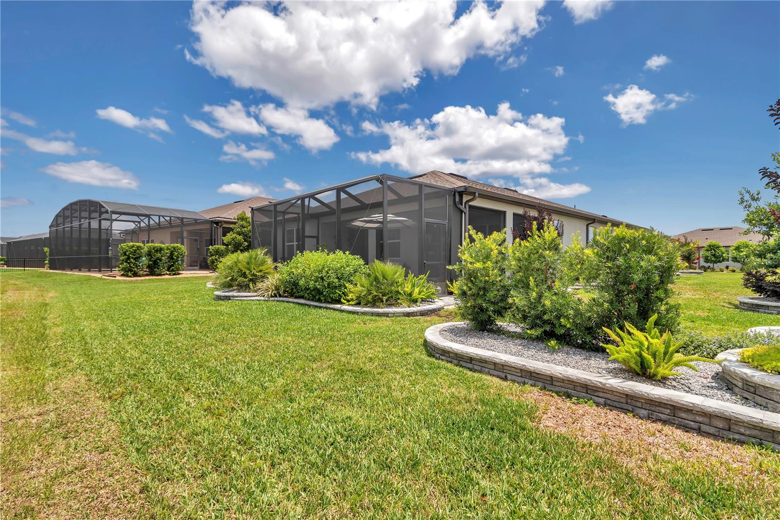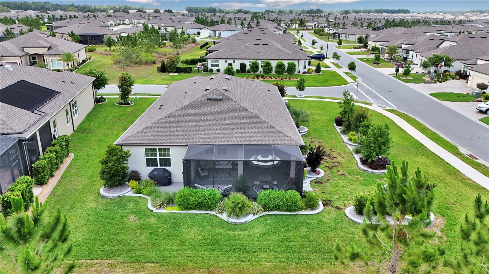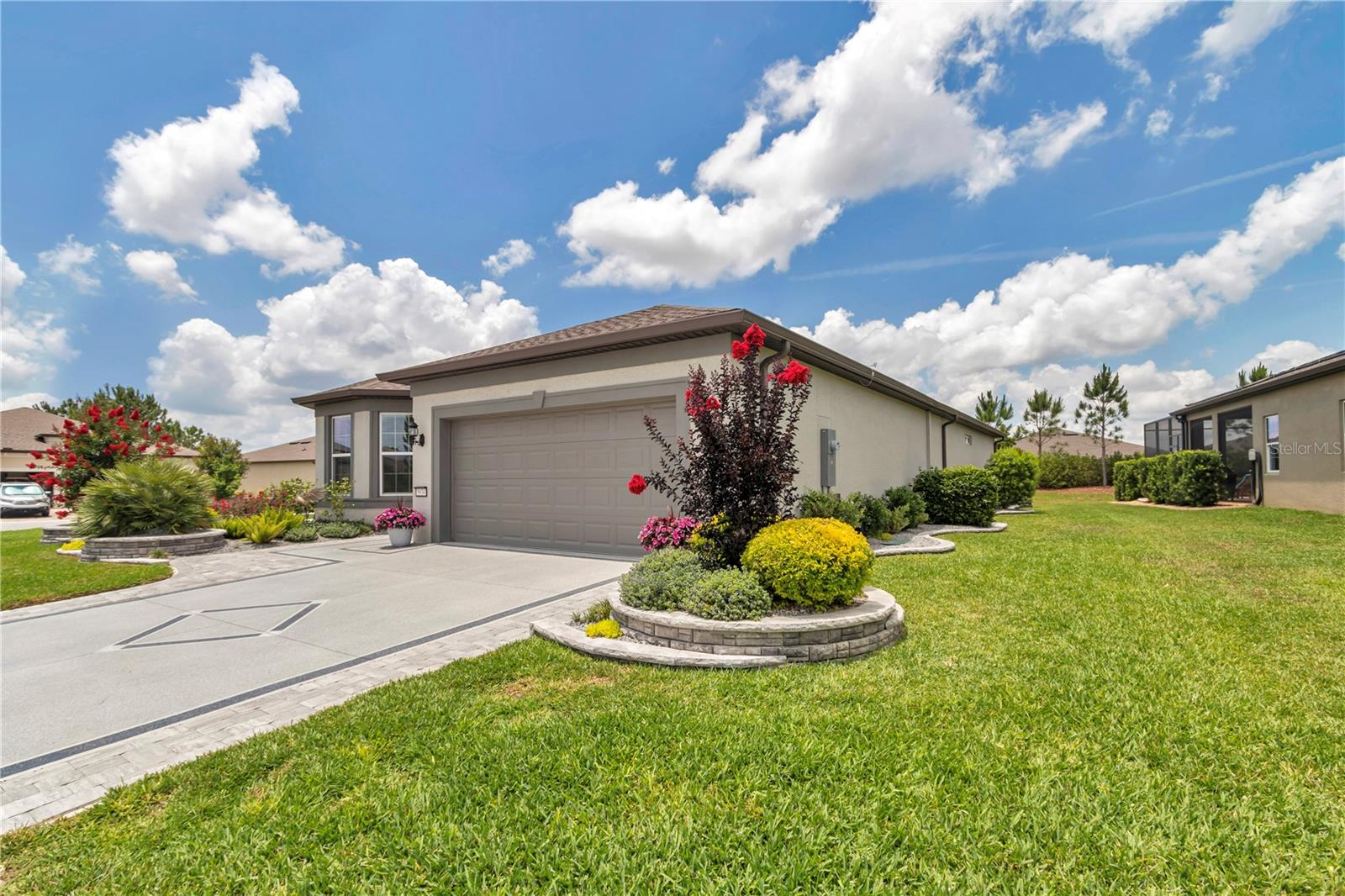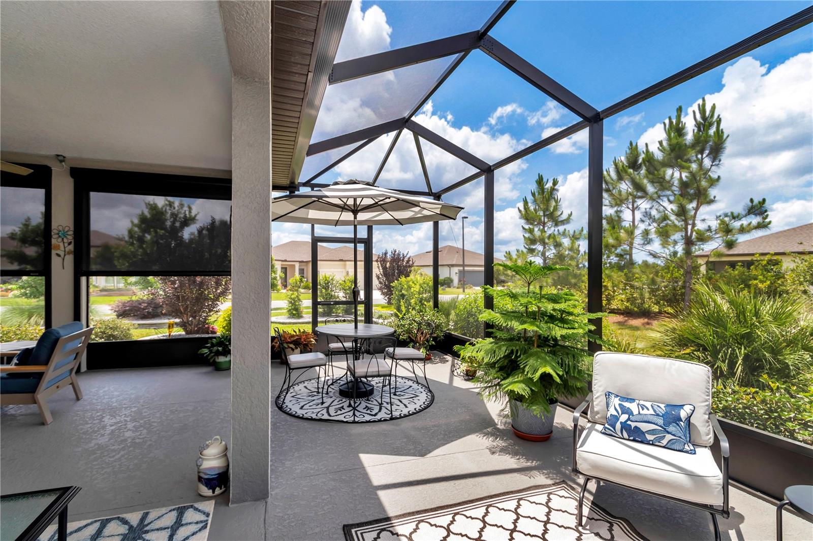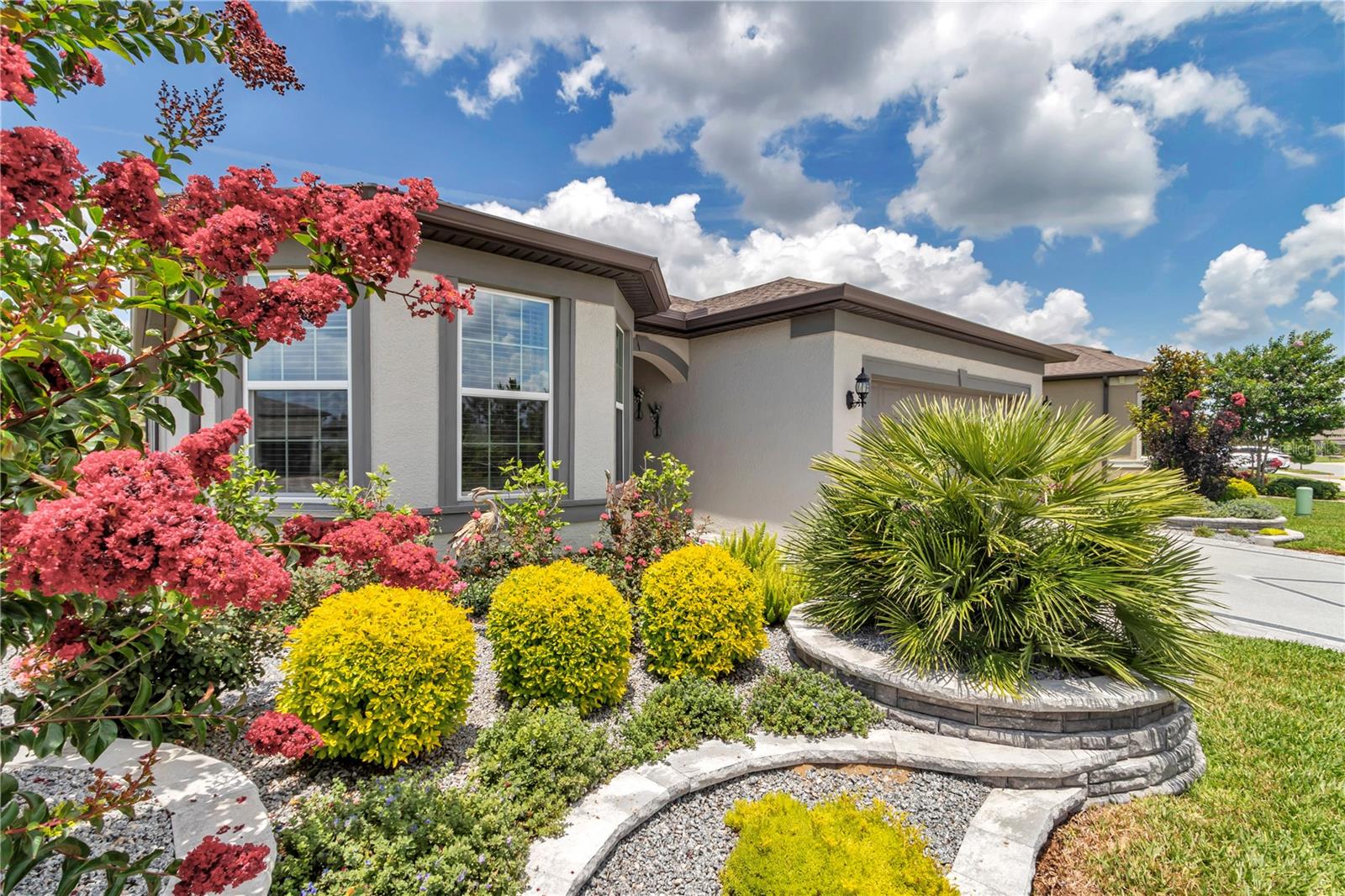 This beautifully maintained 1,923 sq. ft. home sits on a gorgeous landscaped corner lot, offering both privacy and amazing curb appeal. Inside, you'll find 2 spacious bedrooms, 2 full bathrooms, and a versatile flex room with an elegant tray ceiling—perfect for a home office, hobby space, or guest area. The home showcases luxury vinyl plank (LVP) flooring throughout, ceiling fans, and custom window coverings, all complemented by two-tone custom paint and a designer feature wall for a sophisticated touch. The kitchen features; KitchenAid appliances, under-cabinet lighting, pull-out cabinetry, a stylish backsplash, and eye-catching designer pendant lighting. Step outside to the large extended lanai, complete with privacy power screens—ideal for relaxing, enjoying the beautiful landscape or entertaining year-round. Additional highlights include a tandem garage, soft water system, and thoughtfully designed living spaces that combine function with style. Welcome to resort-style living in the highly sought-after 55+ Stone Creek by Del Webb and don't miss your chance to enjoy active adult living at its finest in this thoughtfully designed and upgraded home!