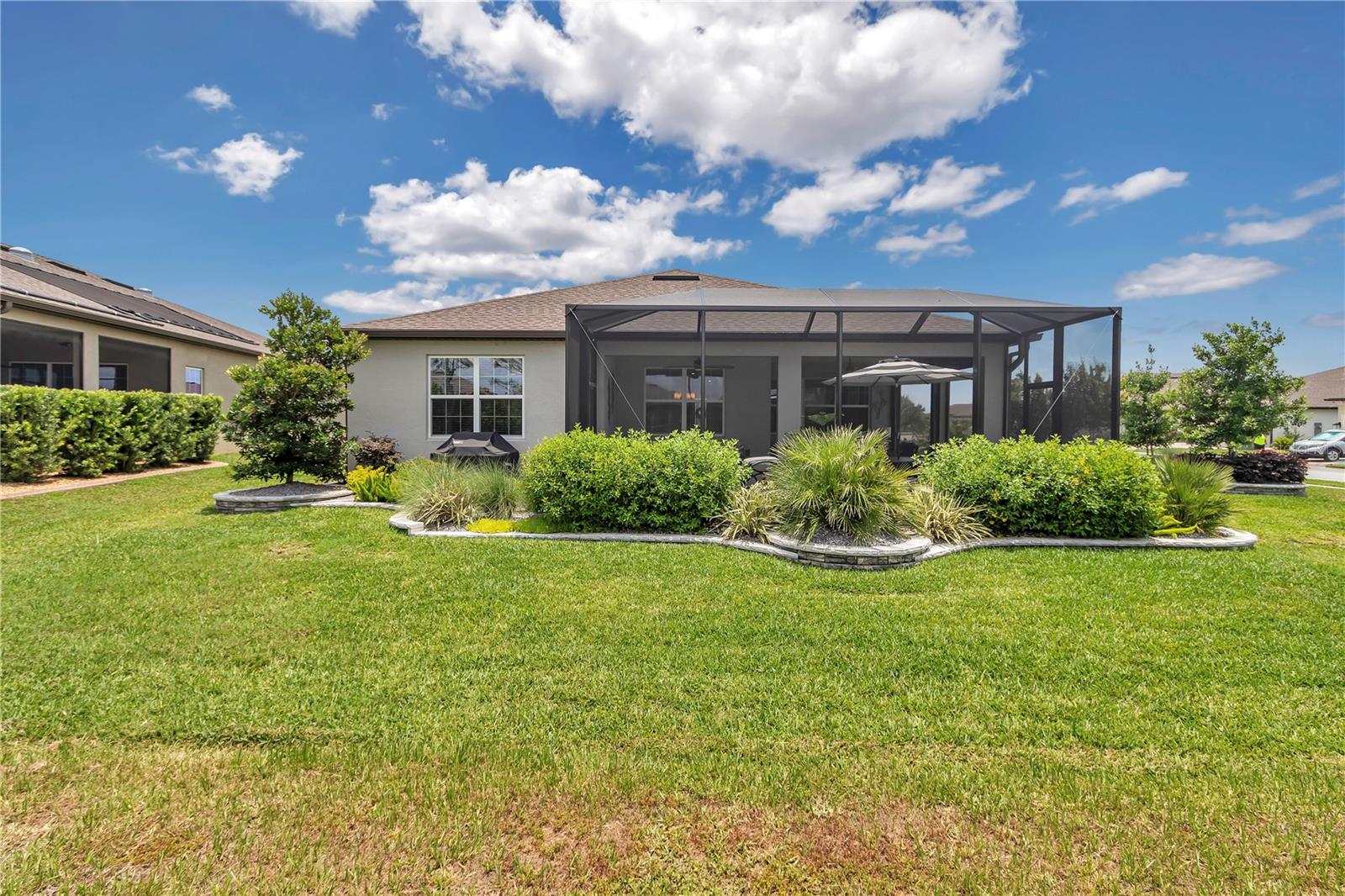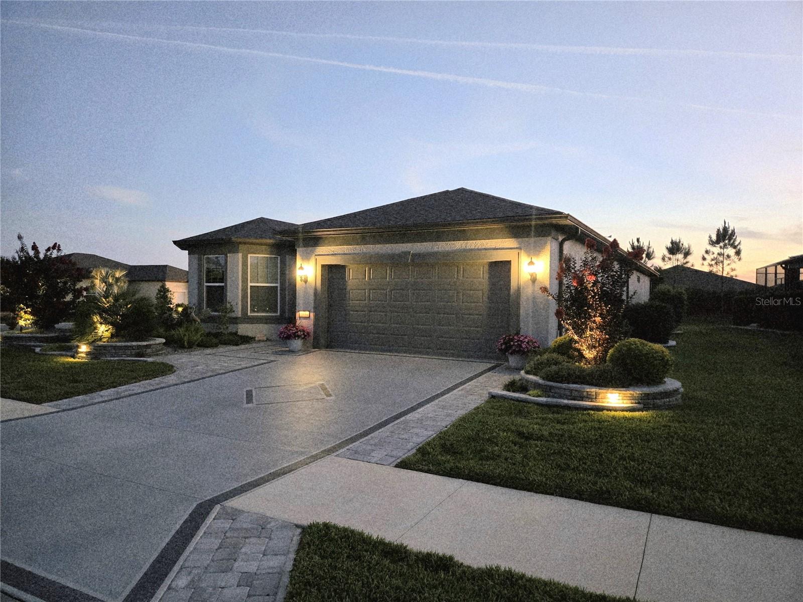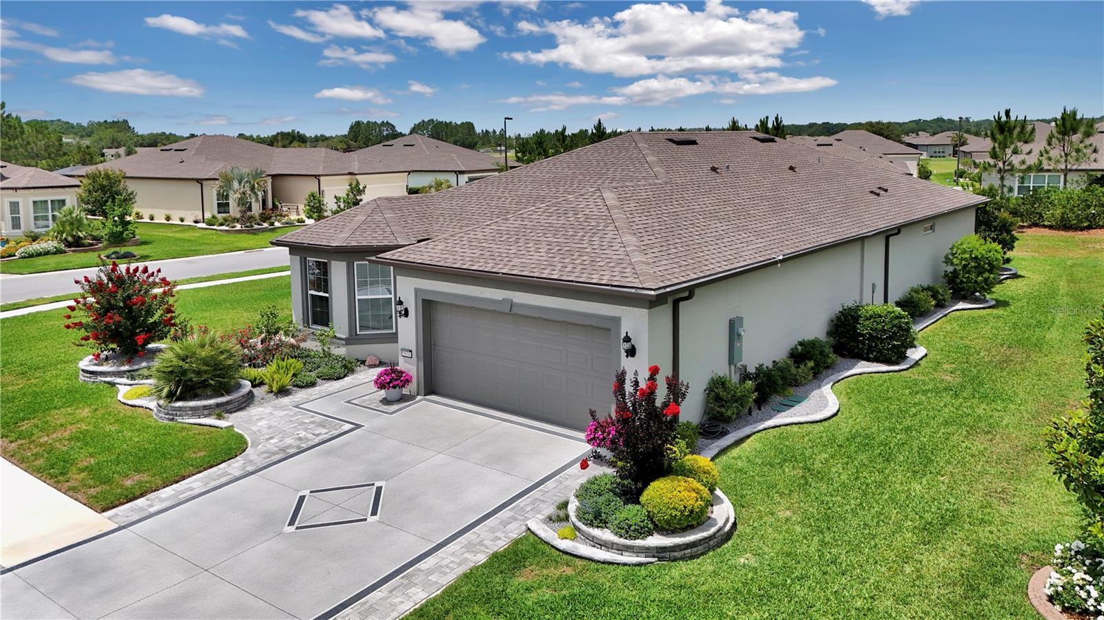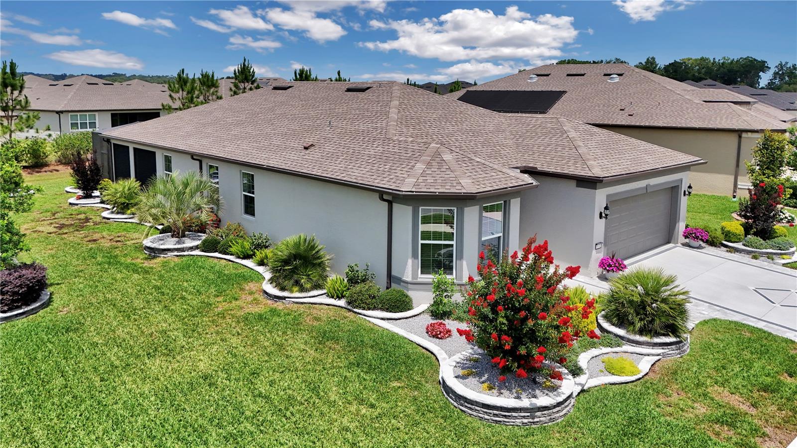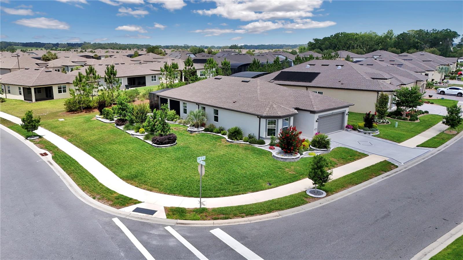 This beautifully maintained 1,923 sq. ft. home sits on a gorgeous landscaped corner lot, offering both privacy and amazing curb appeal. Inside, you'll find 2 spacious bedrooms, 2 full bathrooms, and a versatile flex room with an elegant tray ceiling—perfect for a home office, hobby space, or guest area. The home showcases luxury vinyl plank (LVP) flooring throughout, ceiling fans, and custom window coverings, all complemented by two-tone custom paint and a designer feature wall for a sophisticated touch. The kitchen features; KitchenAid appliances, under-cabinet lighting, pull-out cabinetry, a stylish backsplash, and eye-catching designer pendant lighting. Step outside to the large extended lanai, complete with privacy power screens—ideal for relaxing, enjoying the beautiful landscape or entertaining year-round. Additional highlights include a tandem garage, soft water system, and thoughtfully designed living spaces that combine function with style. Welcome to resort-style living in the highly sought-after 55+ Stone Creek by Del Webb and don't miss your chance to enjoy active adult living at its finest in this thoughtfully designed and upgraded home!