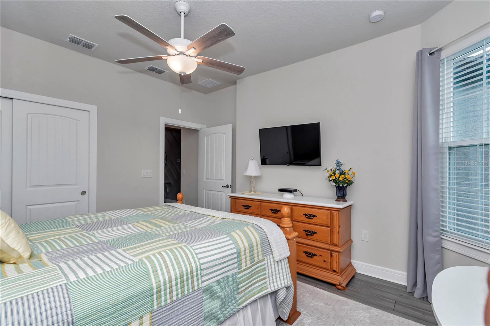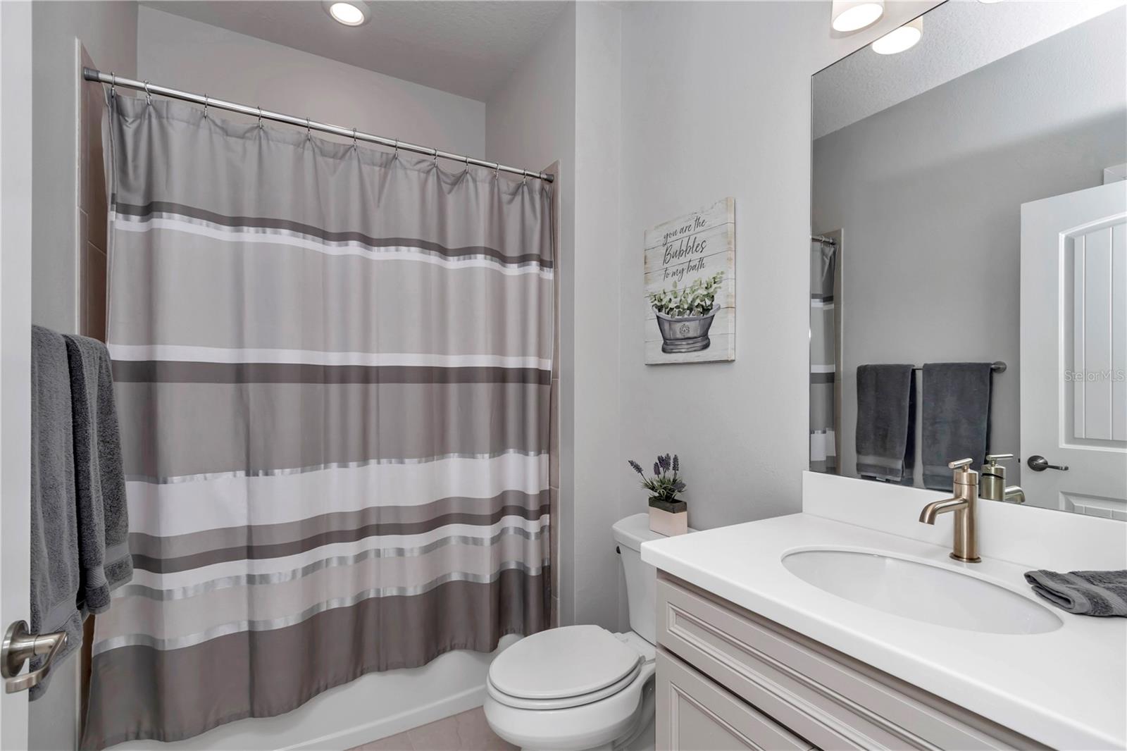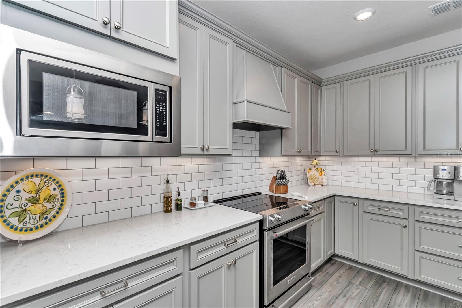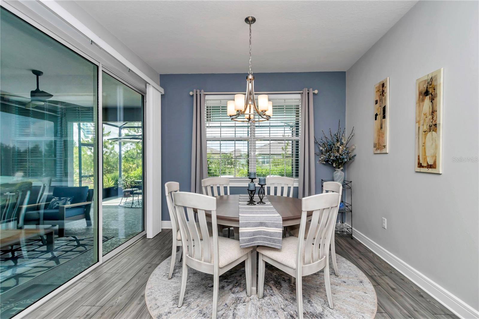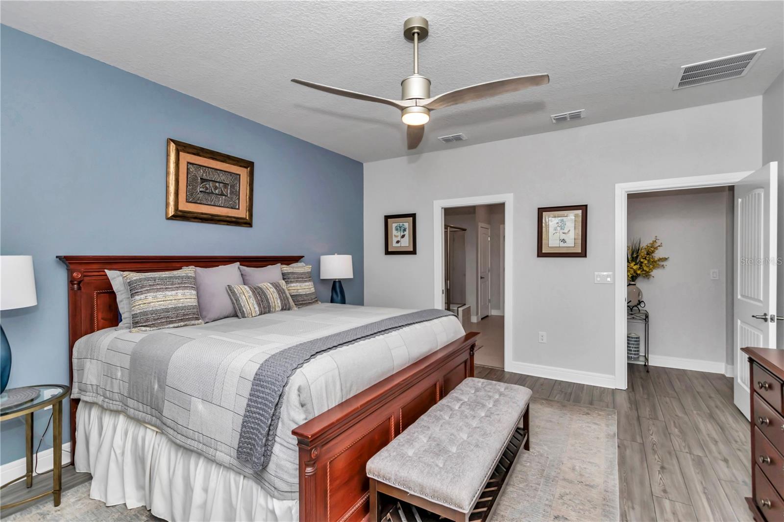 This beautifully maintained 1,923 sq. ft. home sits on a gorgeous landscaped corner lot, offering both privacy and amazing curb appeal. Inside, you'll find 2 spacious bedrooms, 2 full bathrooms, and a versatile flex room with an elegant tray ceiling—perfect for a home office, hobby space, or guest area. The home showcases luxury vinyl plank (LVP) flooring throughout, ceiling fans, and custom window coverings, all complemented by two-tone custom paint and a designer feature wall for a sophisticated touch. The kitchen features; KitchenAid appliances, under-cabinet lighting, pull-out cabinetry, a stylish backsplash, and eye-catching designer pendant lighting. Step outside to the large extended lanai, complete with privacy power screens—ideal for relaxing, enjoying the beautiful landscape or entertaining year-round. Additional highlights include a tandem garage, soft water system, and thoughtfully designed living spaces that combine function with style. Welcome to resort-style living in the highly sought-after 55+ Stone Creek by Del Webb and don't miss your chance to enjoy active adult living at its finest in this thoughtfully designed and upgraded home!