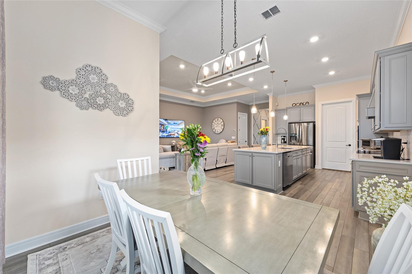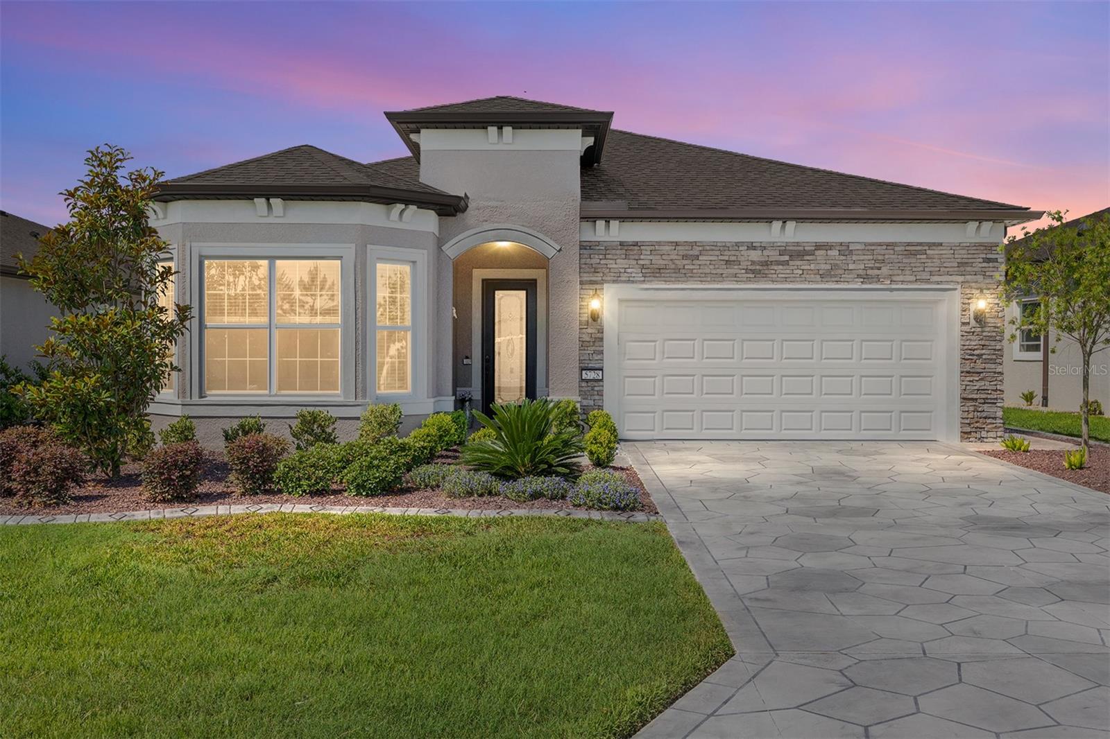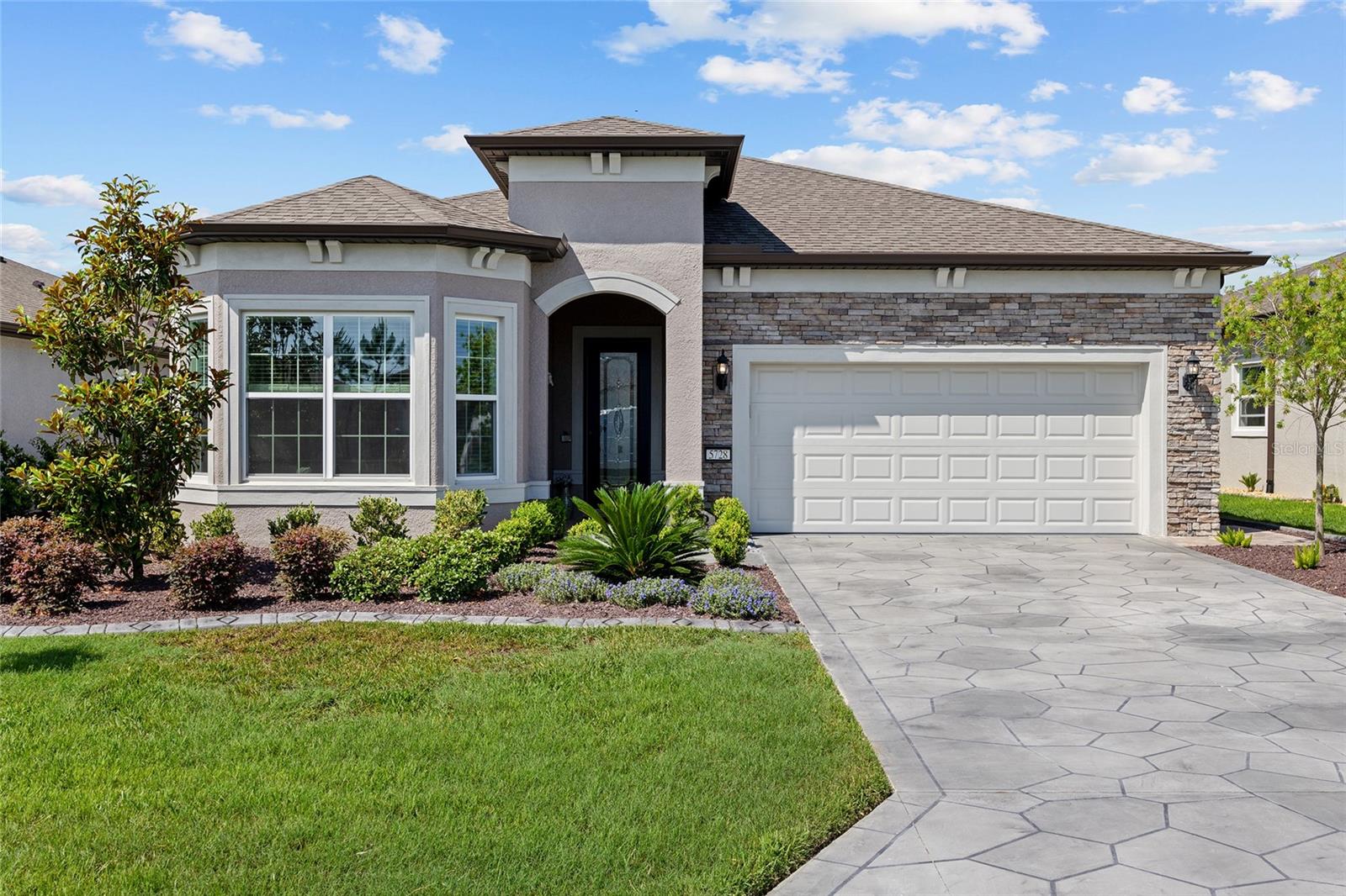 Extraordinary views, extraordinary value. Now $55,900 below builder pricing. This well-appointed Prestige model is on one of the sought-after lots in Stone Creek, offering tranquil views of the golf course and waterfront scenes of Reflection Bay. Rarely does a property with this blend of location, upgrades and outdoor living become available, especially at this price. With a substantial price adjustment of $55,900, this is an exceptional moment to secure a home that surpasses builder offerings. Not only does this residence boast premium lot positioning, but it also includes an array of thoughtful enhancements crafted by the owners. From the decorative driveway and elegant landscaping to the extended lanai and newly installed stone patio overlooking the lake and clubhouse, this home offers a backdrop for entertaining and sunset views. Inside, the kitchen is designed for culinary excellence, featuring built-in ovens, custom wood hood, upgraded cabinetry and an oversized island with ample storage—finished with granite countertops and stainless steel appliances. The gathering room is anchored by a tray ceiling and sliders that frame the sweeping backyard views. The primary suite features a drop soffit ceiling, dual walk-in closets, and a luxurious bath with zero-entry shower and upgraded dual vanities. The private guest suite, flexible bonus room and functional extras—including attic storage and epoxy garage floors—complete the picture. Tucked directly across from the resort-style pool and backing onto the water, this home is a fusion of privacy and community access. The oversized birdcage and paver patio provide spacious outdoor comfort for relaxation or hosting guests. Stone Creek is a premier 55+ gated community offering resort-style amenities, social clubs and lifestyle opportunities that extend far beyond your front door. This is more than a home, it’s a chance to live beautifully and invest wisely. Call today to schedule a private showing.