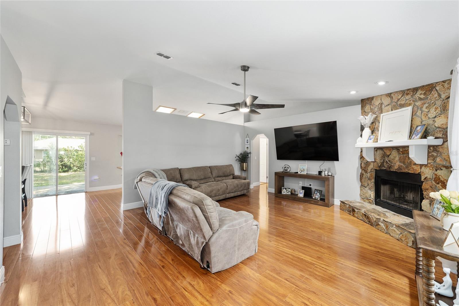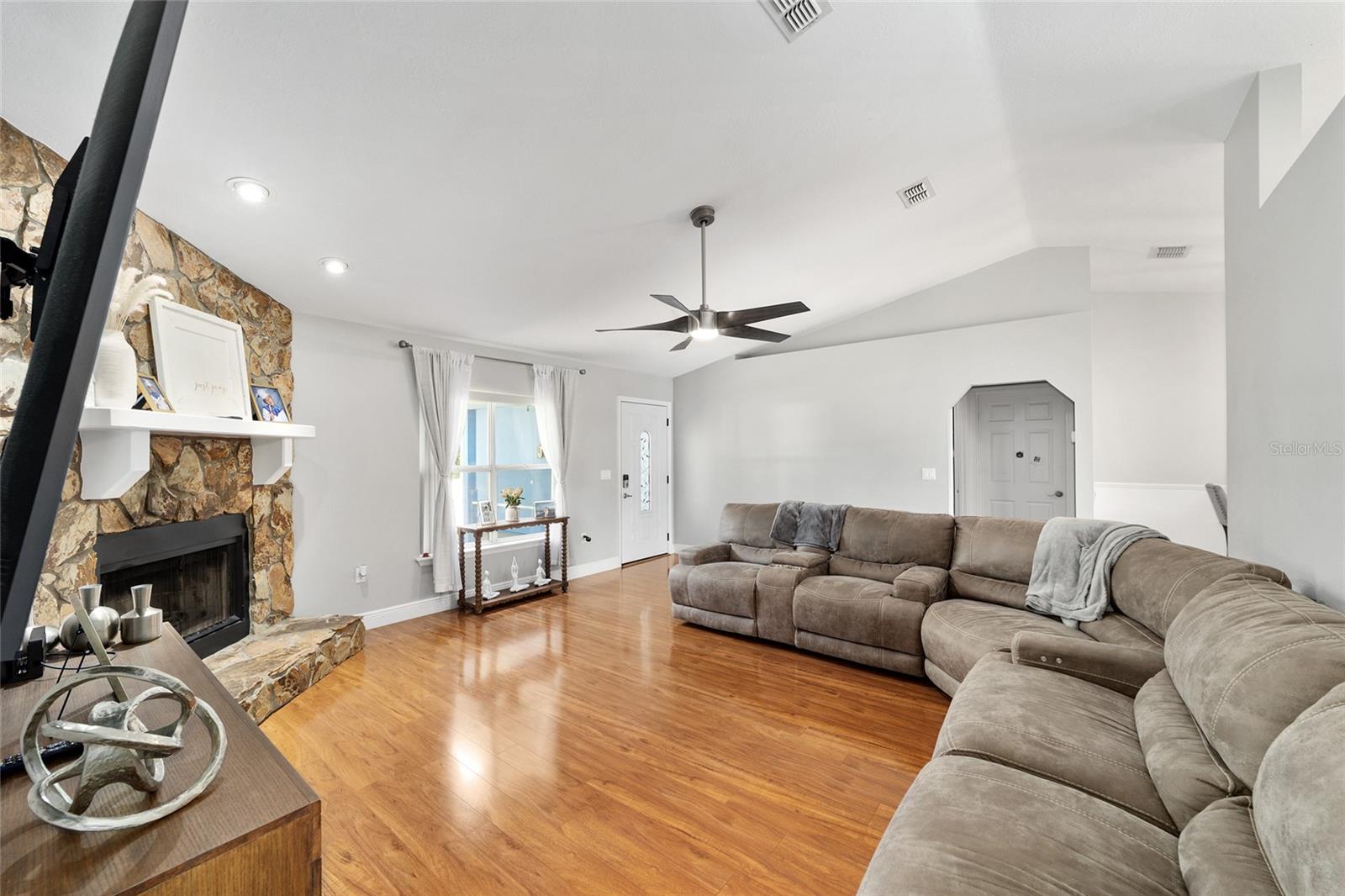 ATTENTION! HUGE PRICE ADJUSTMENT! Welcome to this beautifully maintained home in one of Ocala’s most desirable neighborhoods! Ideally located just minutes from downtown and close to shopping, dining, and entertainment, this charming residence offers both comfort and convenience. Step inside to discover a split floor plan designed for privacy, with newer laminate and vinyl flooring, upgraded lighting, and ceiling fans throughout. The spacious living area features a cozy wood-burning fireplace, perfect for relaxing evenings. The eat-in kitchen is a chef’s delight, boasting wood cabinetry, a pantry, stainless steel appliances, and a breakfast bar—ideal for casual dining or entertaining. A separate dining area adds space for formal meals and family gatherings. Enjoy outdoor living in the fenced backyard, perfect for pets, play, or weekend barbecues. The open patio and covered front entry add charm and functional outdoor space. A 2014 roof provides added peace of mind. This move-in ready home truly has it all—location, layout, and lifestyle.