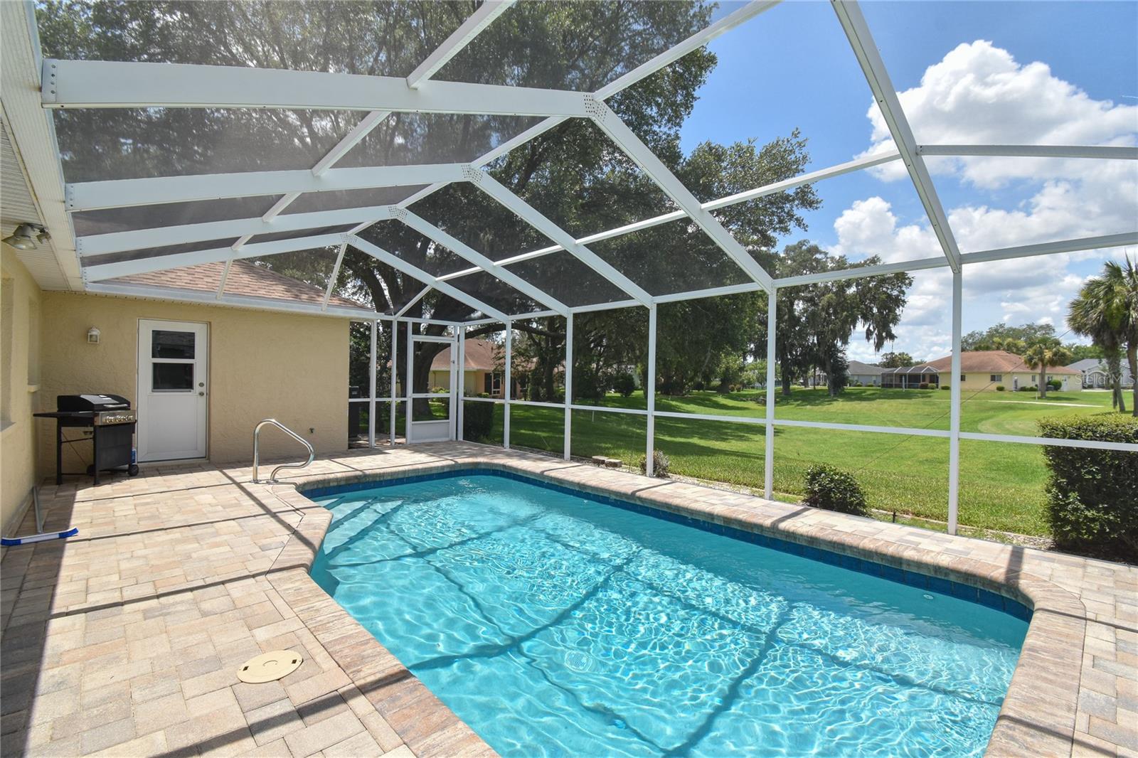 JUST REDUCED FOR QUICK SALE!!! SPECTACULAR POOL HOUSE ON THE GOLF COURSE! Enjoy the mature landscaping leading to the house with the tile entrance and the new front door. The living and dining rooms also have tile wood-like floors and have a beautiful view of the pool area and the golf course. The living room has room for a large, screened television. The wall between the living room and kitchen can be moved to create an open floor plan. The kitchen has a built in microwave, time-saving dishwasher, refrigerator and a clear top range. The kitchen has an eat-in area for enjoying morning coffee. The kitchen has a great view of the golf course from the kitchen window. The laundry room is located right off of the kitchen for easy access to the garage for carrying in groceries. The Master Bedroom has new carpet and has recently been painted with a walk-in closet. The Master Bathroom has been remodeled with a new walk-in shower, new double sink vanity with plenty of storage, new faucets and fixtures. The two bedrooms have built-in closets; one with a view of the golf course. The guest bathroom has also been remodeled with a new sink, new vanity with plenty of storage, new walk-in shower and a linen closet, The Florida room has ceiling fans, vinyl windows for year-round comfort and an outstanding view of the pool and golf course. This house is priced to sell! Ocala Palms offers a pristine golf course, indoor and outdoor pools, and fitness center. Situated in a prime location, this home is just a short drive from the World Equestrian Center (WEC) and nearby shopping and restaurants are just across the street. Embrace the vibrant lifestyle and numerous amenities that Ocala Palms has to offer in this exceptional home. All measurements are approximate. Buyer(s) to re-measure.