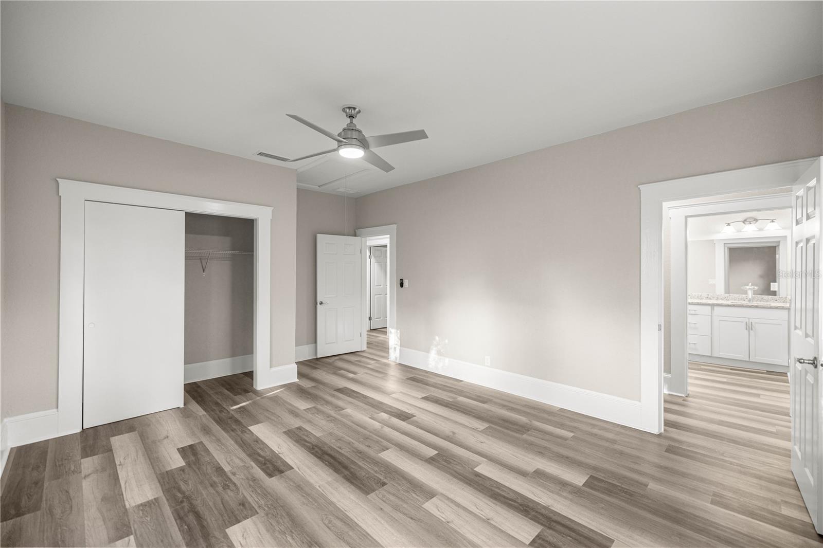 One or more photo(s) has been virtually staged. *optional OWNER FINANCING* You'll be awed from the moment you drive up to this beautiful 3-bedroom, 2.5 bathroom, newly renovated home! NO HOA, NO CDD, and sitting on over 1/3 acre of lush landscaping and majestic shade trees! The charm of the original design remains, plus thoughtful updates to include the perfect blend of convenience and comfort! Notice luxury vinyl flooring throughout, NEW energy efficient windows including a stunning picture window, ceiling fans, 10" molded baseboards with continuous framed door molding, endearing wood-burning stone fireplace, and 3 LARGE bedrooms with extra-large closets. You choose the primary bedroom ... will it be the bedroom that has dual closets with the 2nd closet large enough to be an office, nursery, or extra storage? Or the 2nd bedroom with dual closets and an oversized ensuite spa bathroom, or the 3rd bedroom with a large walk-in closet and half bath. The bathrooms present modern fixtures, real wood cabinets, granite countertops, beautifully tiled showers, and ample storage space. You can't miss the heart of the home, the updated kitchen, featuring professional stainless appliances, including a gas range, wood cabinets, granite countertops, tiled backsplash, large center island for prep and extra seating, and tons of cabinet storage. Whether enjoying your morning coffee on your front screened lanai or grilling out back, this home sets the tone for relaxation and entertaining. Other features include an indoor laundry room, an oversized 2-car garage with a finished garage floor, and a fully fenced back yard - perfect for the family and pets to play! This home is move-in ready and offers everything you need for comfortable, stylish living and is just minutes from schools, doctors, restaurants, and shopping! Don't miss your opportunity, you must see this home in person to appreciate it!