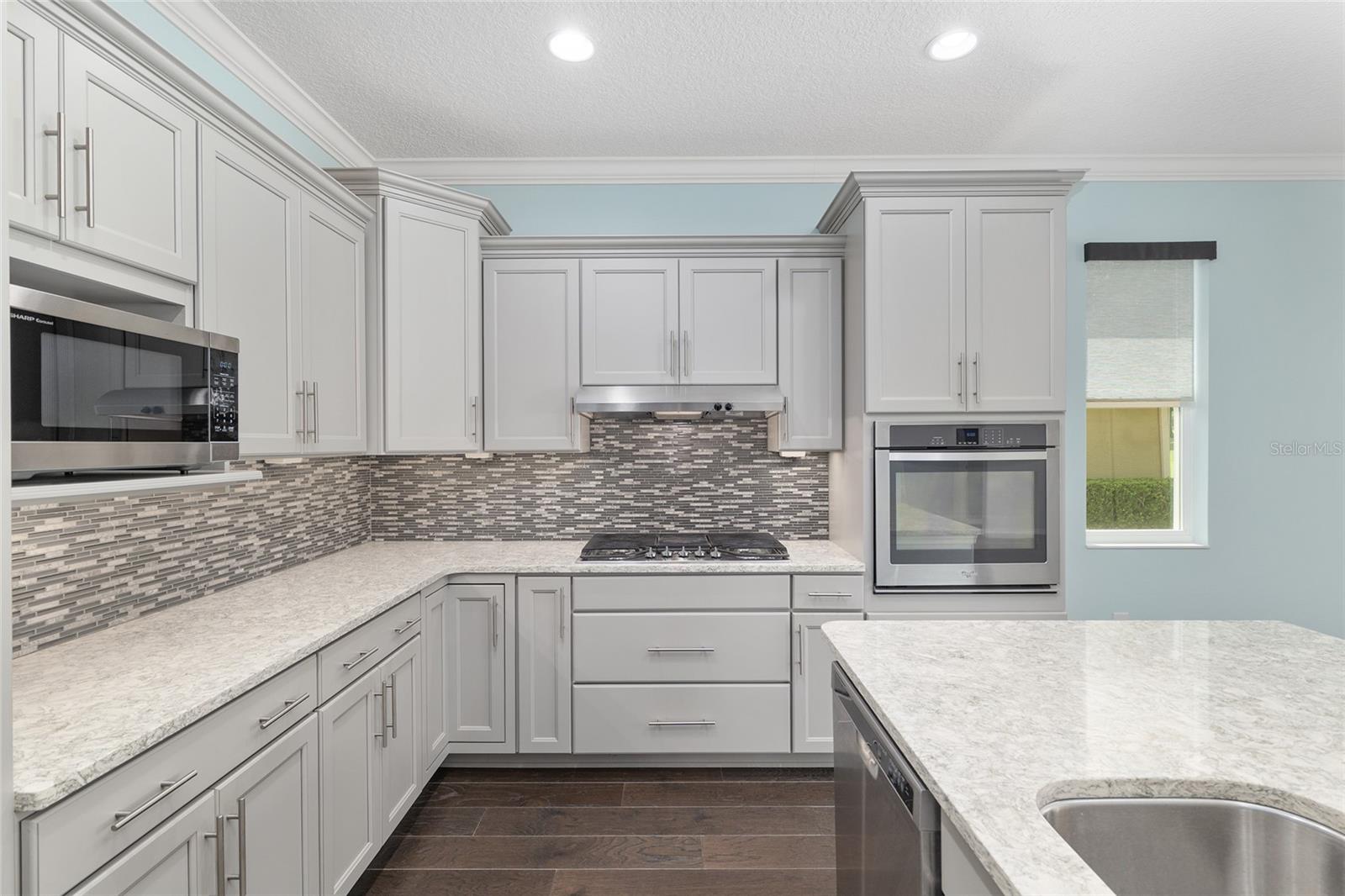Life's too short for yard work - unless it's efforts to enhance your own beautiful garden! Welcome to this delightful 2 bedroom, 2 bath home in the community of On Top of the World. Your lawn will be maintained by the community - opening up time for you to pursue your interests and goals. Bonus: there's an actual bonus room, perfect for tackling hobbies, running a home office, or finally writing that novel. Sip something cold on the screen lanai, soak up the sunshine on the patio, and enjoy front-row views of the golf course - without ever having to chase a golf ball. The star of this backyard is a lovely garden surrounding a herringbone patterned, Chicago brick patio with a fountain - a setting that practically begs for Instagram photos. This is Florida living with style (and fun). The only thing missing is you! This home has lots of upgrades from the standard Marina Model - an expanded floor plan with 3 extra feet in the garage in depth, plus the bonus room; engineered hardwood floors throughout the home; quartz countertops and tile backsplash in the kitchen; 5 burner, gas cooktop; soft close built-in linen and closet organizers in the primary suite; 'drop zone' built-ins components as you enter the home from the garage; custom light fixtures; water softener; and so much more that you need to see in person! Exterior Paint 2024. Tankless Gas Rinnai Hot Water Heater 2025.