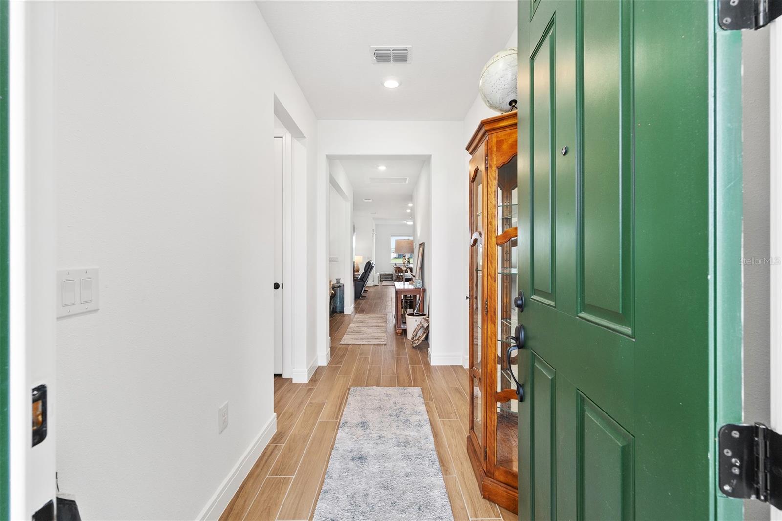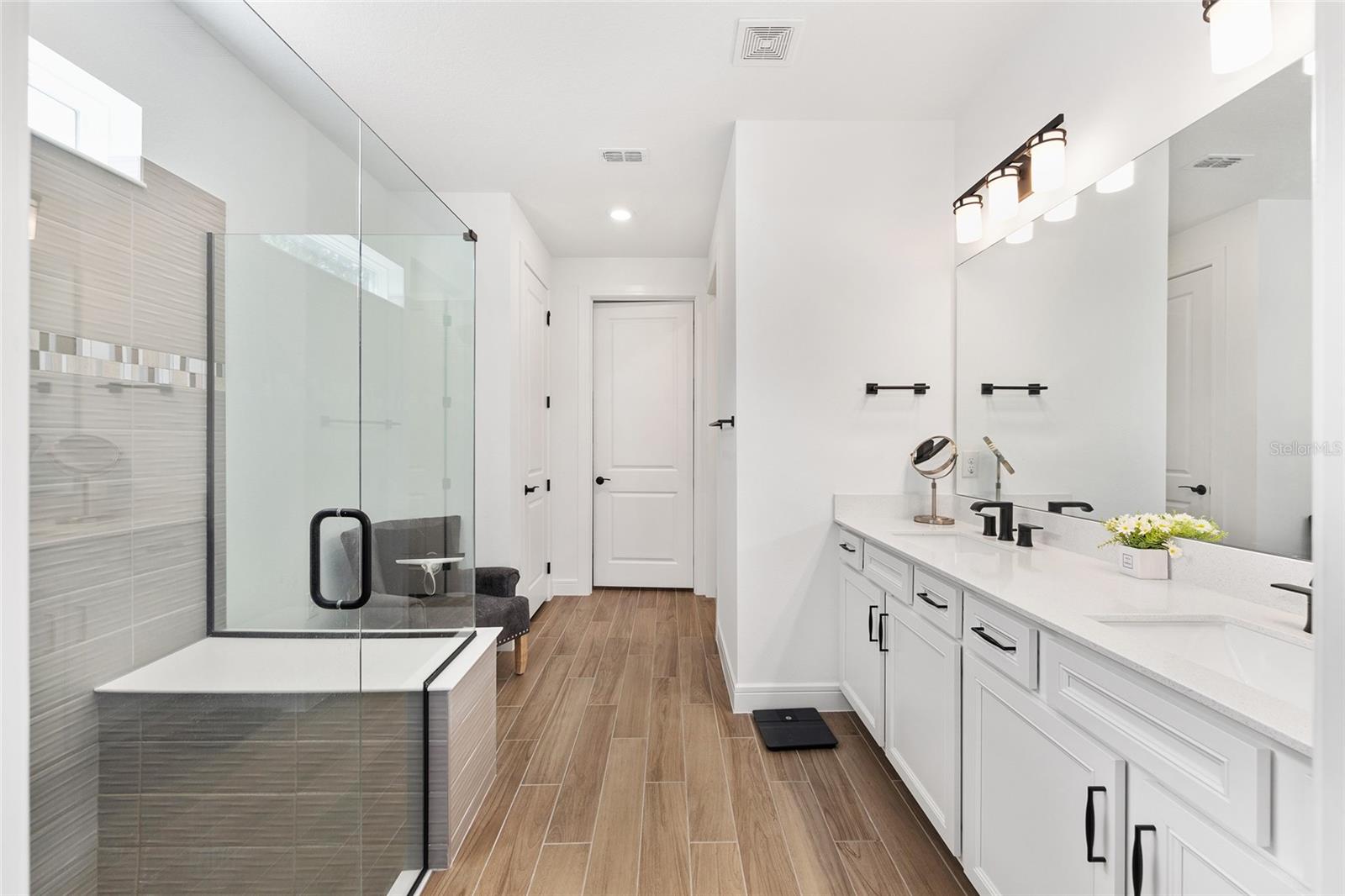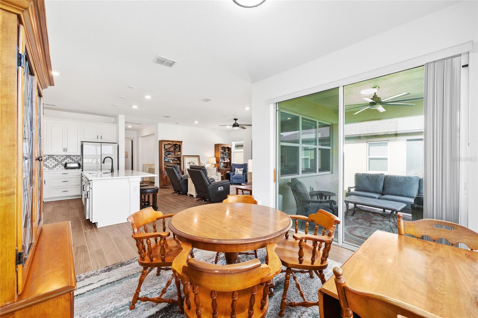 This gorgeous Mystique model with GOLF COURSE view is ready for you. This light and bright open floor plan offers plenty of space to entertain. White kitchen cabinets with light countertops keep the bright feel going. This space features a large island for extra seating and serving space and all of this with that GOLF COURSE view. Beautiful lanai space off the great room keeps that view going. Large primary suite featuring dual sinks, large walk in closet and stand alone shower. Flex room gives an option for office space or a den. Wood look tile throughout, small desk space near laundry, oversized storage area in the garage, alarm system and so many more extras!