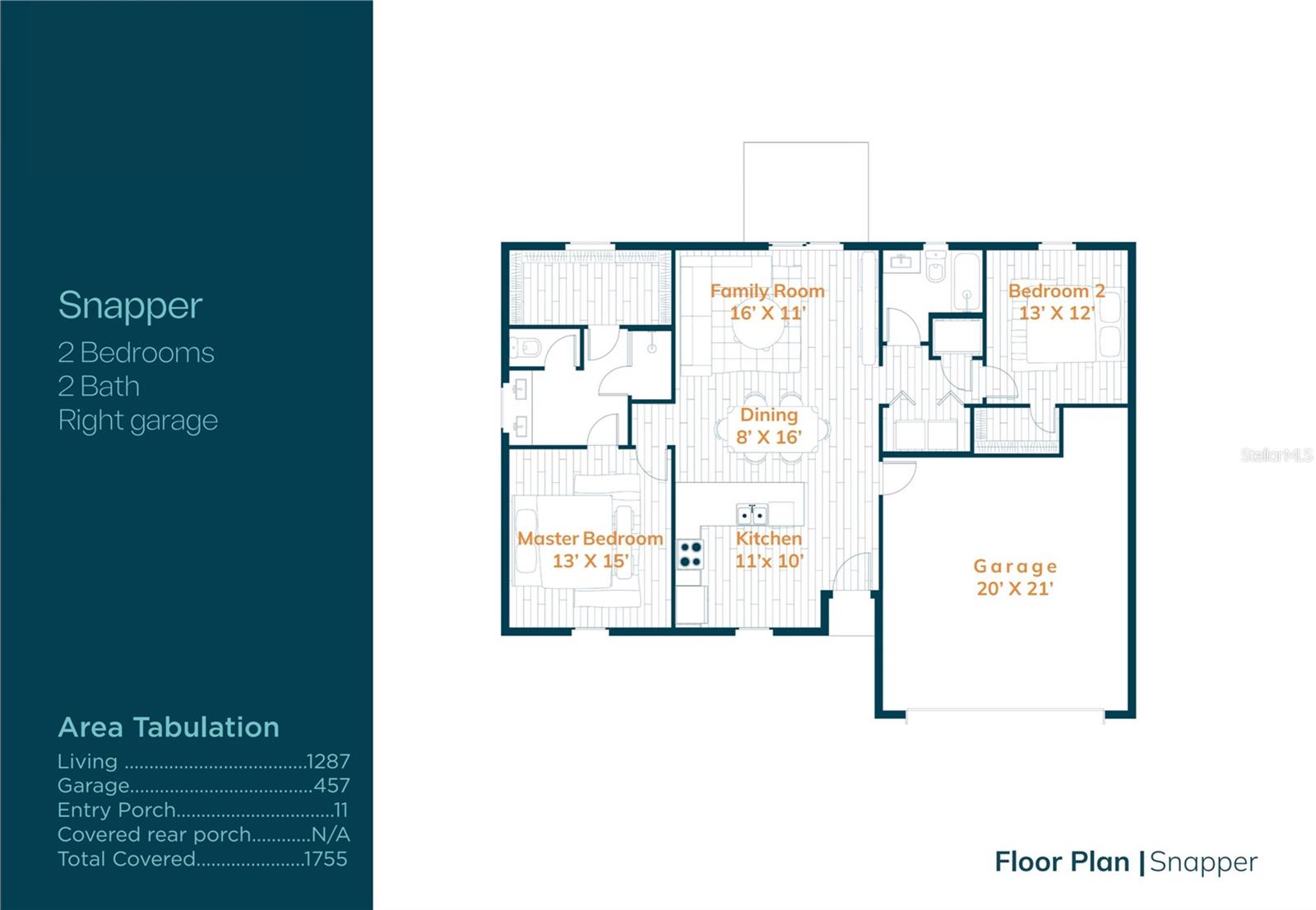 One or more photo(s) has been virtually staged. Pre-Construction. To be built. BUILDER WILL CONTRIBUTE UP TO $10,000 TOWARDS BUYERS CLOSING COSTS/PRE-PAIDS AND/OR A MORTGAGE RATE BUY DOWN (with a Preferred Lender). Snapper Plan blends comfort and functionality in a thoughtfully crafted single-story layout. This 2-bedroom, 2-bath home features an open-concept kitchen, dining, and family room—perfect for hosting or relaxing at home. The spacious primary suite offers privacy and features a dual-sink bath and a walk-in closet, while the secondary bedroom is ideal for guests, a home office, or a flex space. A convenient laundry area and attached 2-car garage complete the design, offering everyday ease with modern style.