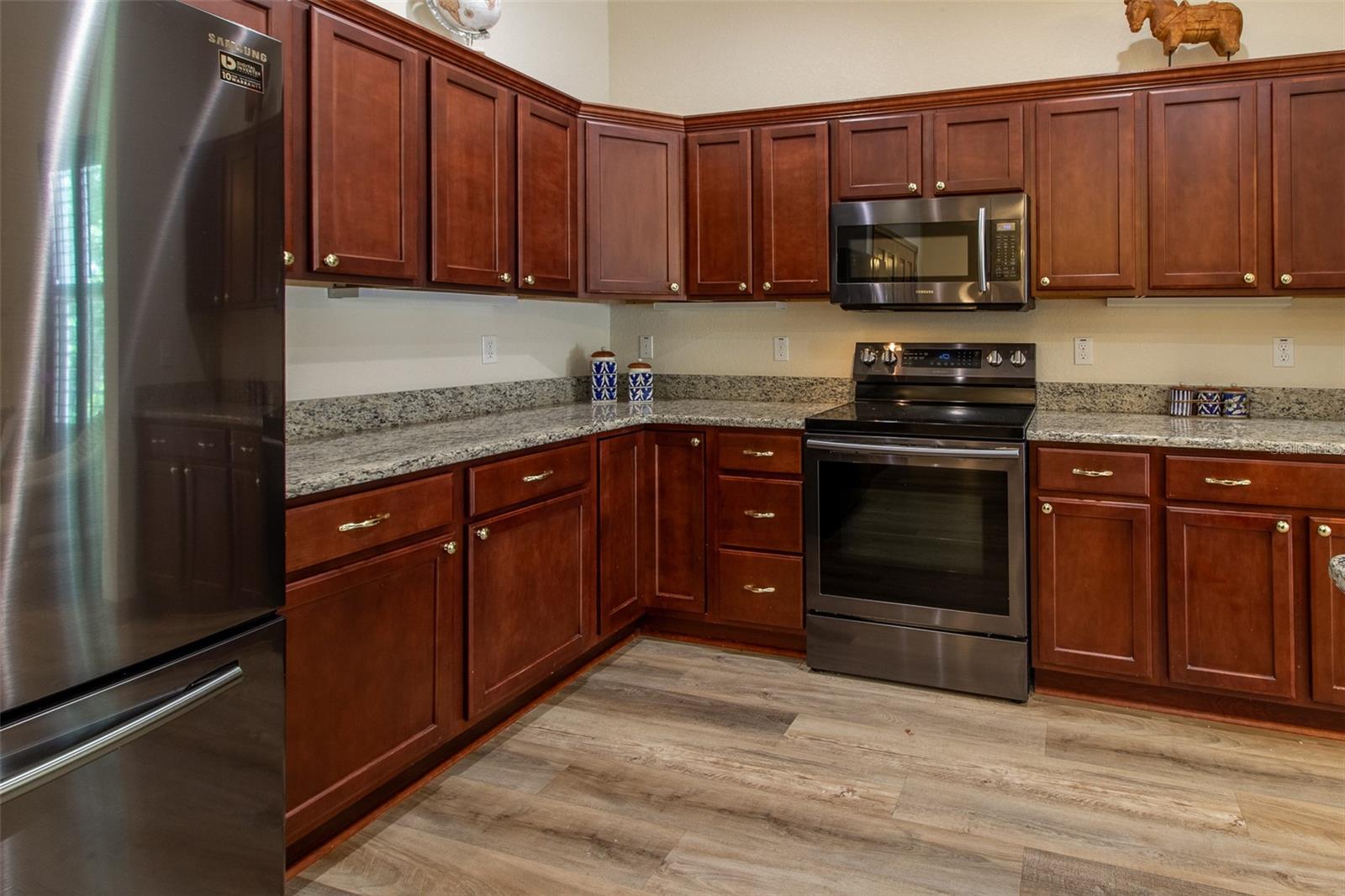 Luxury Living & Enhanced Privacy in Desirable Bellechase! Discover this 3-bedroom, 2-bathroom home within Ocala's desirable Bellechase community, offering a secure and exclusive lifestyle with its gated, manned entry. Located in highly desirable Southeast Ocala, this residence boasts refined living with high-end features and an exceptional private setting. The open-concept floor plan immediately welcomes you into a spacious living room, seamlessly connected to the gourmet kitchen. This chef's dream features abundant rich wood cabinetry, stunning granite countertops, and sleek modern appliances, perfect for entertaining. Throughout the home, elegant and durable flooring is complemented by stylish window shutters that add a touch of classic sophistication. The master suite provides a tranquil retreat with a lavish en-suite bath, featuring a walk-in shower and a relaxing walk-in tub, along with double walk-in closets for ample storage. The two additional guest bedrooms are generously sized, offering comfortable and private spaces. Step outside to a spacious, screened-in lanai, providing a superb extension of living space with enhanced privacy as the home backs to a non-buildable, green wooded buffer area. A large two-car garage adds convenience. This immaculate home offers exceptional value within a desirable, luxury neighborhood. Experience the Bellechase lifestyle! Inquire today!