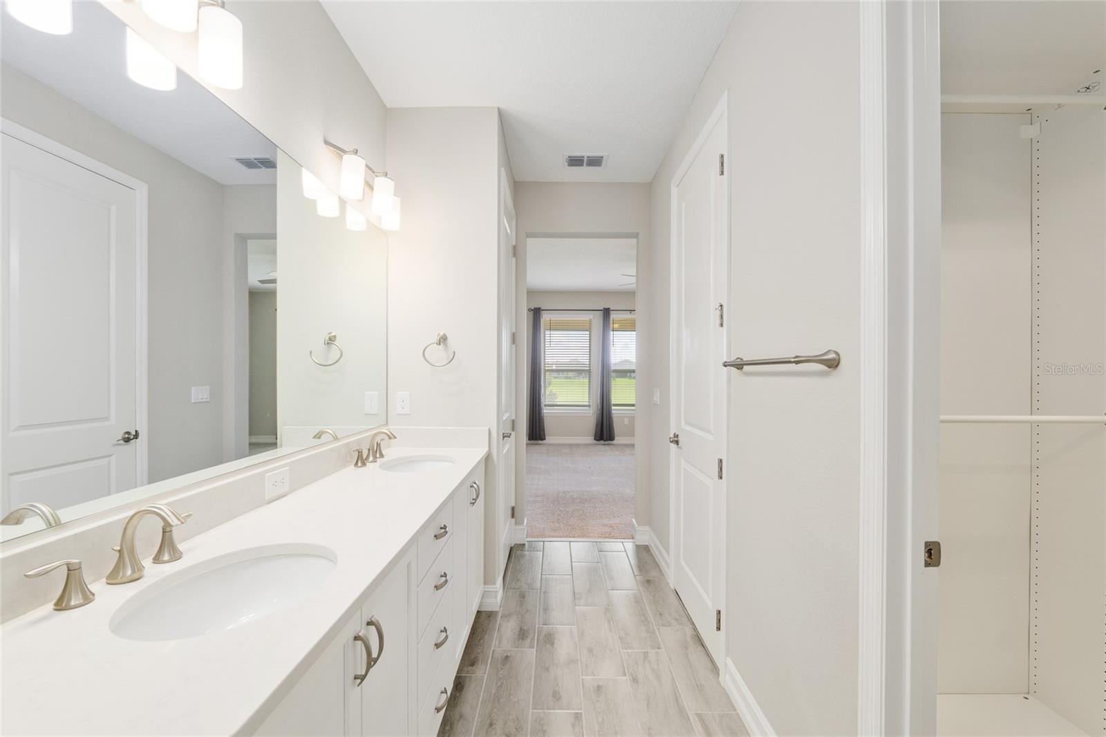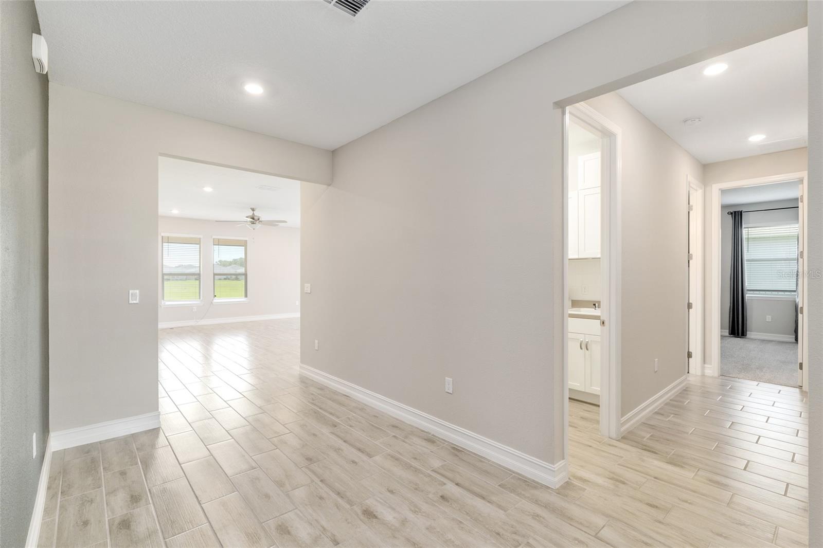 This meticulously maintained custom built Liberty Model home, crafted by Shea Homes is truly ONE OF A KIND! Located in the highly sought-after gated community of Ocala Preserve, just minutes from the renowned World Equestrian Center! Boasting 3 Bedrooms, 3 Bathrooms, and a versatile office, this residence offers nearly 2,500 square feet of thoughtfully designed living space. Complete with an oversized 2-car garage, ready for your Golf Cart! This home is as functional as it is stunning! Upon entering you will be greeted by upgraded porcelain tile flooring and a spit floor plan that flows effortlessly into an expansive open-concept great room. The perfect blend of luxury and comfort, in a light and airy atmosphere. At the heart of the home is a stunning chef's kitchen, featuring an oversized kitchen island, glistening granite countertops, custom solid wood cabinetry, stainless steel appliances, and a state-of-the-art gas stove. The Primary Suite is a true sanctuary, offering an expansive ensuite bathroom with dual vanities, a beautifully tiled stand-up shower with a sleek glass door, and an oversized walk-in closet with custom built-ins. The spacious second bedroom is perfect for guests, complete with a deep closet and a private ensuite featuring a shower/tub combo and deep vanity. The third bedroom is equally impressive, bathed in natural light from a large window and equipped with a deep closet. Just steps away, a third full bathroom offers a beautiful glass enclosed shower, a deep vanity for convenience and style and an additional closet for even more storage space! Designed for indoor-outdoor living, beautiful large sliders invite you to a very private, oversized extended screened in lanai- a tranquil haven perfect for entertaining! This property backs up to one of the many walking trails and has NO REAR NEIGHBORS! NO LOTS REMAINING LIKE THIS! From its luxurious upgrades to its attention to detail, this home is a rare find that perfectly blends sophistication and comfort. The HOA fee covers lawn and landscape maintenance, high-speed fiber optics internet, and membership access to all community amenities. These include indoor and outdoor fitness areas, group fitness classes, 21 miles to dedicated walking and biking trails, bocce, tennis, pickleball, a fishing dock, kayaks, canoes, and a paddle board. Not to mention the stunning Resort Style pools, clubhouse, the 18-hole Tom Lehman designed golf course, Salted Brick Restaurant and day spa. Schedule your private tour today!