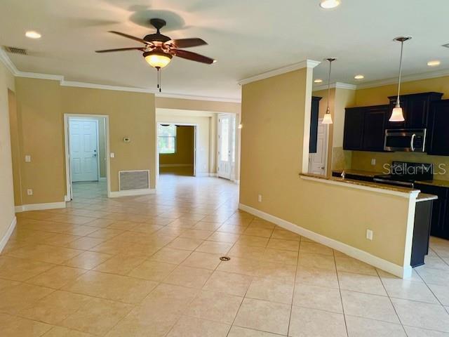 Beautifully maintained 2-bedroom, 2-bath home in the highly desirable 55+ community of Stone Creek. This spacious 1,706 sq ft villa features an open-concept layout with a formal dining area, a flex room/den, and a light-filled living space. The kitchen offers ample cabinet space and overlooks the main living areas, perfect for entertaining. The split-bedroom floor plan provides privacy for guests, and the primary suite includes a walk-in closet and en-suite bath with dual sinks and a walk-in shower. Enjoy tile and carpet flooring throughout, an interior laundry room, and a screened lanai ideal for relaxing. The property also includes a 2-car garage and sits on a well-manicured lot. HOA includes lawn care and access to resort-style amenities: clubhouse, pool, fitness center, golf, and more. Move-in ready and located in a gated, golf cart-friendly community—schedule your showing today!