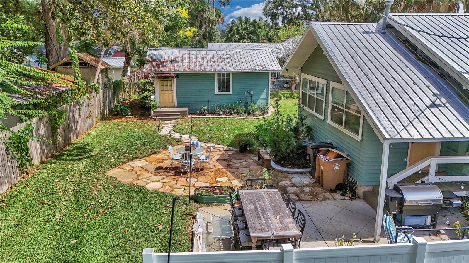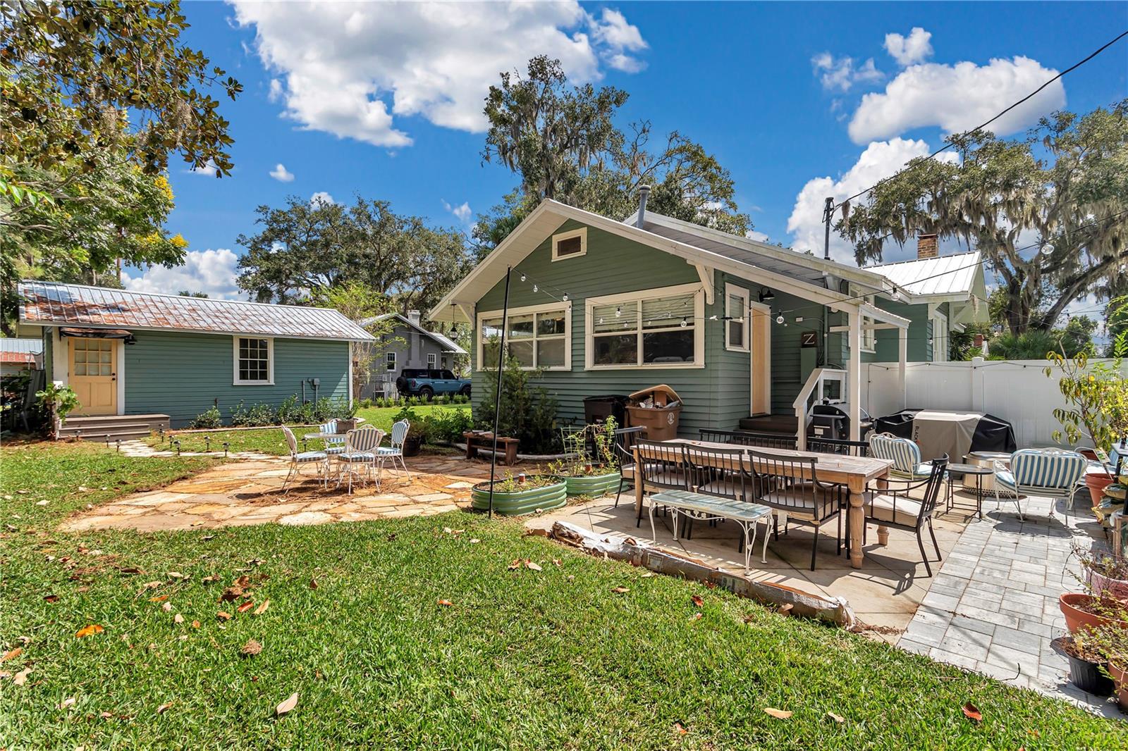 Welcome to 707 SE 10th Place, a charming & fully renovated 2-bedroom, 2-bath bungalow + detached studio efficiency that captures the essence of historic Ocala living with modern updates throughout. From the inviting front porch to the open, light-filled interior, this property combines timeless character with everyday convenience. Step inside to find beautifully refinished wood flooring throughout, a neutral and timelessly curated color palette, and a stylish kitchen featuring stainless steel appliances, sleek cabinetry, and taj mahal quartzite counter tops. The primary suite includes a renovated en-suite bath, while the second bedroom and full bath provide comfort for family or guests. A detached studio efficiency with a kitchenette and full bathroom offers incredible flexibility—perfect for extended family, a private office, or rental income. Outside, the fenced backyard creates a private retreat for entertaining, gardening or relaxing under the shade. All of this just blocks from Downtown Ocala’s vibrant restaurants, shops, and cultural attractions. Don't miss your chance to own a piece of historic Ocala!
