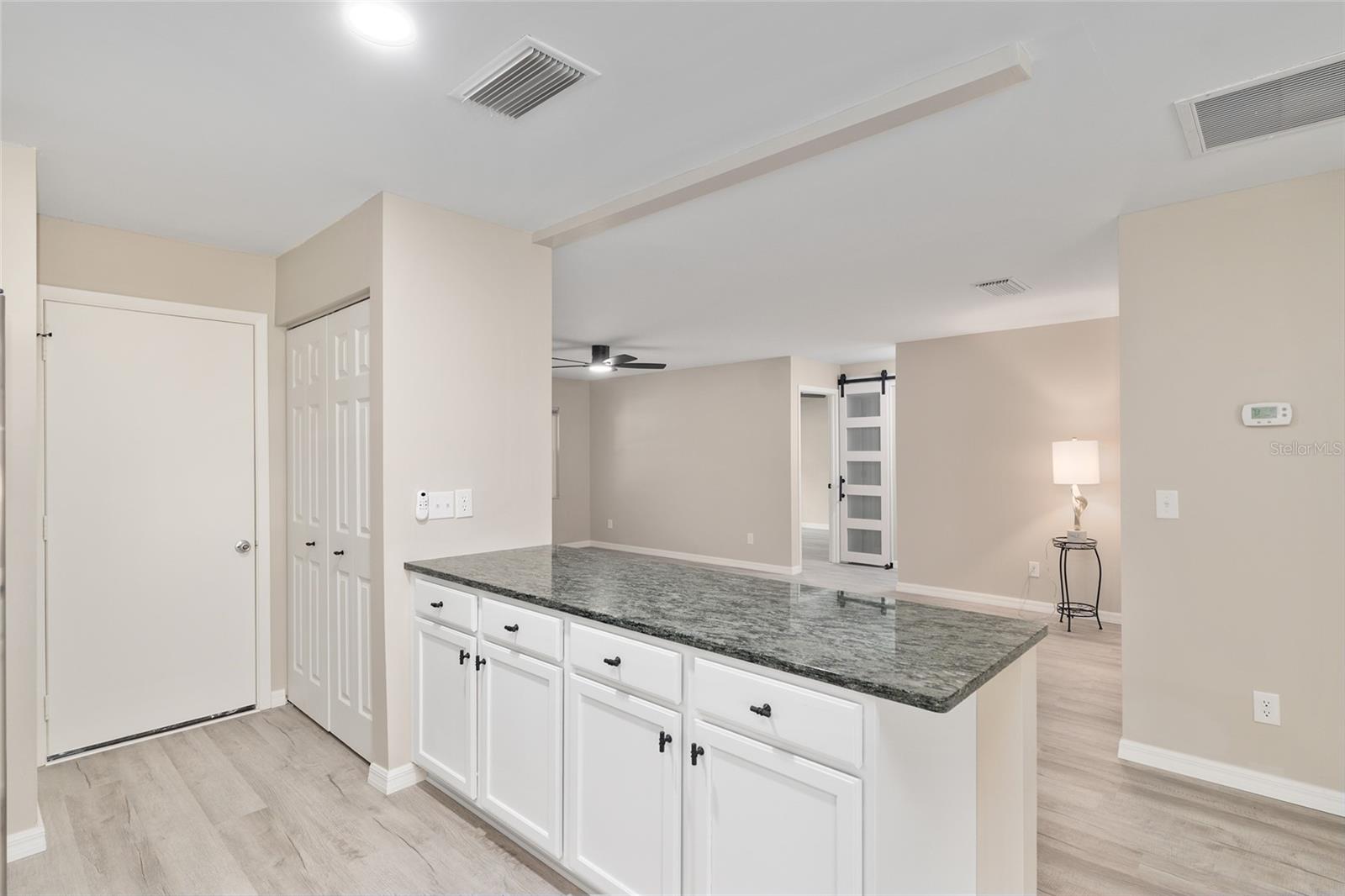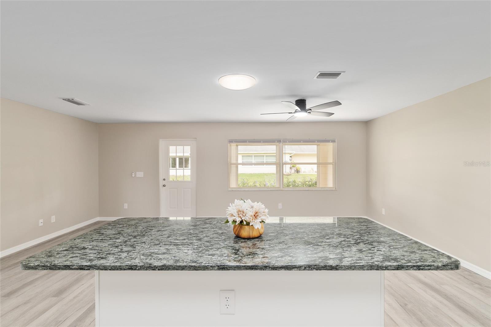 Welcome home to this beautifully, must see, updated Bostonian model in the Crescent Ridge area of On Top of the World. This 2-bedroom, 2-bathroom, 2-car garage has been renovated with Luxury Vinyl Plank throughout (no carpet), new recessed lighting and fans, and the kitchen wall has been removed and counter space added to provide a more open look; the kitchen features a solar tube to help bring in natural light; a kitchen island that facilitates food preparation or where you can enjoy a meal; the kitchen has been enhanced with granite countertops and backsplash, and new stainless-steel appliances. NO POPCORN Ceilings...popcorn ceilings have been removed and the whole house has been freshly painted top to bottom. Bathrooms have been updated with new vanities, lighting and mirrors. Barn doors adorned the linen closet in the hall way and bedroom closets. A/C 2022, windows 2009. The roof is due to be replaced October 2025. The outdoor garage lights are for decorative purposes only and are not currently wire with electricity. On Top of the World is Ocala's premier, gated, active 55+ community, loaded with amenities and includes golf cart access to three shopping centers. Call for more information.
