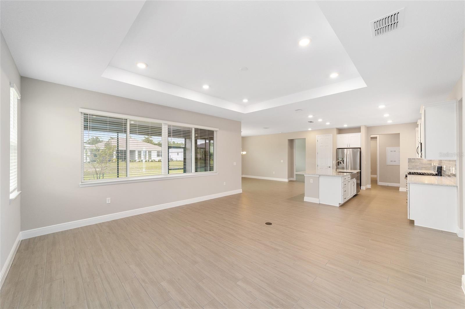 New Construction Beatrix Model located in the desirable Longleaf Ridge neighborhood of On Top of the World! This beautiful home features 2 bedrooms, 2 bathrooms, a 2-car garage plus golf cart garage, and over 2,100 sq. ft. of living space. The open floorplan offers tile flooring throughout, tray ceilings, and a split bedroom layout for added privacy. A versatile flex room is located at the front of the home — perfect for a home office or den. The kitchen boasts stainless steel appliances, premium white cabinets with crown molding and under-cabinet lighting, quartz countertops, an elegant backsplash, and a large center island with seating. The dining area features sliding glass doors that lead to the screened lanai, perfect for enjoying Florida’s indoor/outdoor lifestyle. The spacious primary suite includes a tray ceiling, double vanity with quartz countertops, a linen closet, a zero-entry tiled walk-in shower with a built-in bench, and a large walk-in closet with convenient access to the laundry room. Bedroom 2 offers a generous closet and is adjacent to a full bath with a quartz countertop and tiled tub/shower combination. Enjoy all the amenities and active lifestyle that On Top of the World has to offer in this stunning new home!