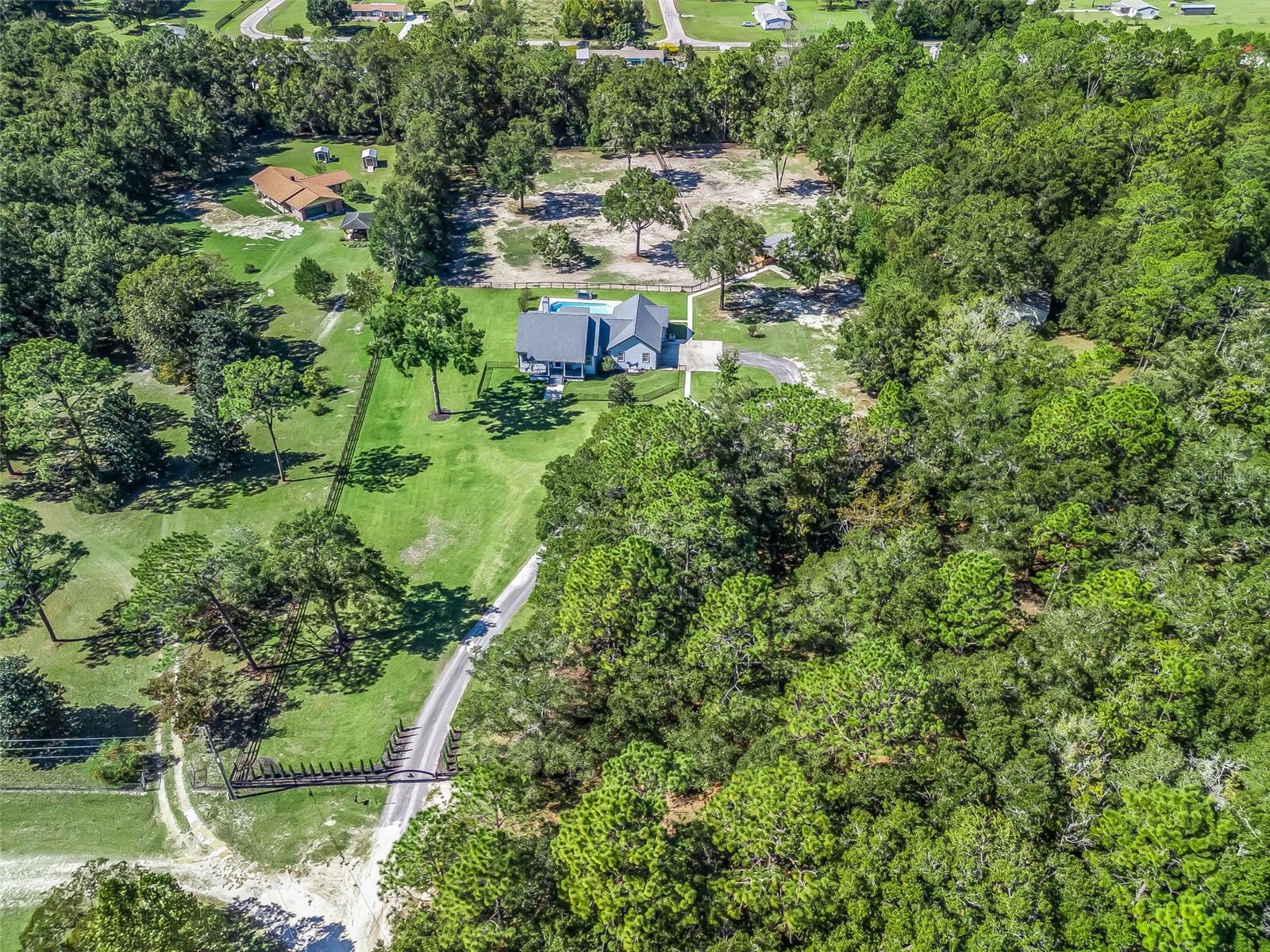 Beautifully Updated Mini Farm Just 2 Miles from the World Equestrian Center! This 3 bed, 2 bath, plus office home has outstanding improvements all done in the past year! Updates include a brand-new roof, new gutters, paved driveway, new electric front gate, fenced front yard, landscaping, irrigation, fresh interior paint, completely resurfaced pool and pool deck, new Trex decking on the front and back porches and an Aquasana water system with UV light for superior water quality. The bright open floor plan with cathedral ceilings features a chef’s kitchen with a granite island, butcher block, custom cabinets, stainless appliances, and huge walk-in pantry. The large back porch overlooks the sparkling pool with Sonos surround sound and TV—perfect for entertaining or relaxing outside. Equestrian amenities include a brand-new 2-stall barn with an air-conditioned tack/feed room and wash stall with hot and cold water. Each stall is equipped with fans, Nelson waterers, and stall mattress systems. Each stall opens up to individual paddocks with new fencing and a concrete auto water trough. The property also offers an expansive storage garage with two open bays, one enclosed bay, and a 42x24 air-conditioned office/workshop. This property truly has it all—modern comfort, quality construction, and a dream setup for both you and your horses, all just minutes from the heart of Ocala’s equestrian community.
