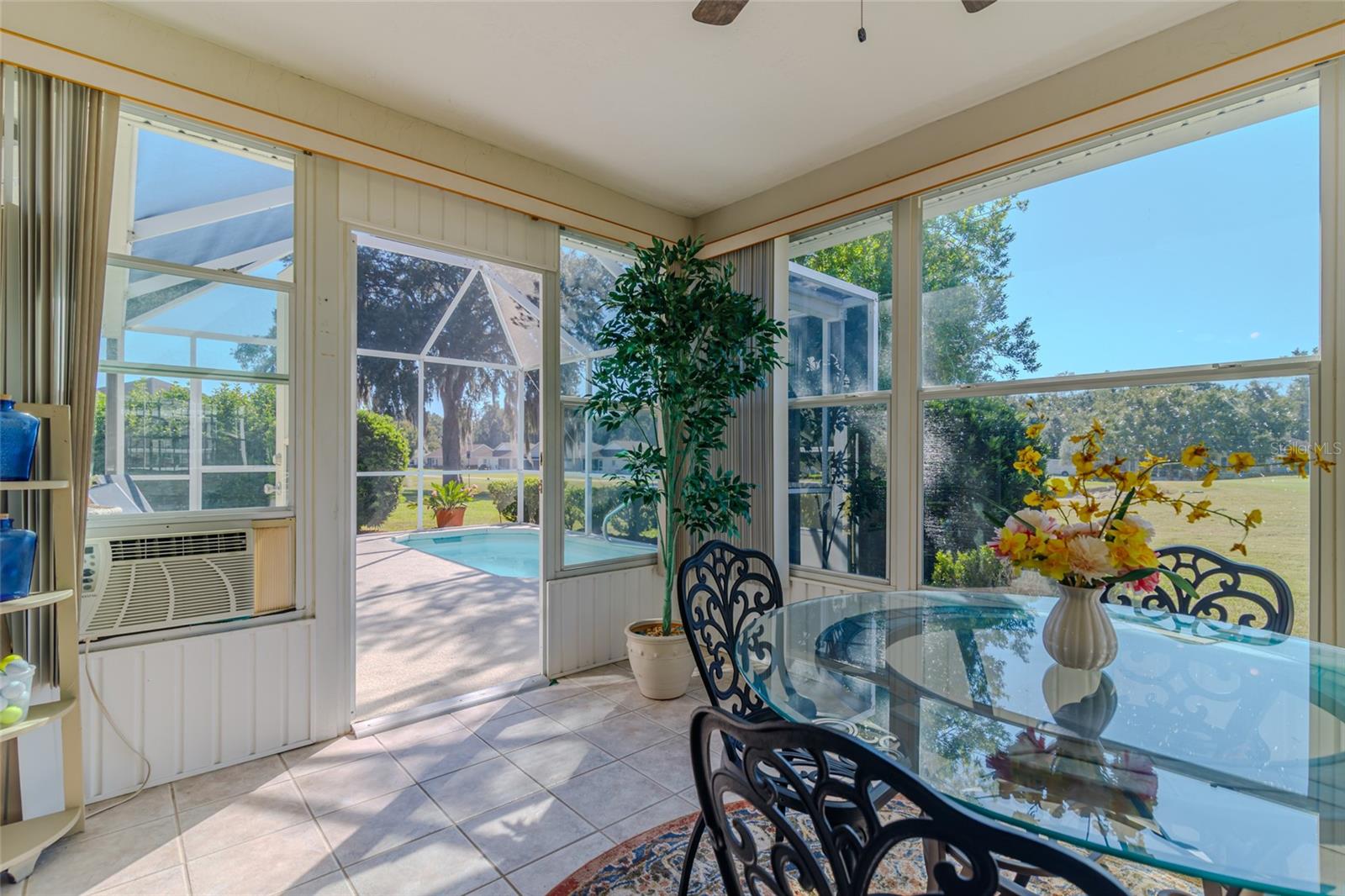 OUTSTANDING POOL HOUSE ON GOLF COURSE! This lovey 2BD/2BA house has a very open floor plan with view of the pool and the golf course. This house has been completely remodeled with all new Samsung kitchen appliances which include a time-saving dishwasher, built-in microwave, refrigerator with a clear top range and stove. The extended countertop makes it easy to place stools underneath for relaxing. The open living room is very comfortable and can hold a large, big screened television. The laundry room is right off the kitchen with access from the garage to make it easy to bring in groceries. The Master Bedroom has ample room for a King Size Bed, night stands and 2 dressers. This Master has walk-in closet for easy access to your clothes. The Master Bathroom has recently been remodeled with a double sink vanity, with lots of storage, walk-in Shower and soaking tub for getting rid of stress. The guest bedroom is also a good-sized room with a large walk-in closet. This room also has a tray ceiling and ceiling fan for air circulation. The Florida room has tile flooring and has a great view of the pool and outside golf course grounds. The pool has a screened Cathedral enclosure with plenty of room for a chaise lounge and chairs. Come enjoy the great life in this affordable house with a pool on the golf course. rom the Florida room of the 3rd hole of the golf course. You can sit back and just enjoy life as you enjoy watching the golfers and the many birds. Ocala Palms is a gated active 55+ community located on North Highway 27 in Ocala, Florida. This community offers an 18-hole Golf Course for golf enthusiasts and Country Club-Style living for active adults. Golfers can also practice on the driving range and putting green so they can step up their golf game skills. It boasts a 19,000 square-foot clubhouse. Here is a sample of activities and amenities offered: Clubhouse/Amenity center, fitness center, Outdoor Olympic pool, hot tub, heated indoor pool, card room, arts & crafts studio, ballroom, library, billiards, bocce ball, shuffleboard courts walking & biking trails, volleyball court, tennis/pickleball courts, horseshoe pit, and croquet lawns. Ocala Palm is a very family friendly community and is located close to shopping centers, supermarkets, drug stores, restaurants, banks, doctors’ offices, hospitals, postal office department stores, etc. For family entertainment, Ocala features year-round public festivals events, canoeing, kayaking, paddle boating, horseback riding, fishing, etc. Close to tourist attractions like World Disney Parks, Universal Studios, Sea World, Bush Garden, World Equestrian Center, numerous beaches, etc. All measurements are approximate. Buyer(s) to re-measure.